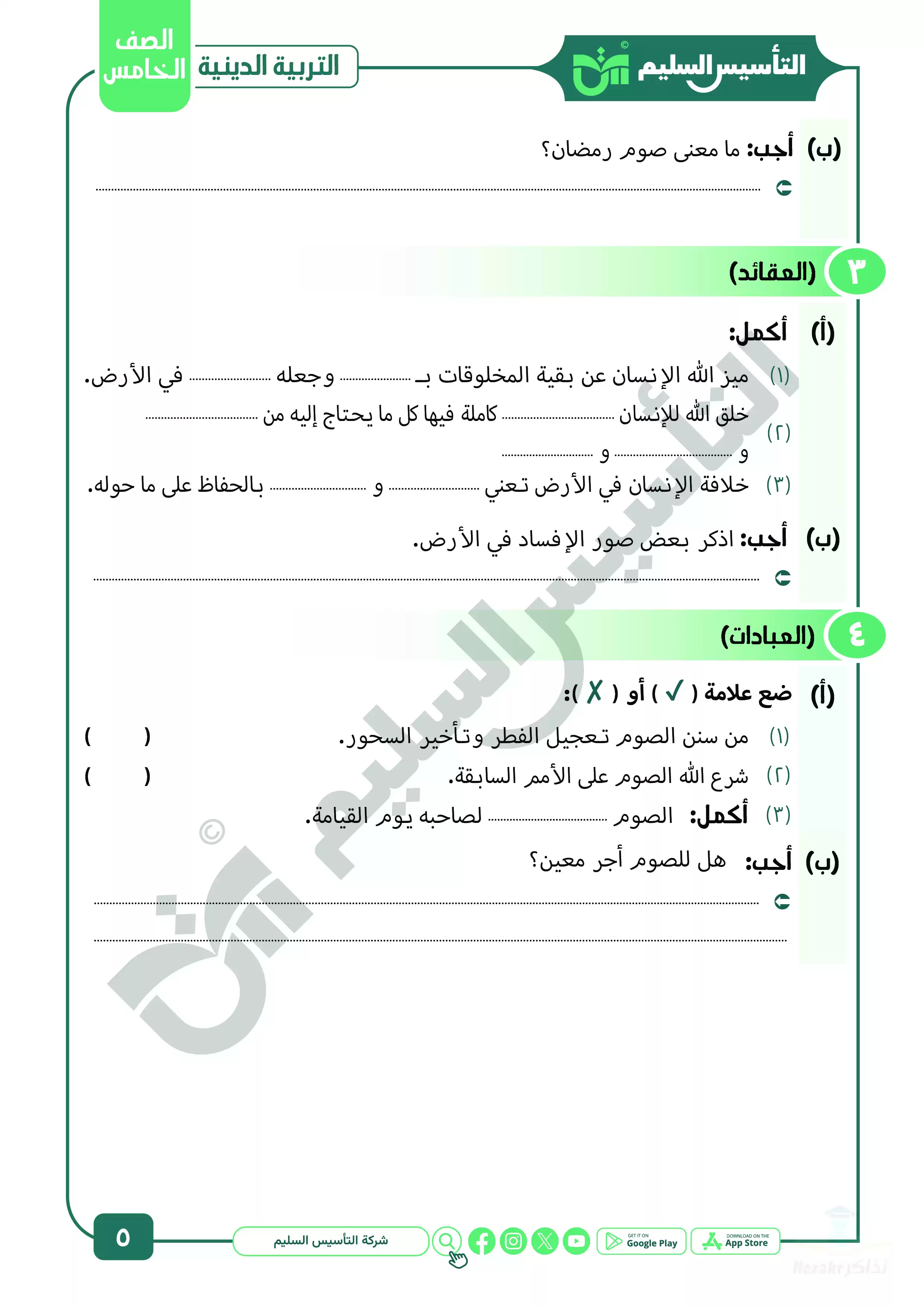 صفحة 5 من 39 صفحة من ملف: مراجعة شهر ابريل في التربية الدينية للصف الخامس الابتدائي من التأسيس السليم - Nezakr