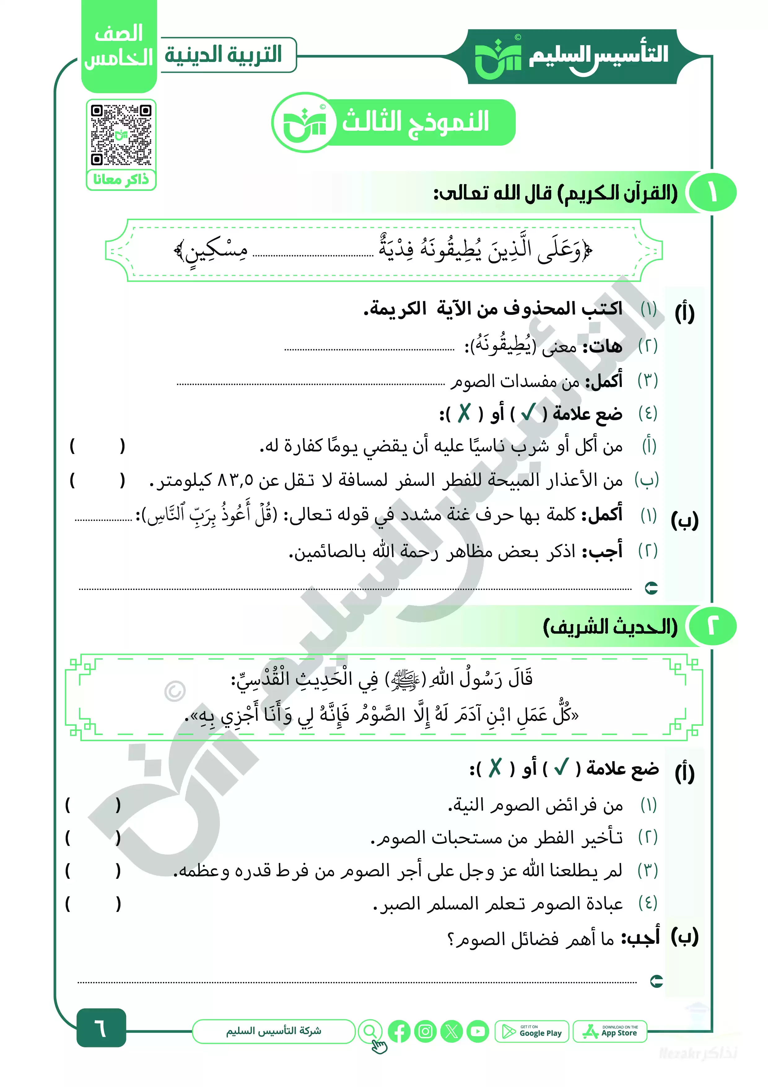 صفحة 6 من 39 صفحة من ملف: مراجعة شهر ابريل في التربية الدينية للصف الخامس الابتدائي من التأسيس السليم - Nezakr
