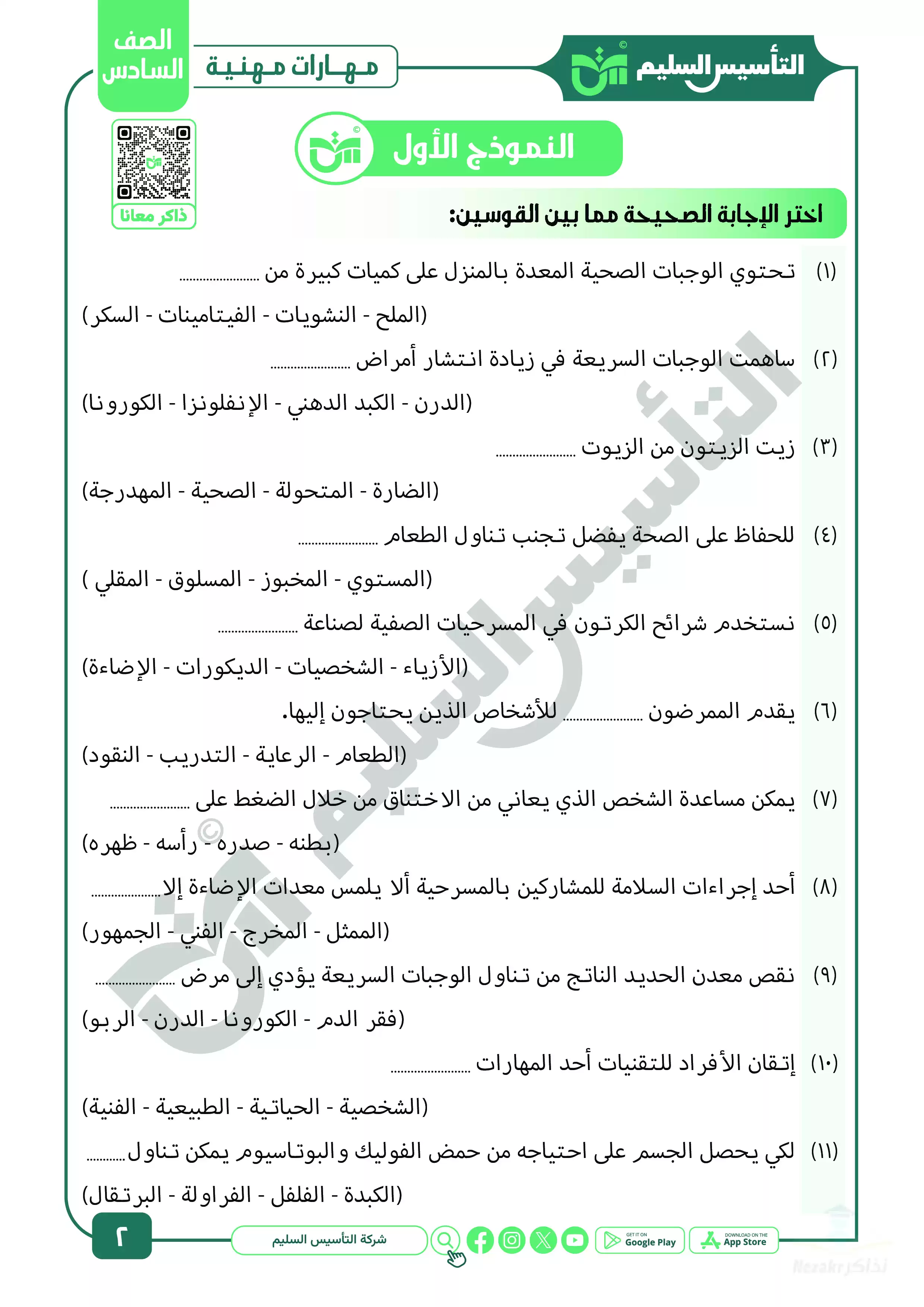 صفحة 2 من 27 صفحة من ملف: مراجعة شهر ابريل في المهارات المهنية للصف السادس الابتدائي من التأسيس السليم - Nezakr