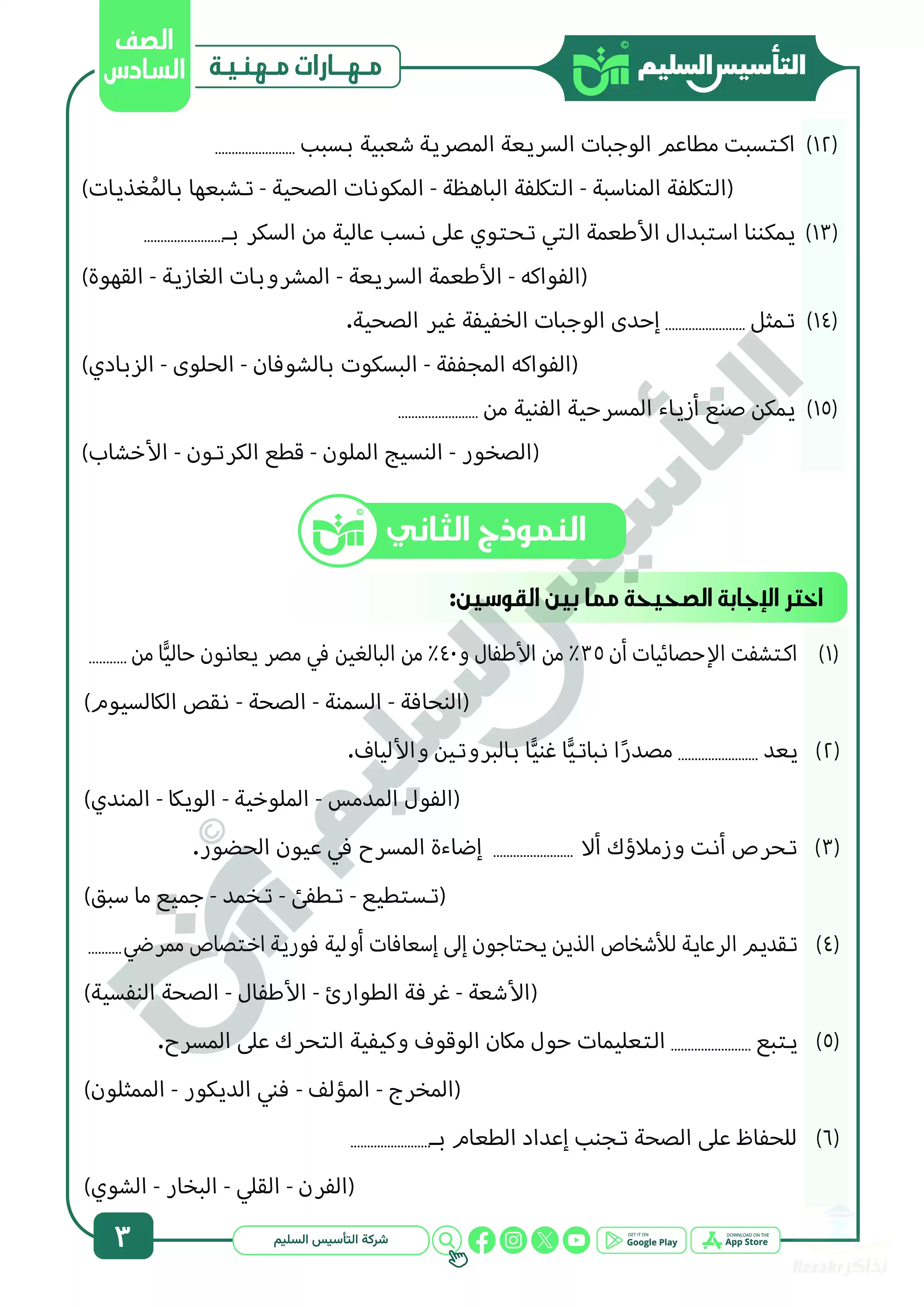 صفحة 3 من 27 صفحة من ملف: مراجعة شهر ابريل في المهارات المهنية للصف السادس الابتدائي من التأسيس السليم - Nezakr