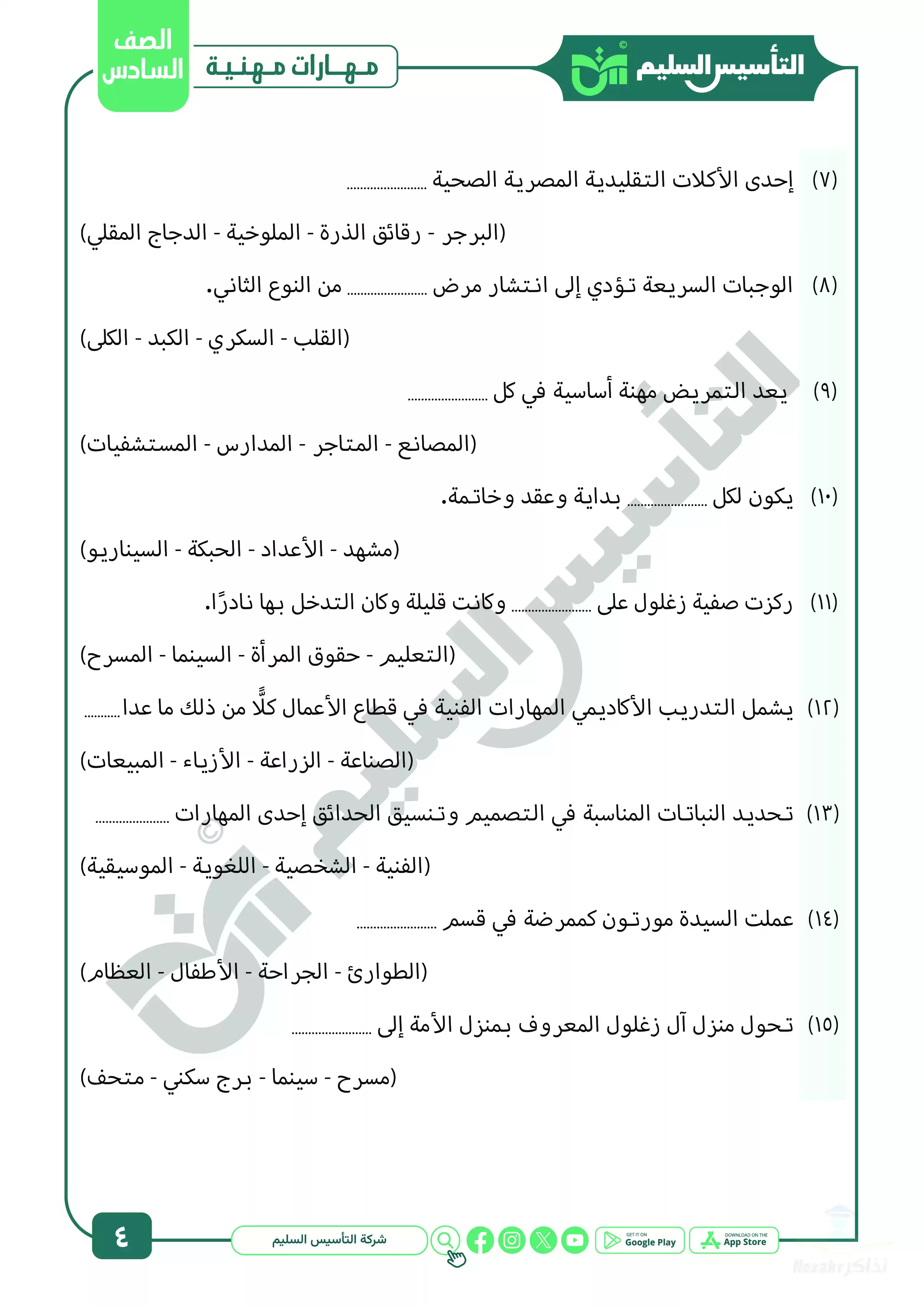 صفحة 4 من 27 صفحة من ملف: مراجعة شهر ابريل في المهارات المهنية للصف السادس الابتدائي من التأسيس السليم - Nezakr