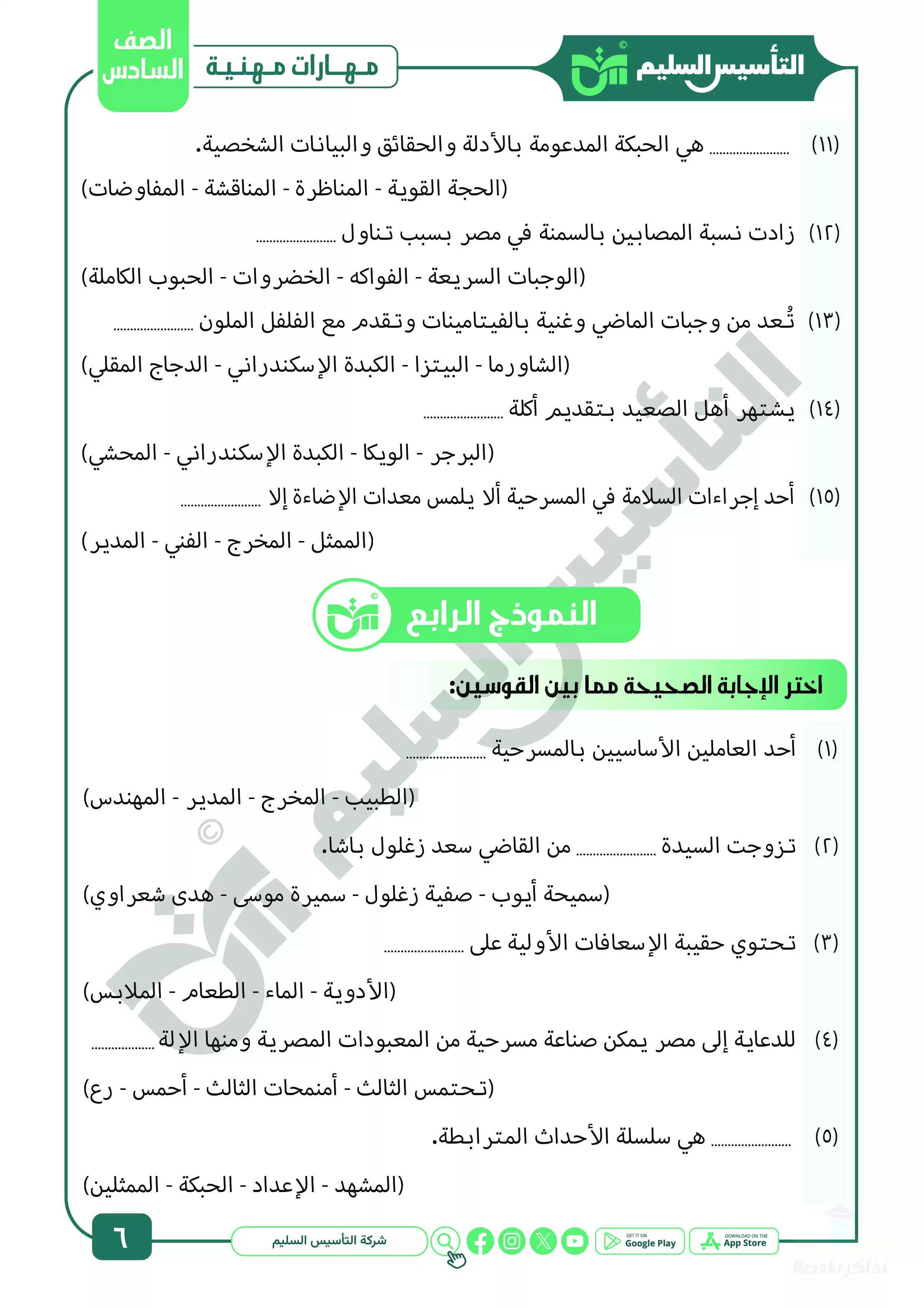 صفحة 6 من 27 صفحة من ملف: مراجعة شهر ابريل في المهارات المهنية للصف السادس الابتدائي من التأسيس السليم - Nezakr