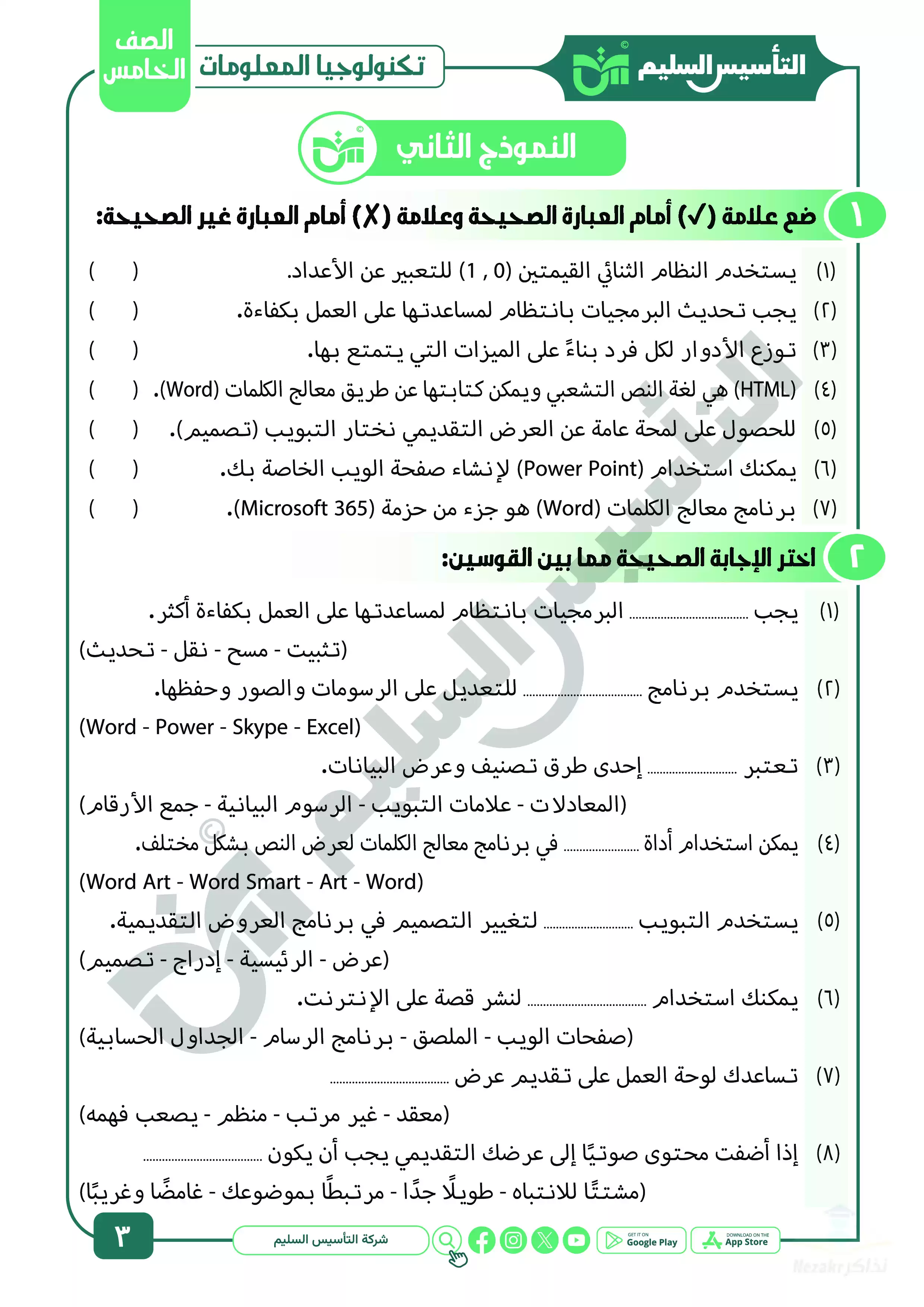 صفحة 3 من 21 صفحة من ملف: مراجعة شهر ابريل في تكنولوجيا المعلومات والاتصالات للصف الخامس الابتدائي من التأسيس السليم - Nezakr