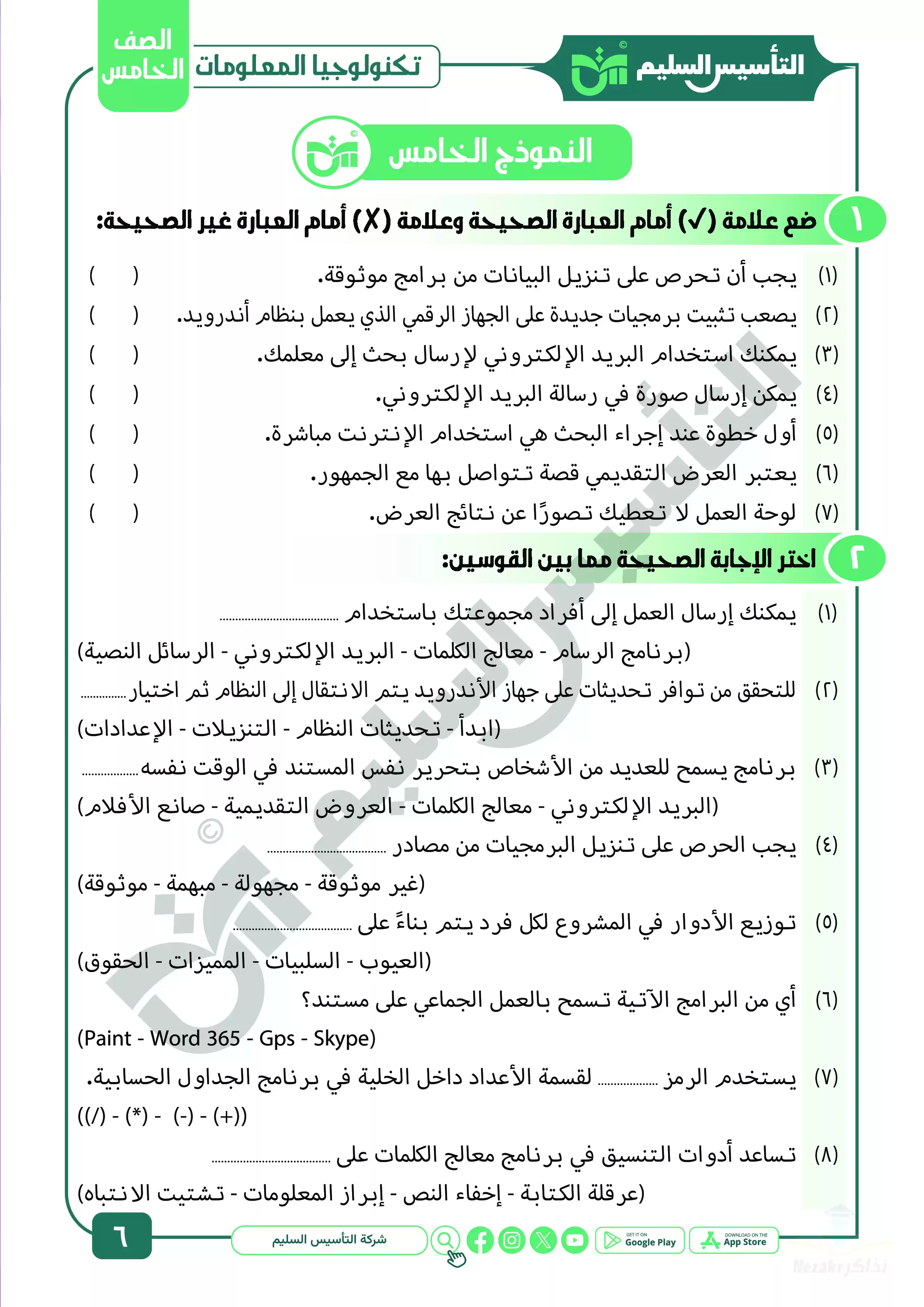 صفحة 6 من 21 صفحة من ملف: مراجعة شهر ابريل في تكنولوجيا المعلومات والاتصالات للصف الخامس الابتدائي من التأسيس السليم - Nezakr