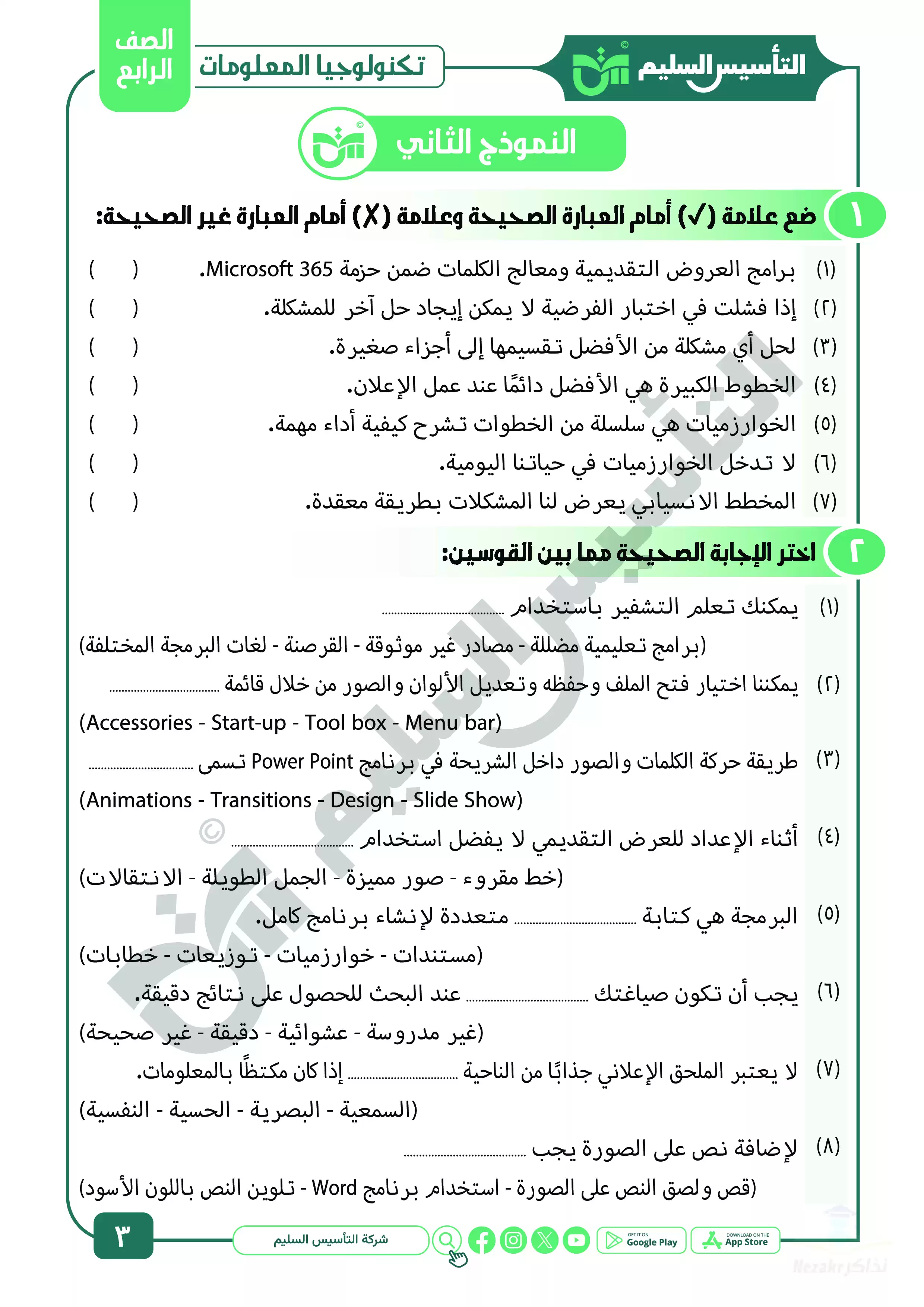 صفحة 3 من 21 صفحة من ملف: مراجعة شهر ابريل في تكنولوجيا المعلومات والاتصالات للصف الرابع الابتدائي من التأسيس السليم - Nezakr