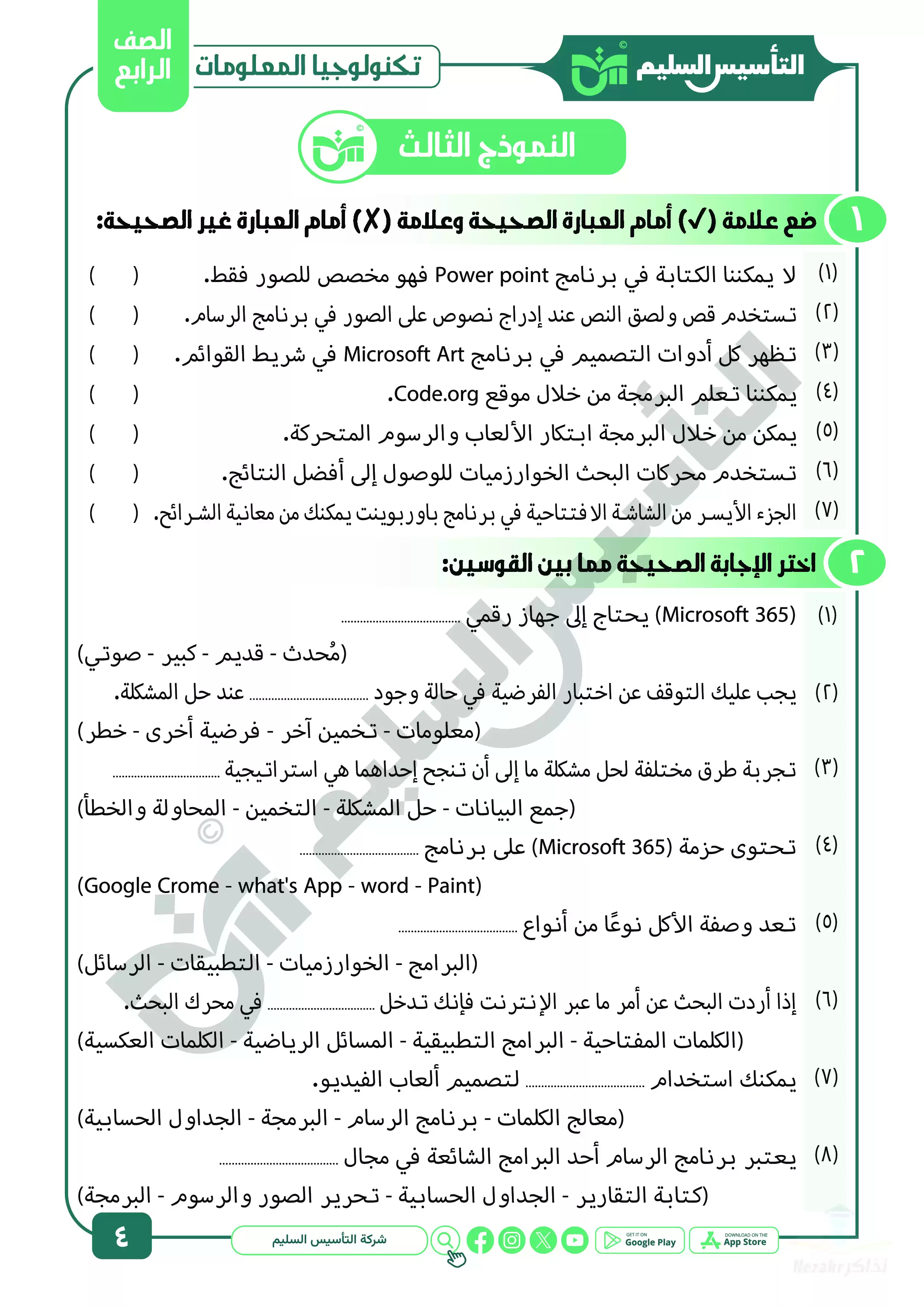 سكرين شوت من الملف: مراجعة شهر ابريل في تكنولوجيا المعلومات والاتصالات للصف الرابع الابتدائي من التأسيس السليم - Nezakr