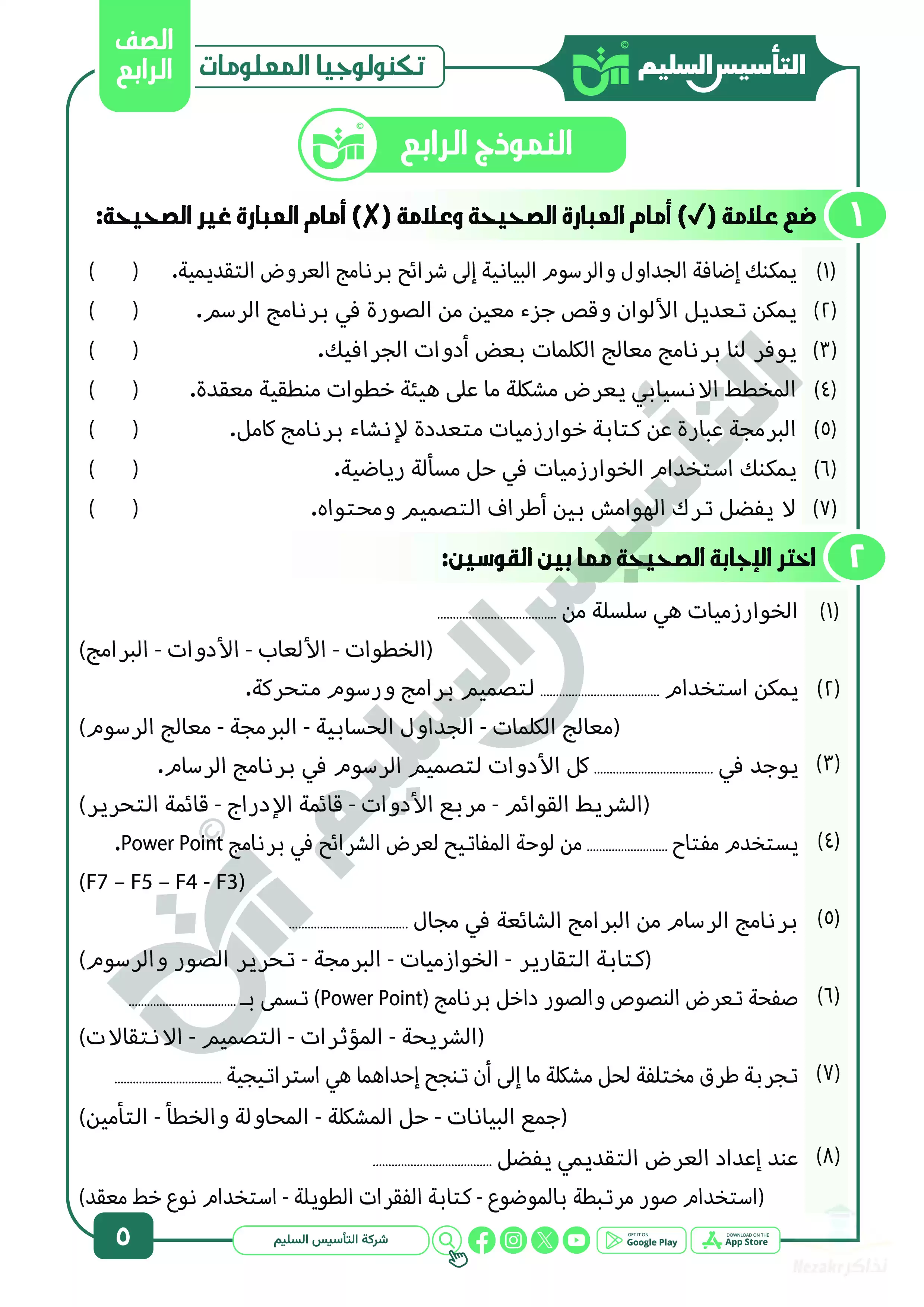 صفحة 5 من 21 صفحة من ملف: مراجعة شهر ابريل في تكنولوجيا المعلومات والاتصالات للصف الرابع الابتدائي من التأسيس السليم - Nezakr