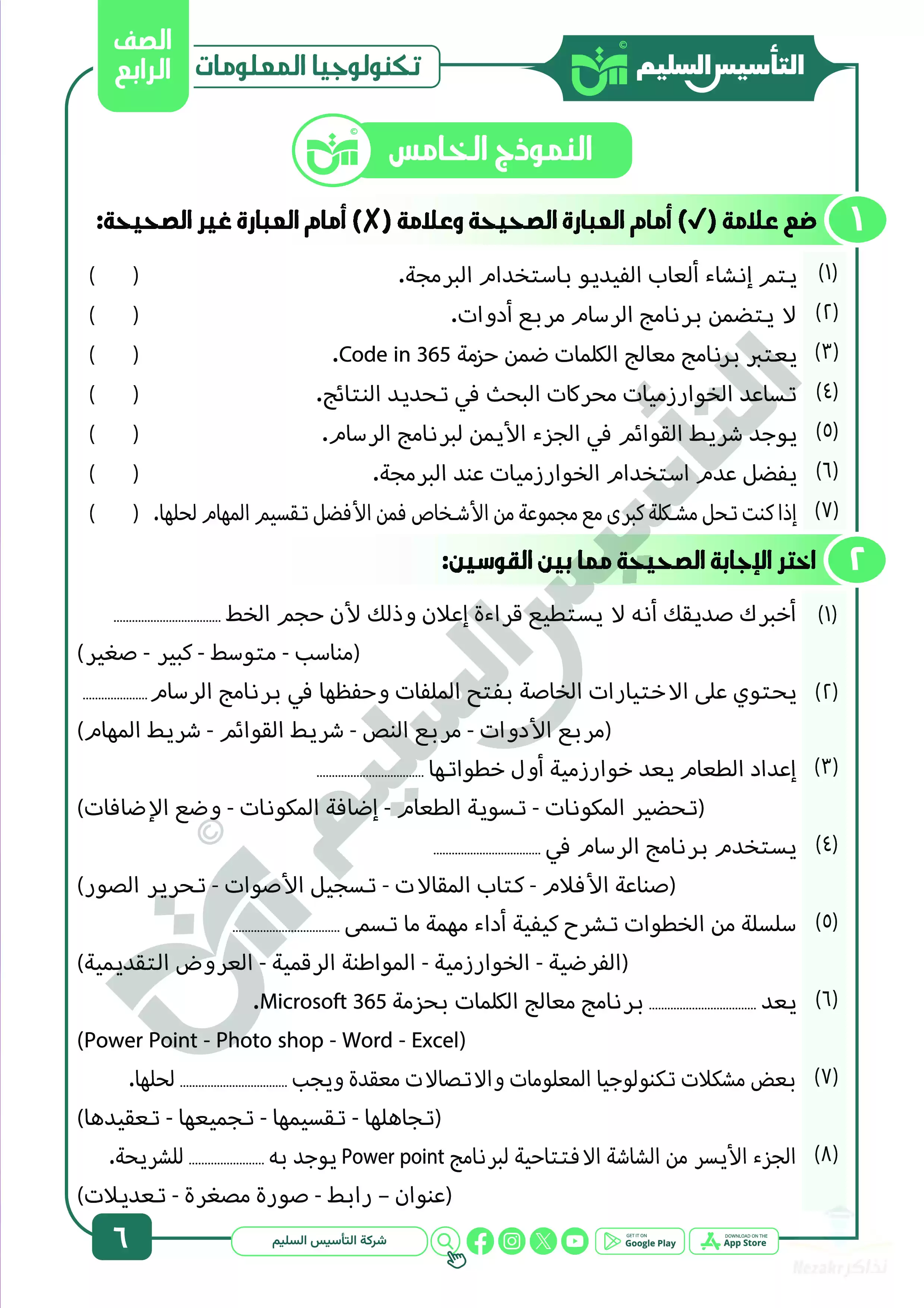 صفحة 6 من 21 صفحة من ملف: مراجعة شهر ابريل في تكنولوجيا المعلومات والاتصالات للصف الرابع الابتدائي من التأسيس السليم - Nezakr
