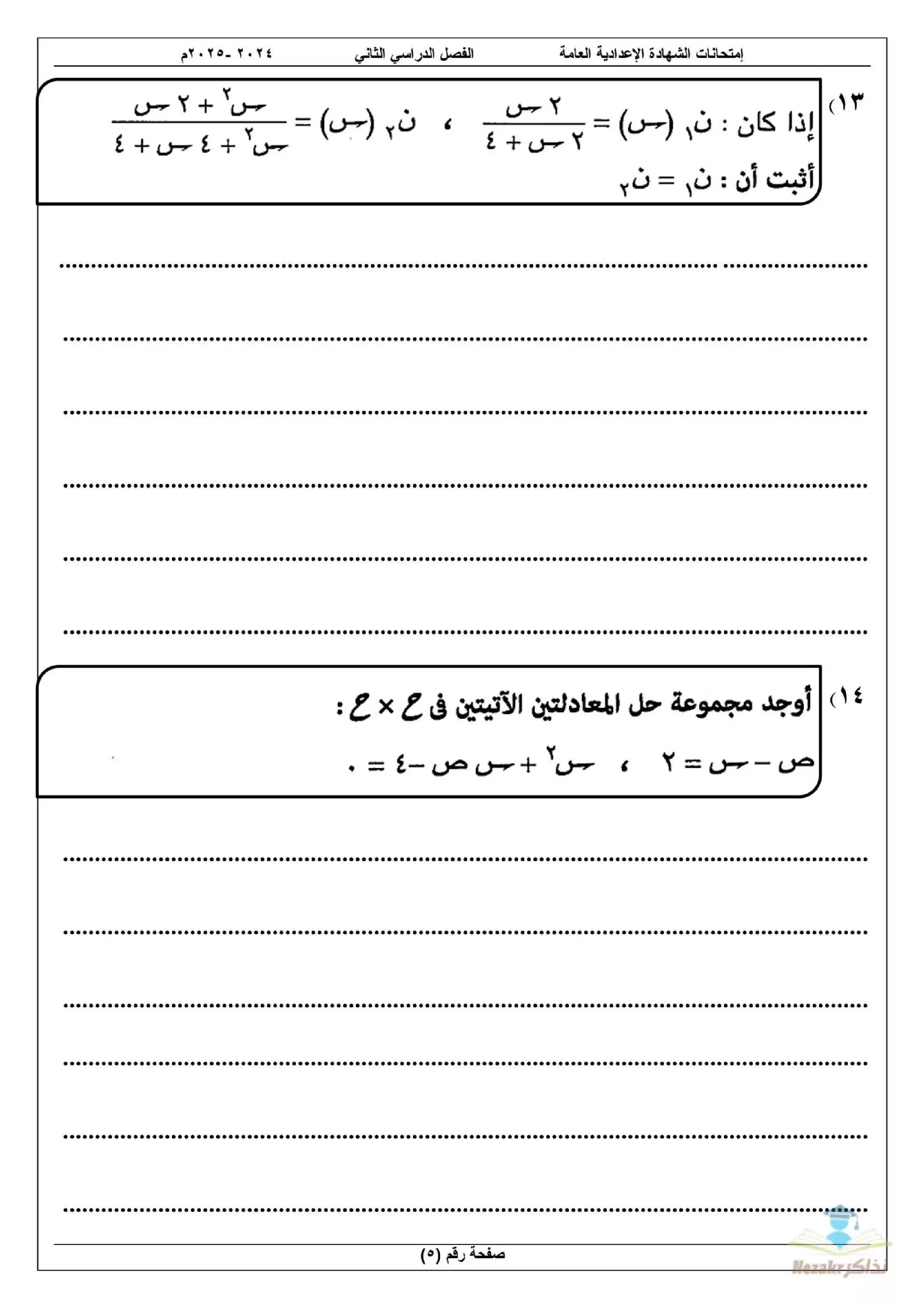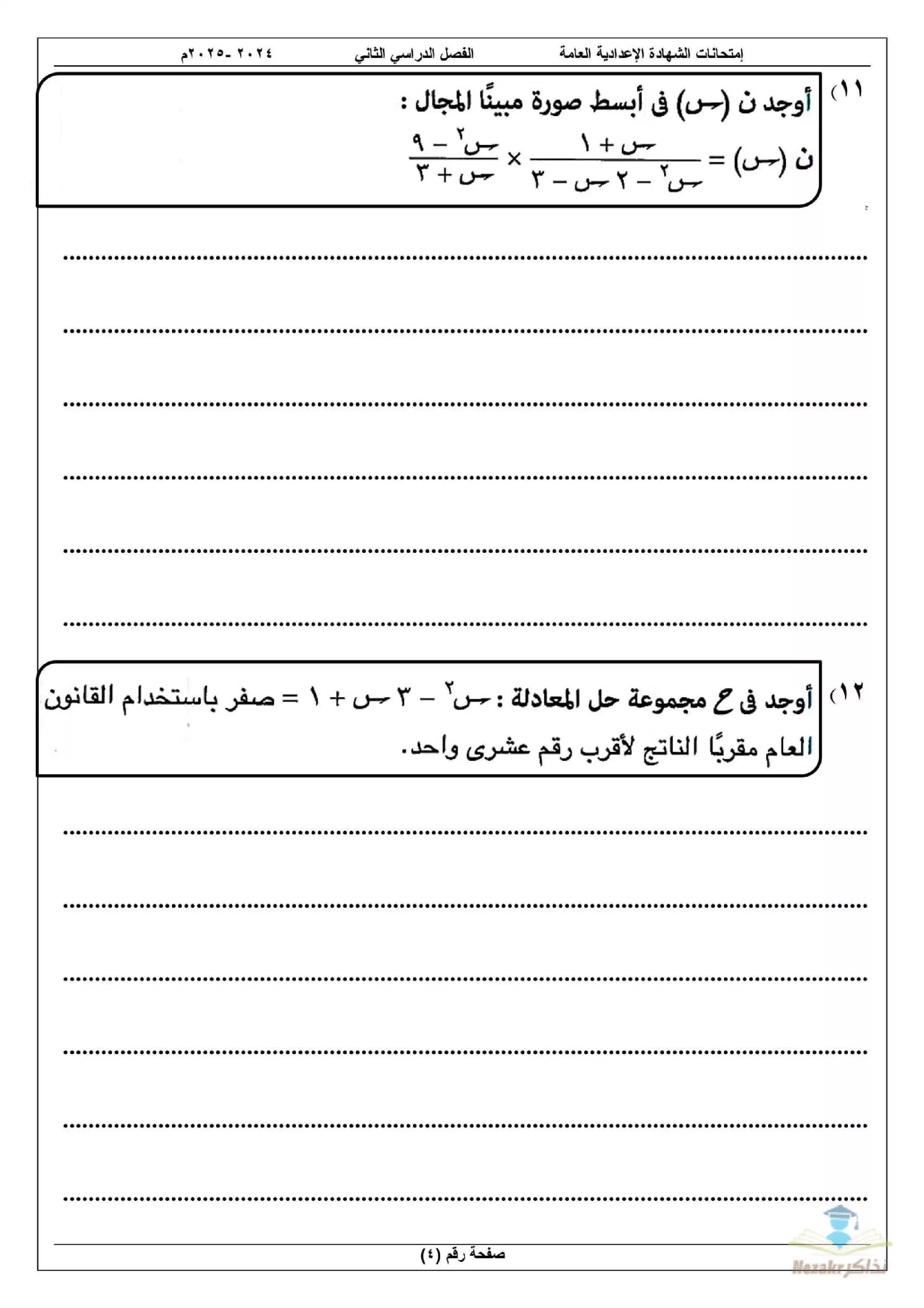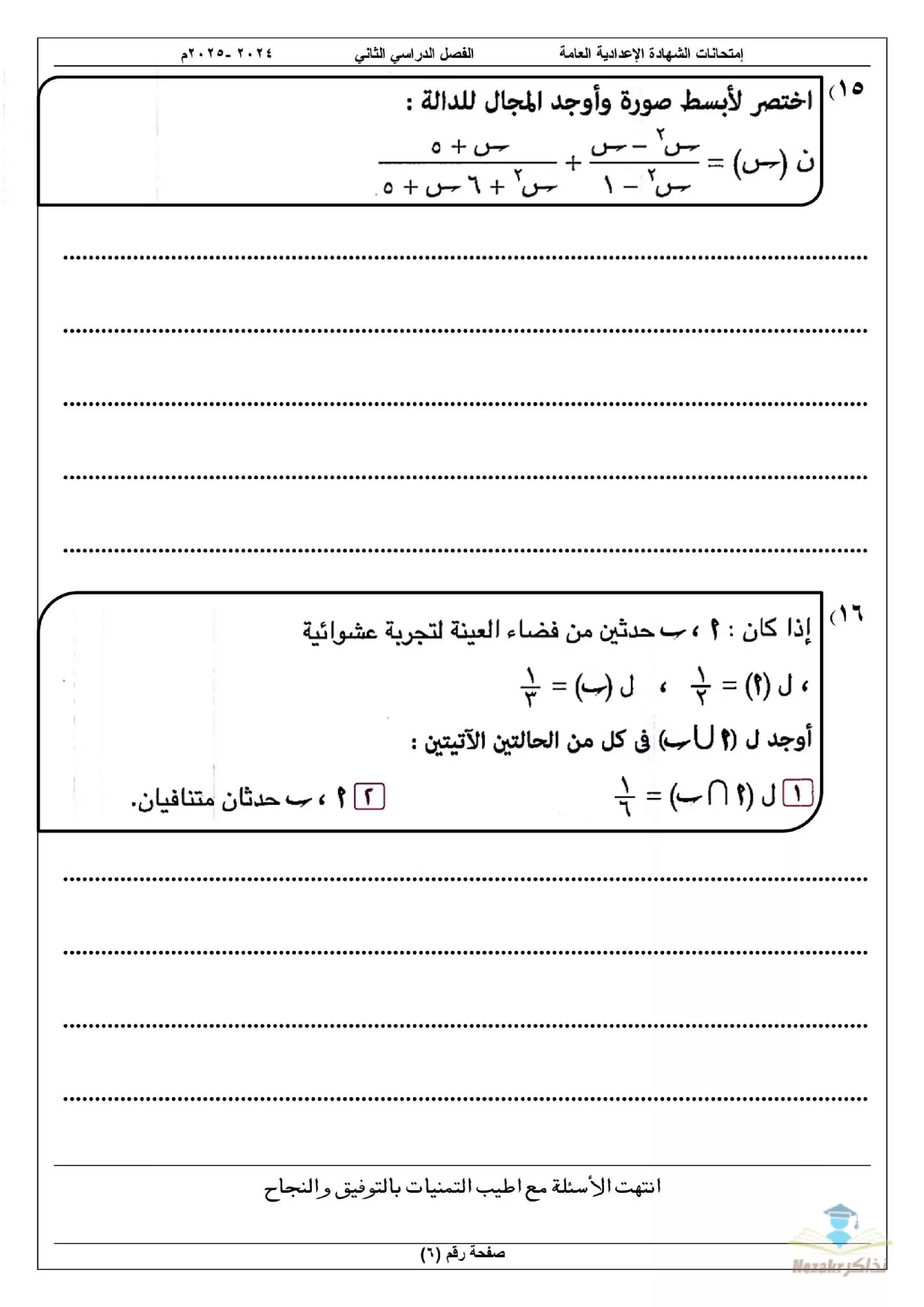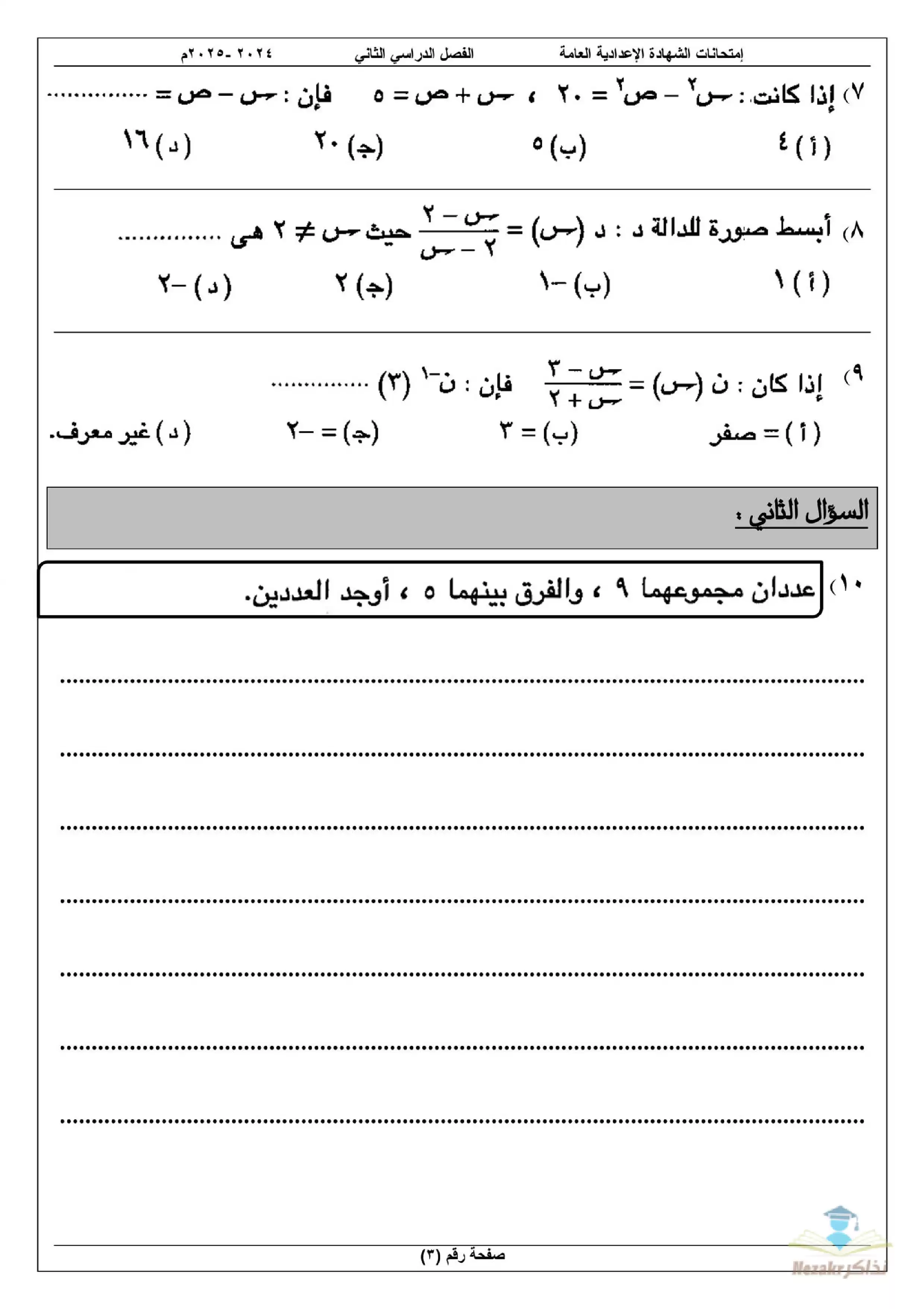 نقدم لكم المزيد من المحتوى من إعداد امتحانات الشهادة الإعدادية في المحافظات ومقدم إلى الصف الثالث الإعدادي للإطلاع عليه أو تحميله.