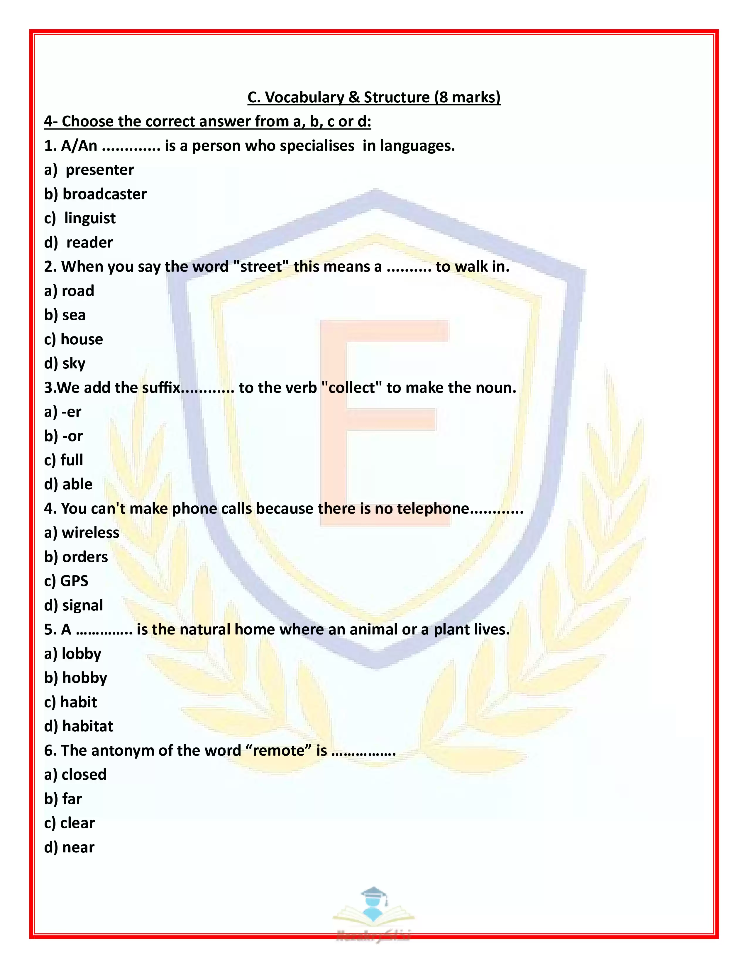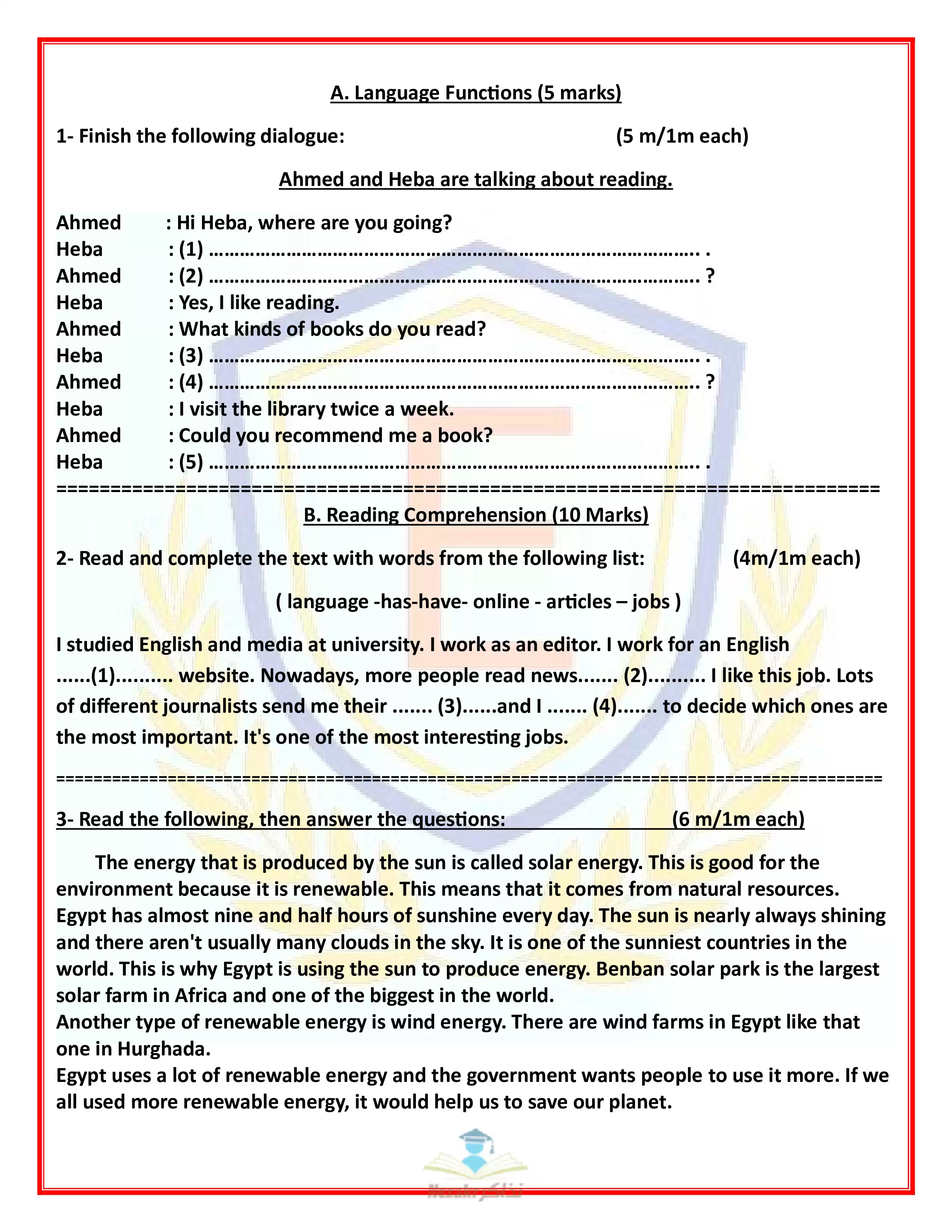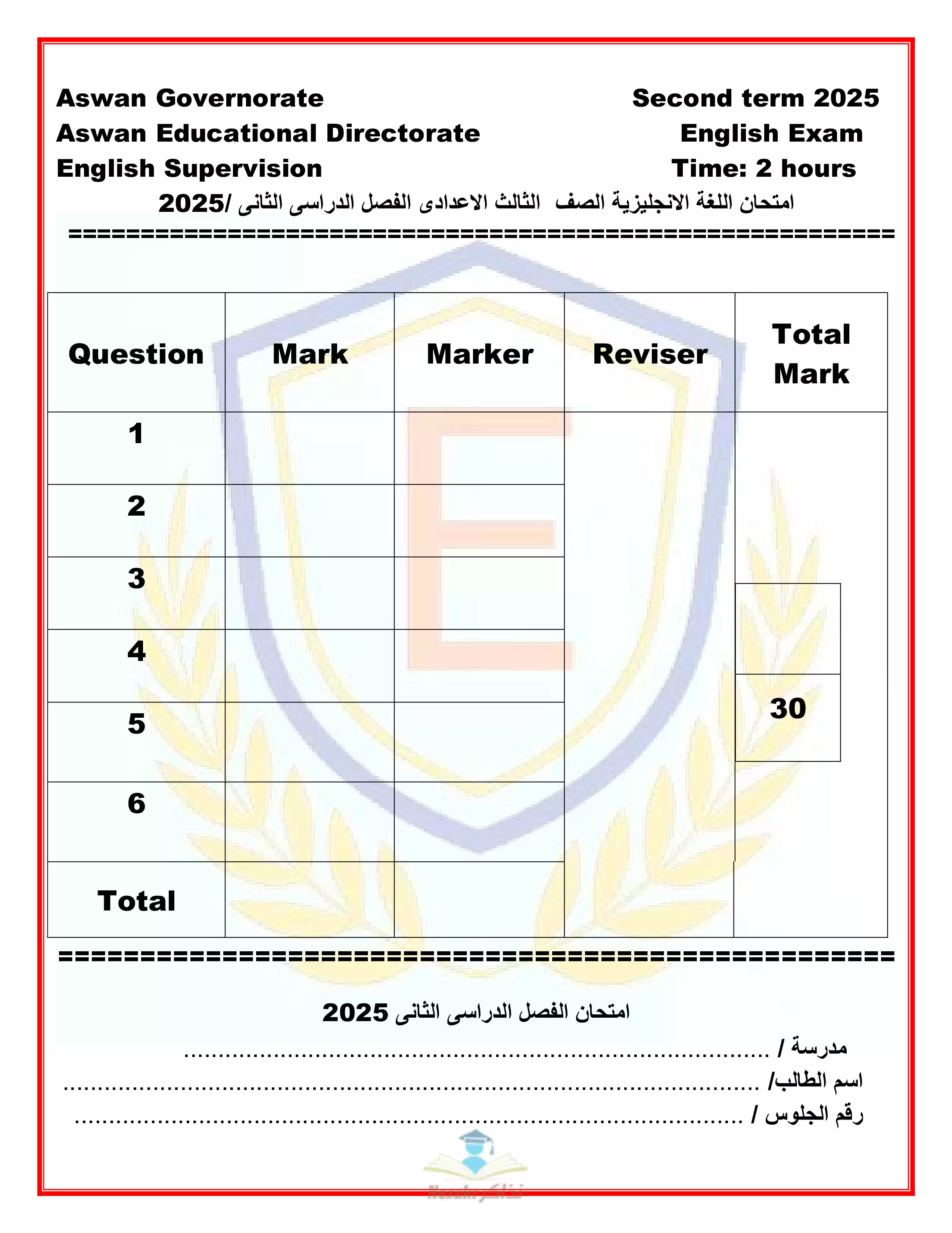 | بيانات الملف: (نموذج اختبار بوكلت استرشادي في اللغة الإنجليزية لثالثة اعدادي محافظة أسوان ترم ثاني 2025 - Nezakr) | |