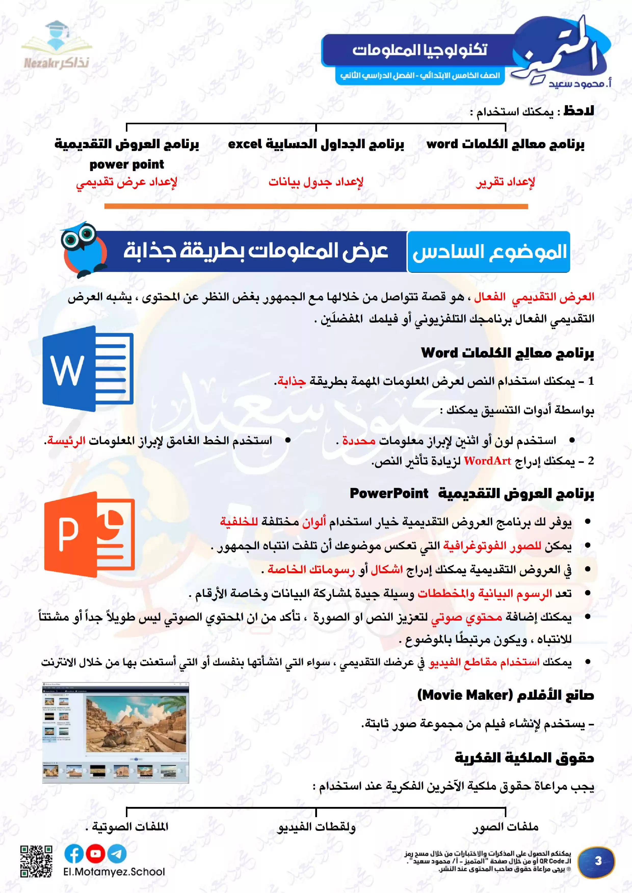 صفحة 3 من 26 صفحة من ملف: مراجعة المتميز النهائية في مادة تكنولوجيا المعلومات للصف الخامس الابتدائي الترم الثاني - Nezakr
