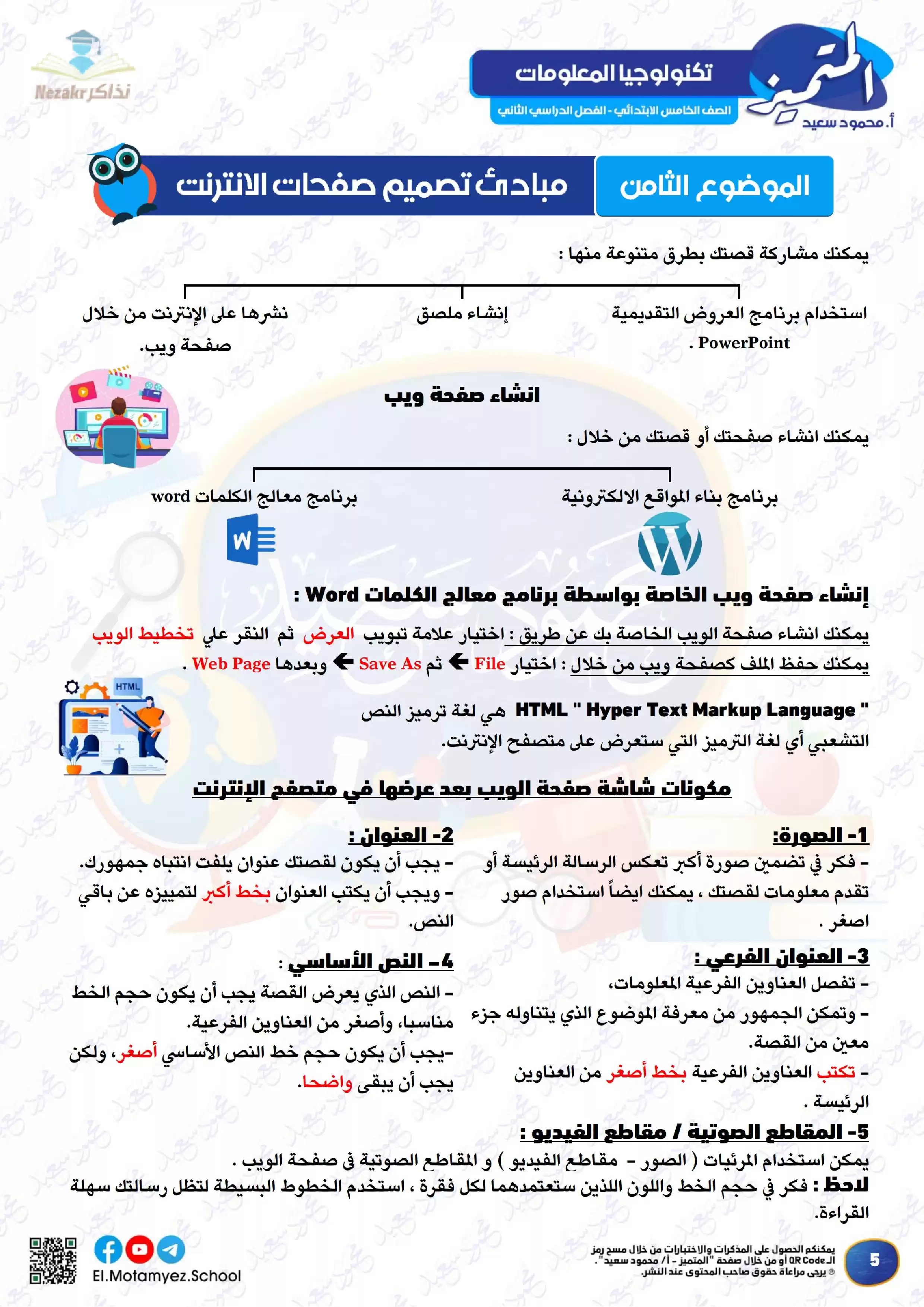 صفحة 5 من 26 صفحة من ملف: مراجعة المتميز النهائية في مادة تكنولوجيا المعلومات للصف الخامس الابتدائي الترم الثاني - Nezakr