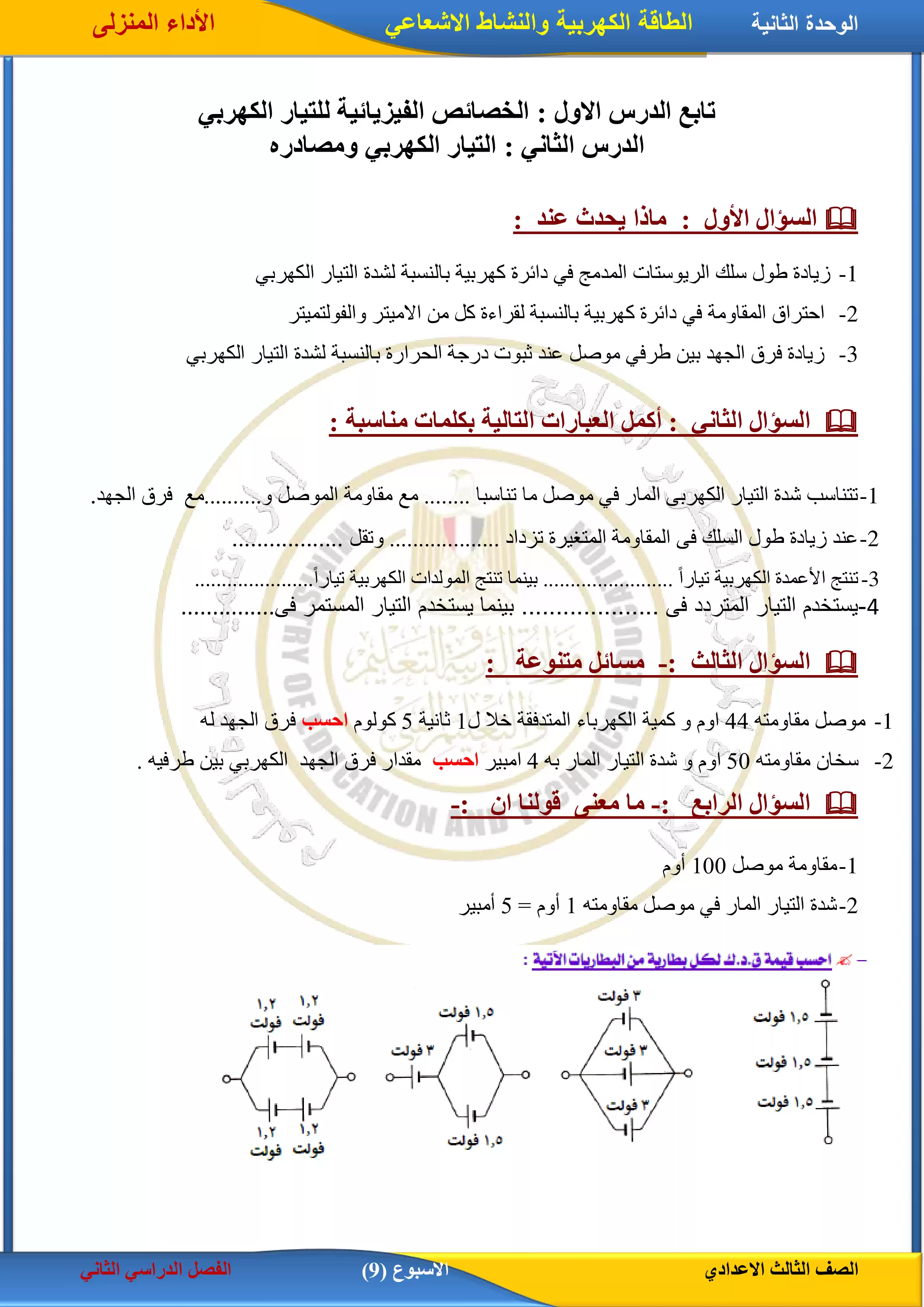 | بيانات الملف: (الواجب والآداء المنزلي للأسبوع التاسع في العلوم للصف الثالث الاعدادي الترم الثاني 2025 - Nezakr) | |