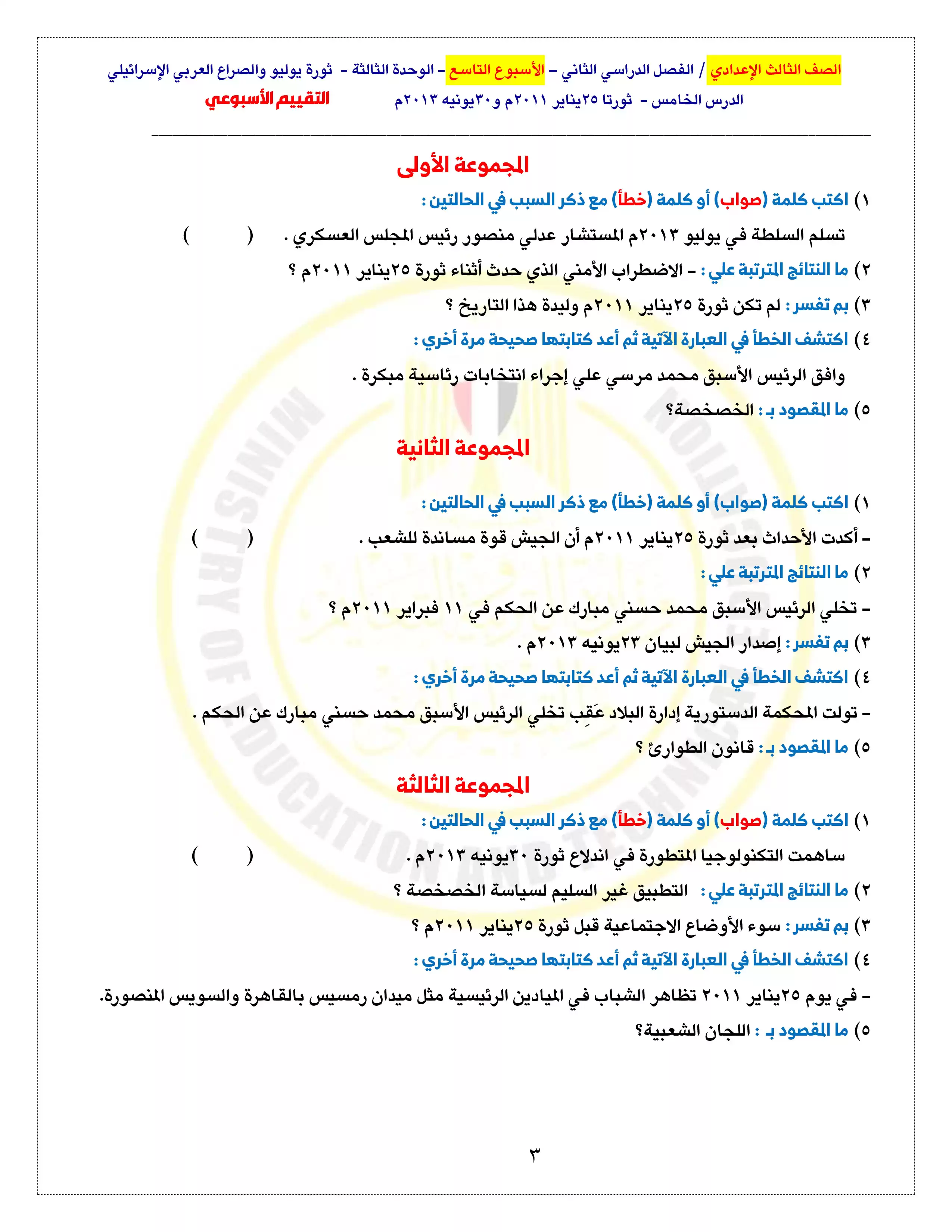 ننشر التقييمات والآداءات الصفية والمنزلية للصف الثالث الاعدادي في كل أسابيع الترم الثاني لحظة بلحظة عبر موقع نذاكر التعليمي، فتابعونا: