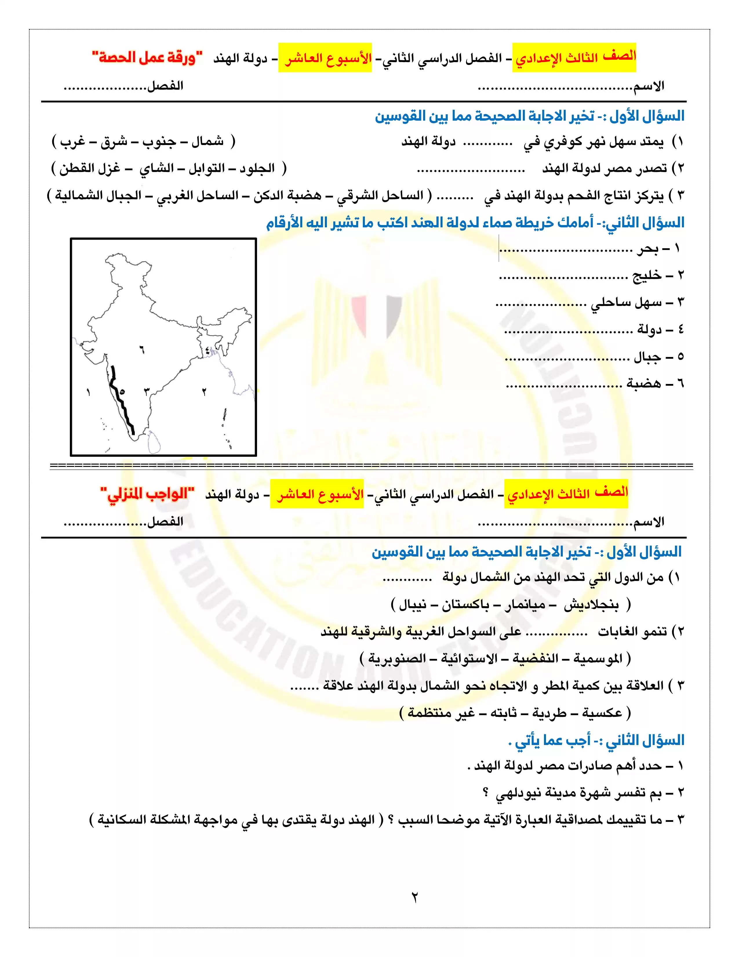 صفحة 2 من 5 صفحة من ملف: التقييمات والآداءات الصفية والمنزلية الخاصة بالأسبوع العاشر في الدراسات للصف الثالث الاعدادي الترم الثاني 2025 - Nezakr