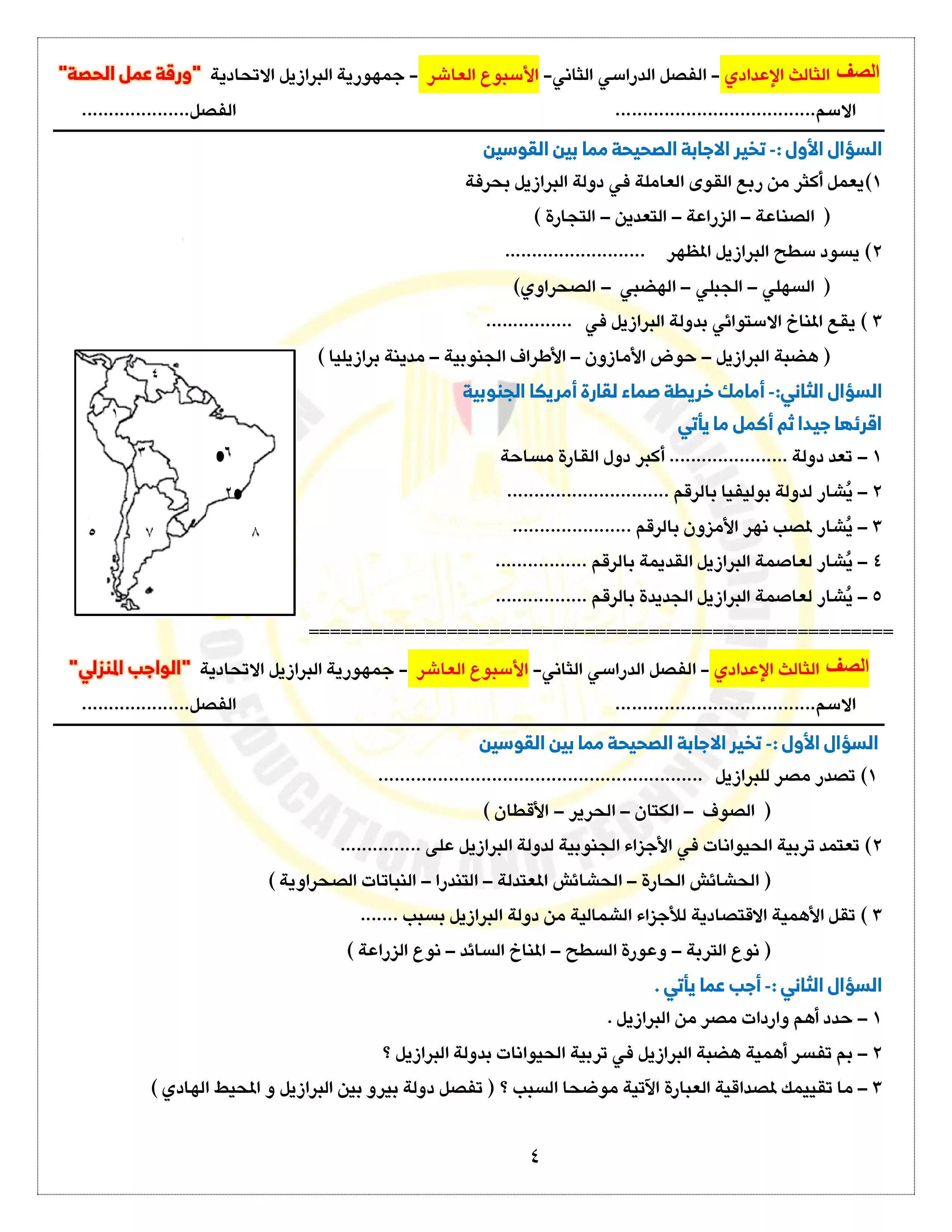صفحة 4 من 5 صفحة من ملف: التقييمات والآداءات الصفية والمنزلية الخاصة بالأسبوع العاشر في الدراسات للصف الثالث الاعدادي الترم الثاني 2025 - Nezakr