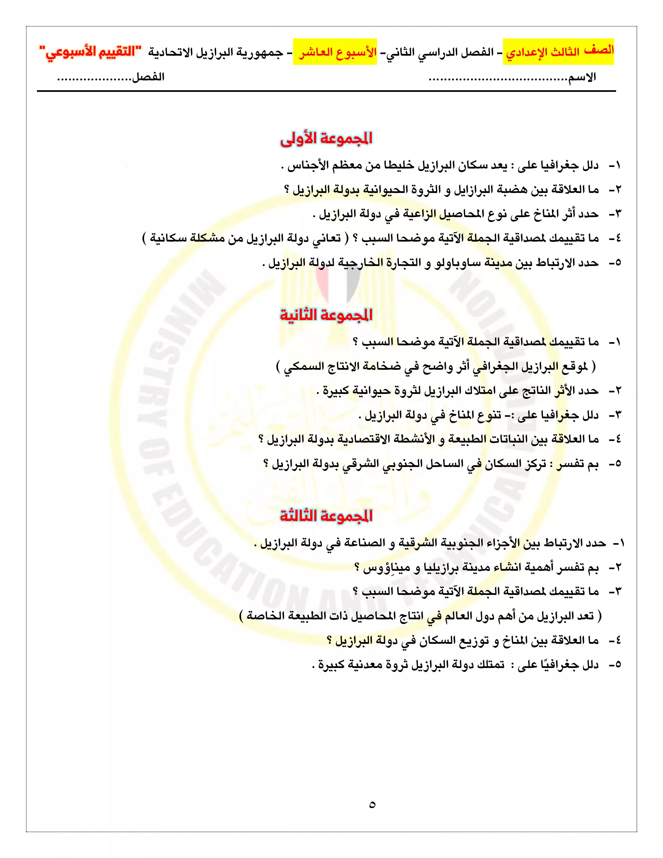 صفحة 5 من 5 صفحة من ملف: التقييمات والآداءات الصفية والمنزلية الخاصة بالأسبوع العاشر في الدراسات للصف الثالث الاعدادي الترم الثاني 2025 - Nezakr