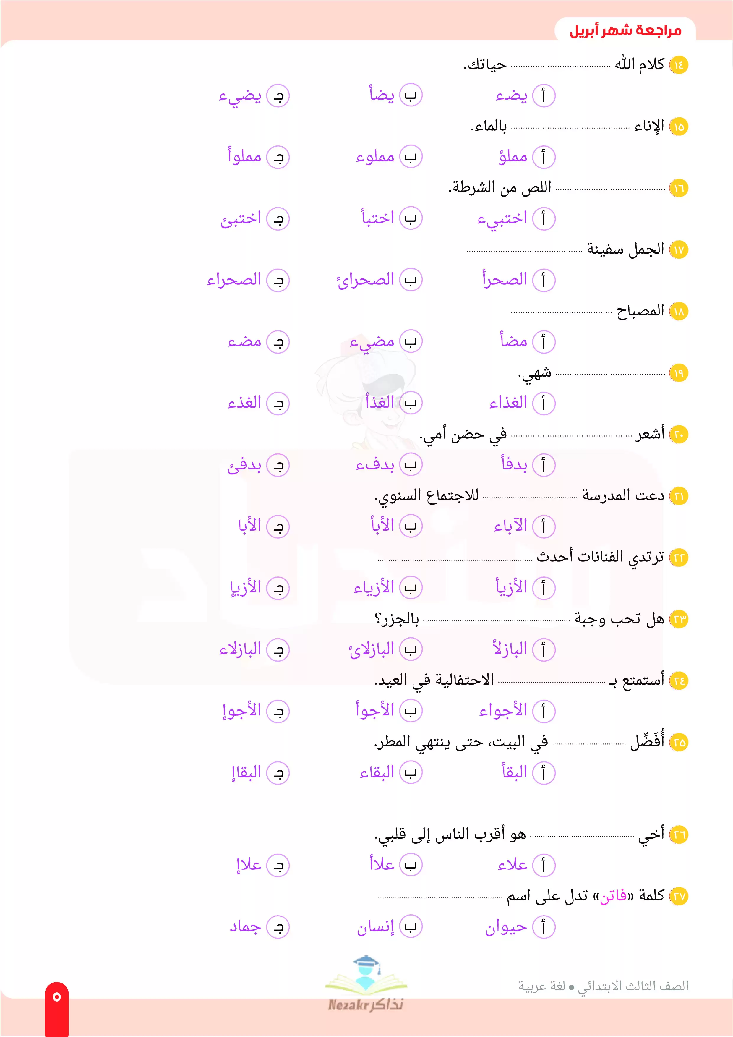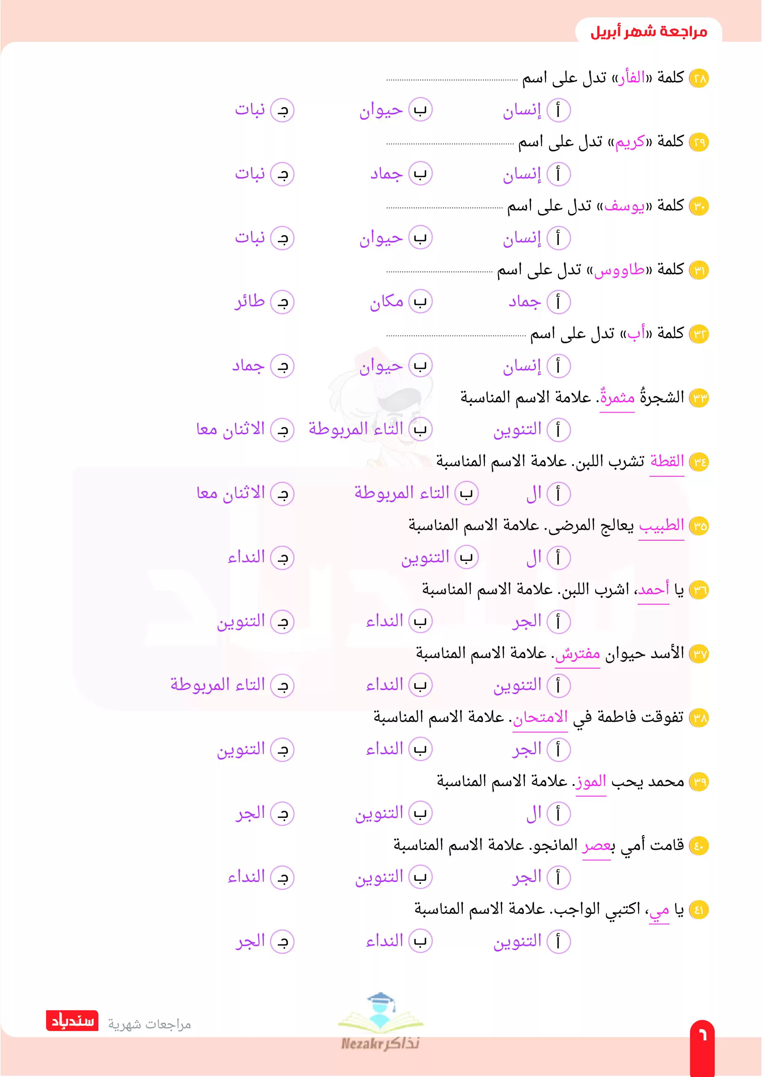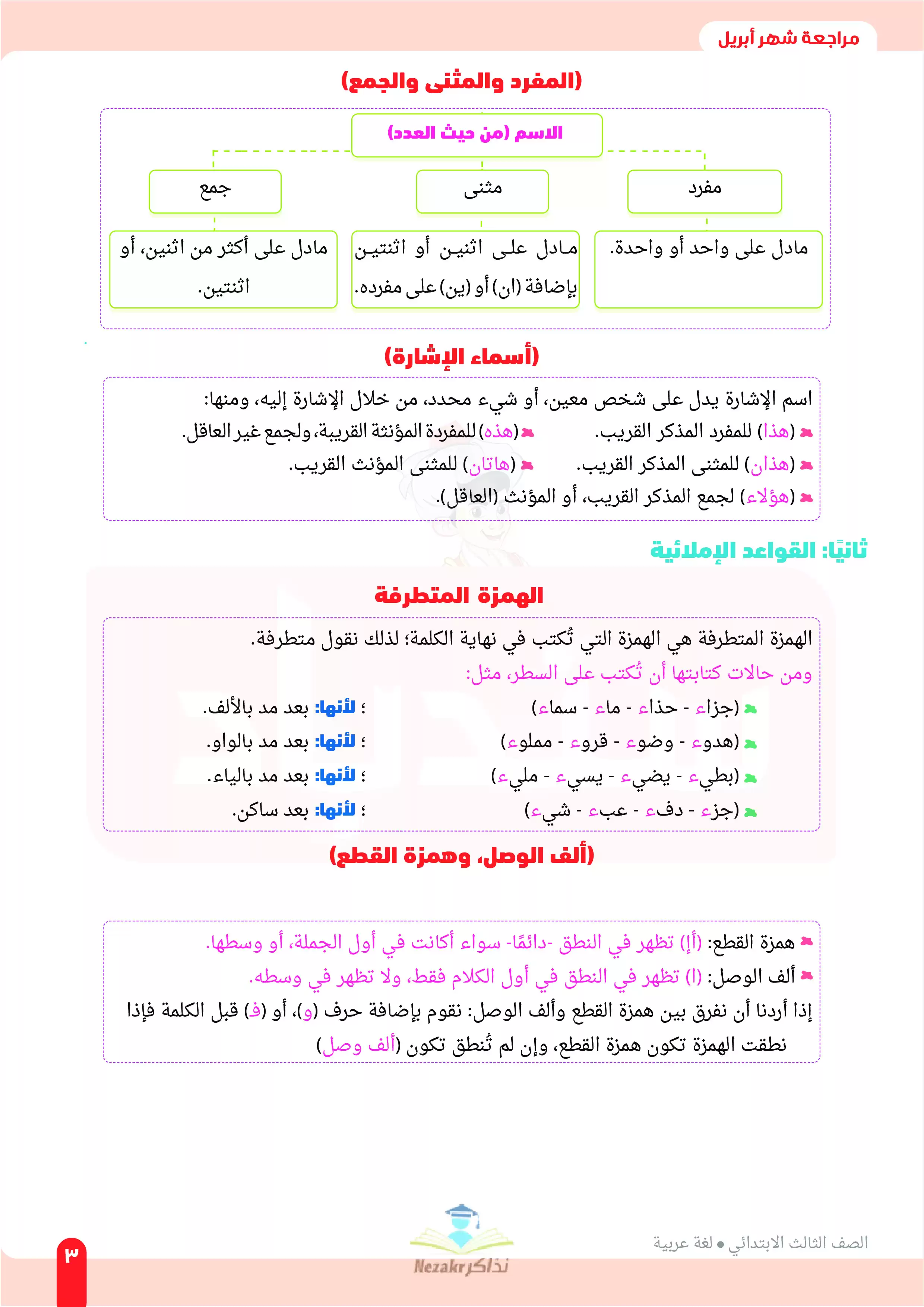 | بيانات الملف: (مراجعة لغة عربية من كتاب السندباد - مقرر شهر ابريل - للصف الثالث الابتدائي - Nezakr) | |