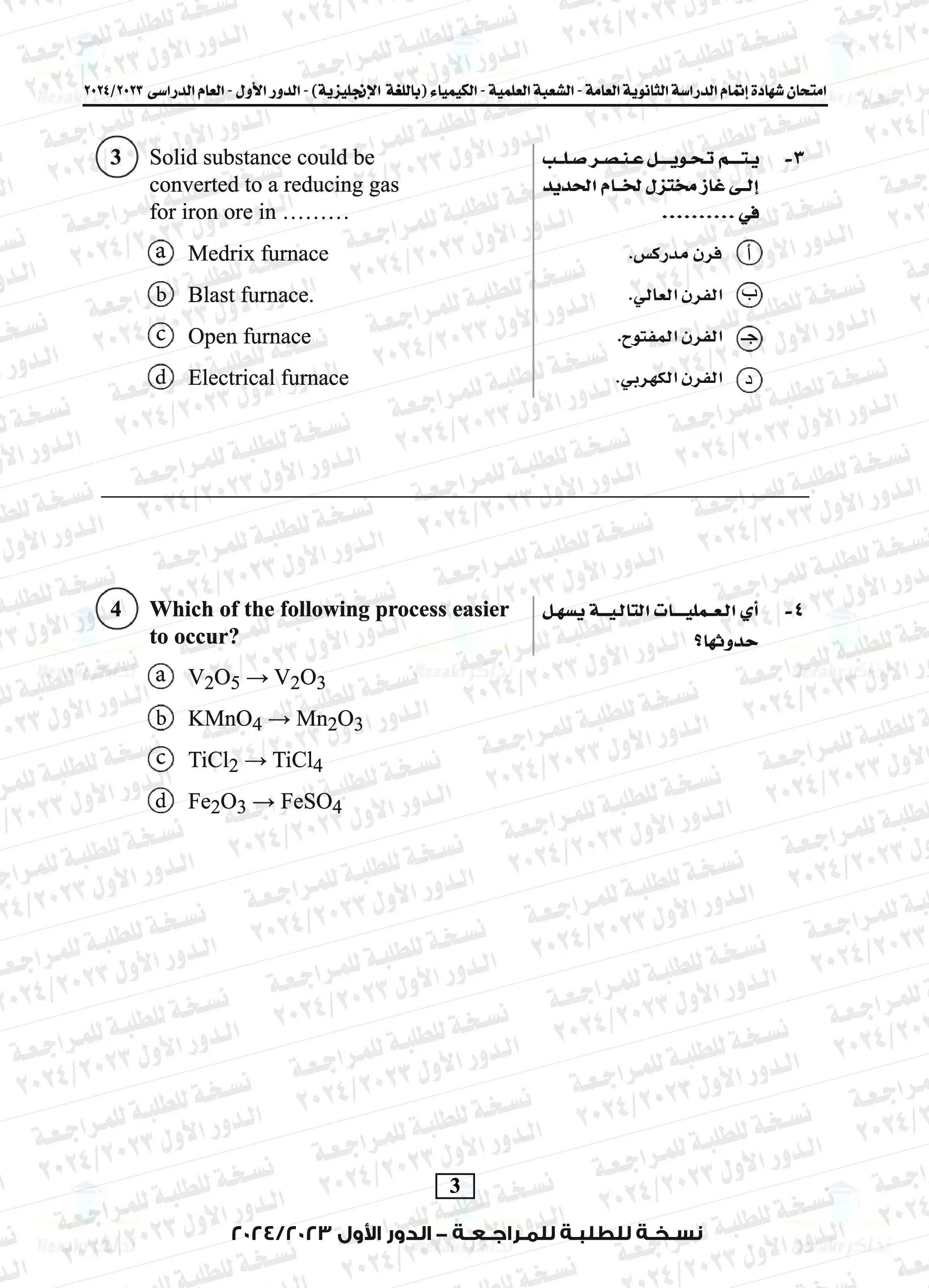 صفحة 3 من 37 صفحة من ملف: امتحان الكيمياء باللغة الإنجليزية Chemistry للثانوية العامة الدور الأول 2024 مع نموذج الإجابة الرسمي - Nezakr