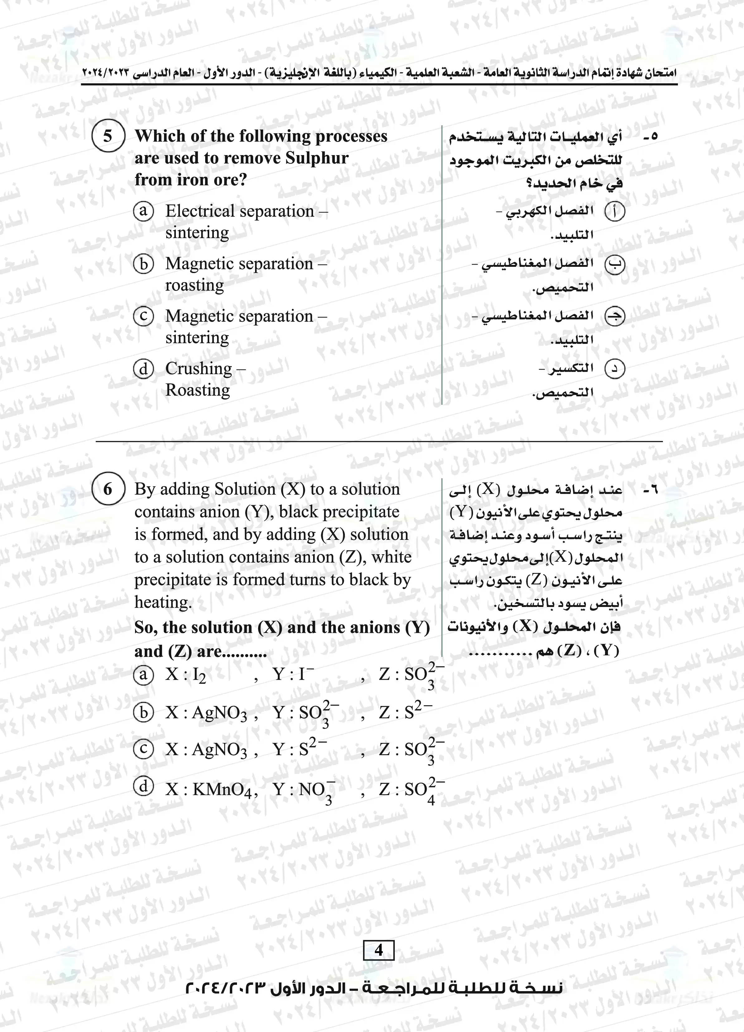 صفحة 4 من 37 صفحة من ملف: امتحان الكيمياء باللغة الإنجليزية Chemistry للثانوية العامة الدور الأول 2024 مع نموذج الإجابة الرسمي - Nezakr