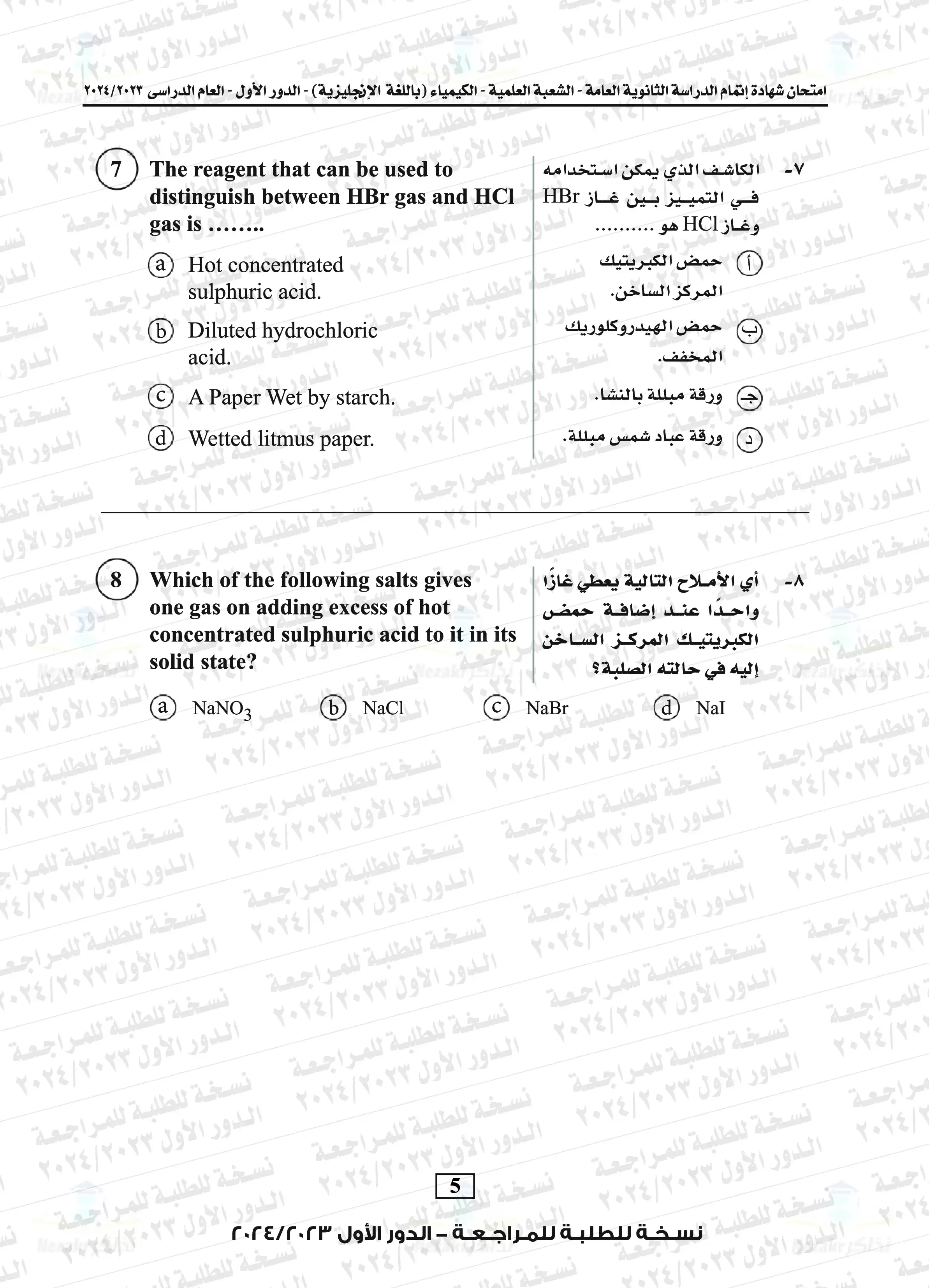 صفحة 5 من 37 صفحة من ملف: امتحان الكيمياء باللغة الإنجليزية Chemistry للثانوية العامة الدور الأول 2024 مع نموذج الإجابة الرسمي - Nezakr