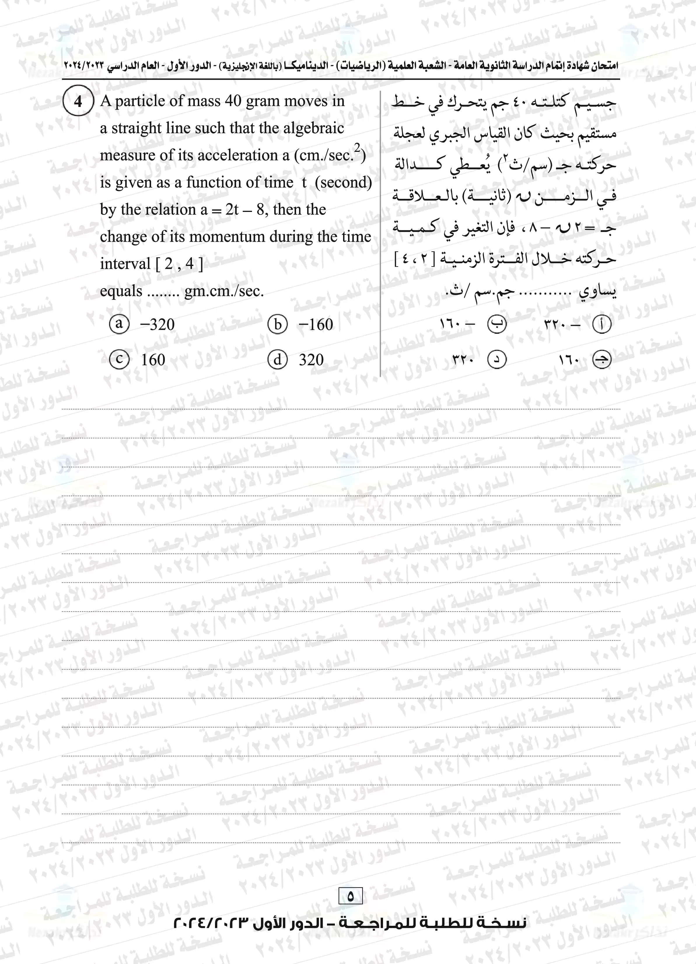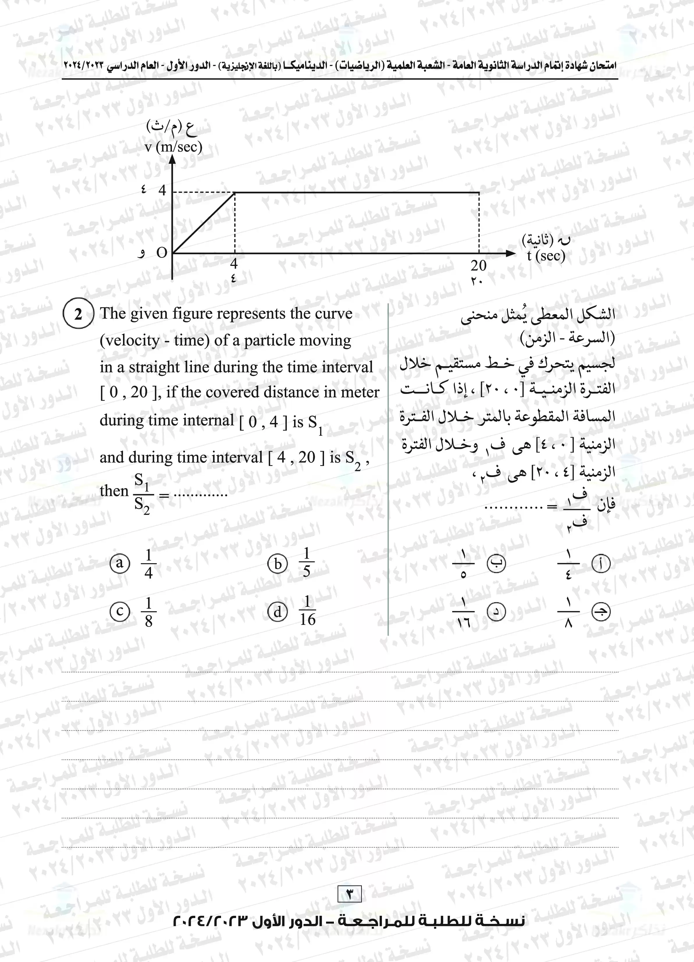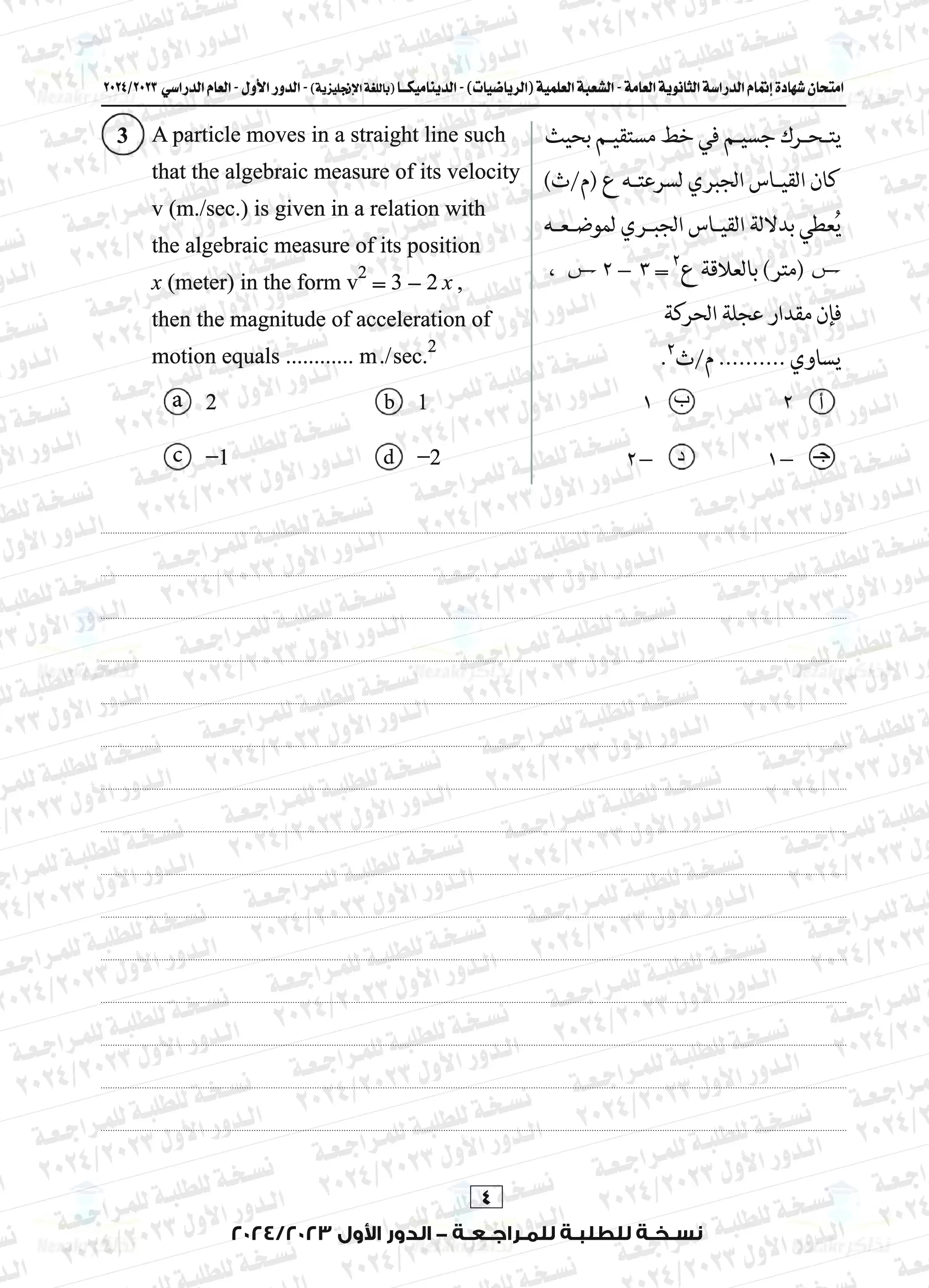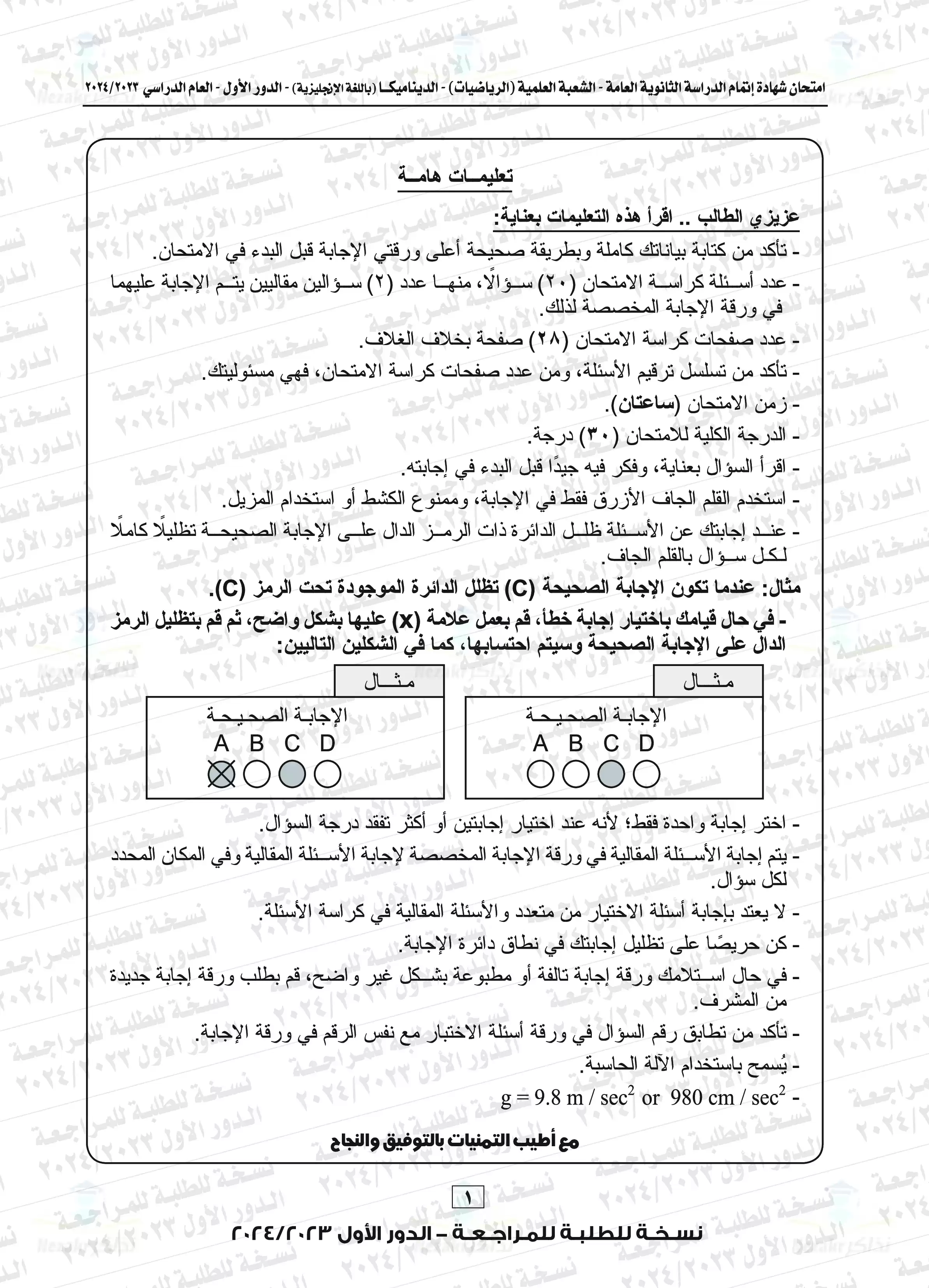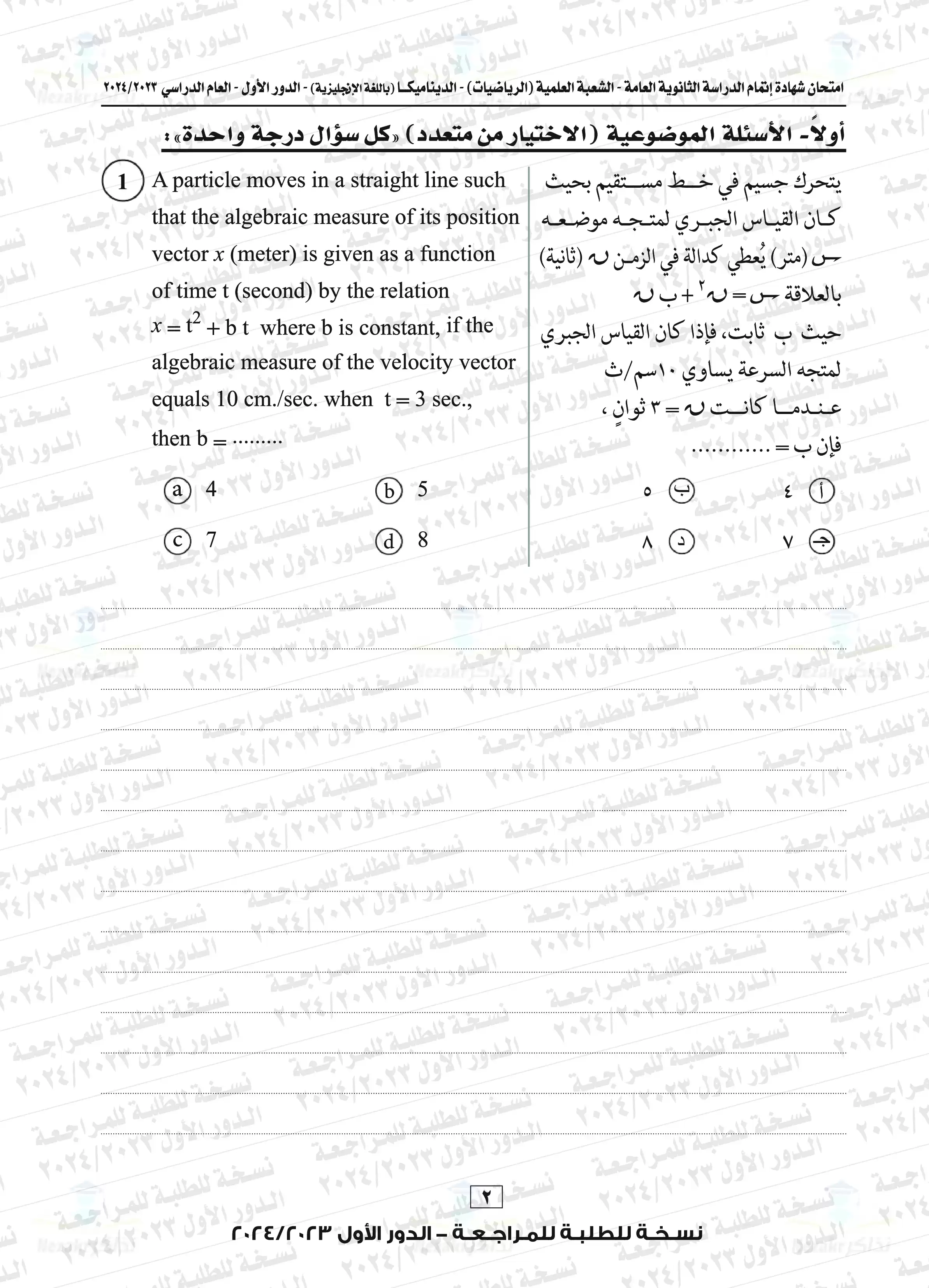 | بيانات الملف: (امتحان الديناميكا باللغة الإنجليزية Dynamics للثانوية العامة الدور الأول 2024 مع نموذج الإجابة الرسمي - Nezakr) | |