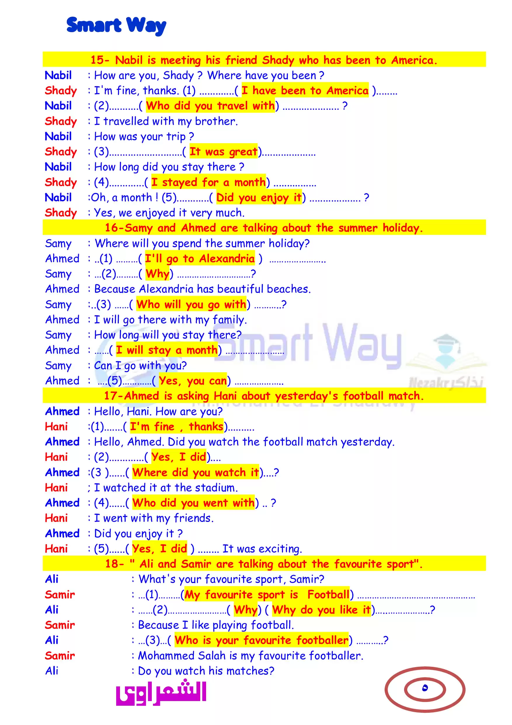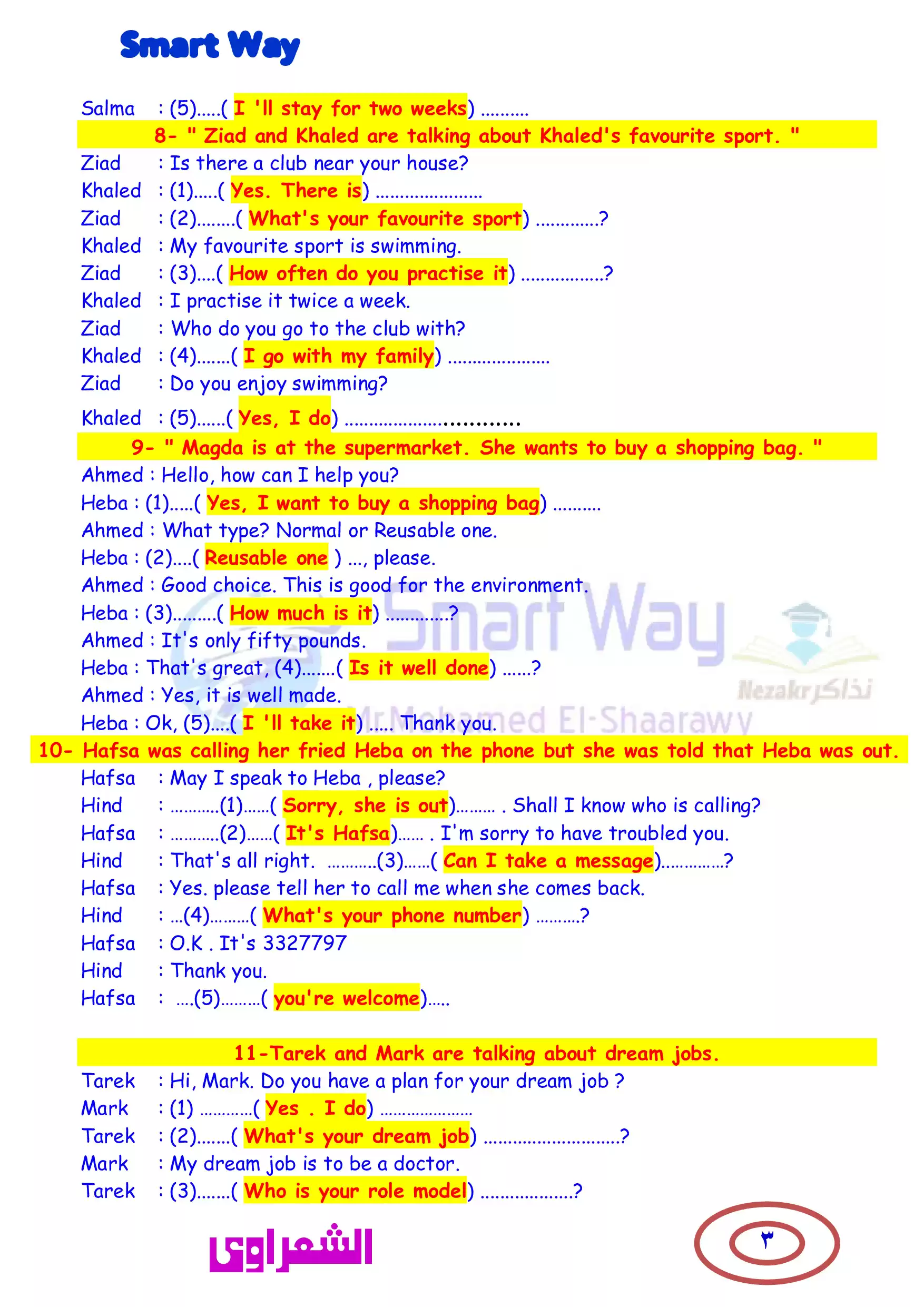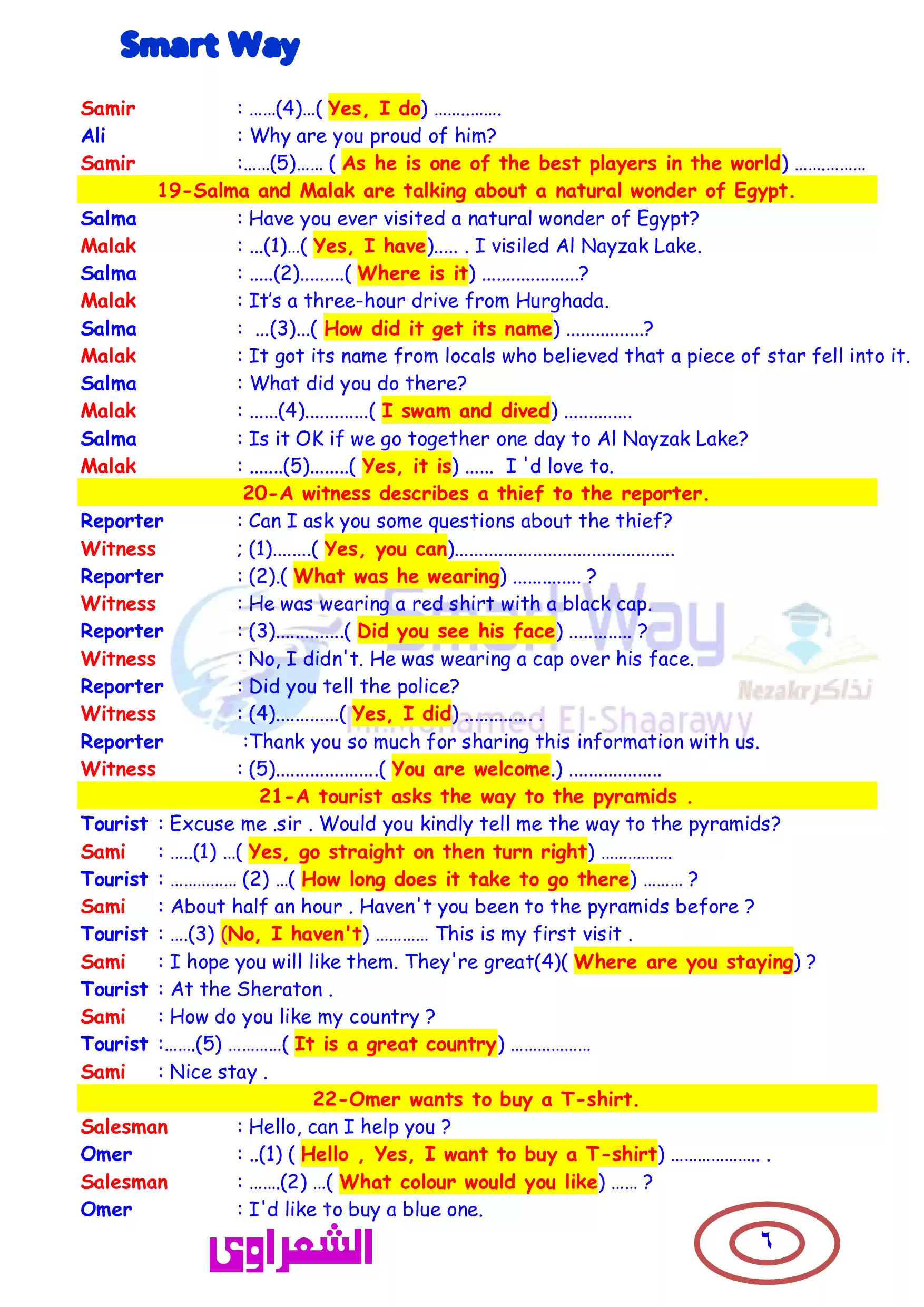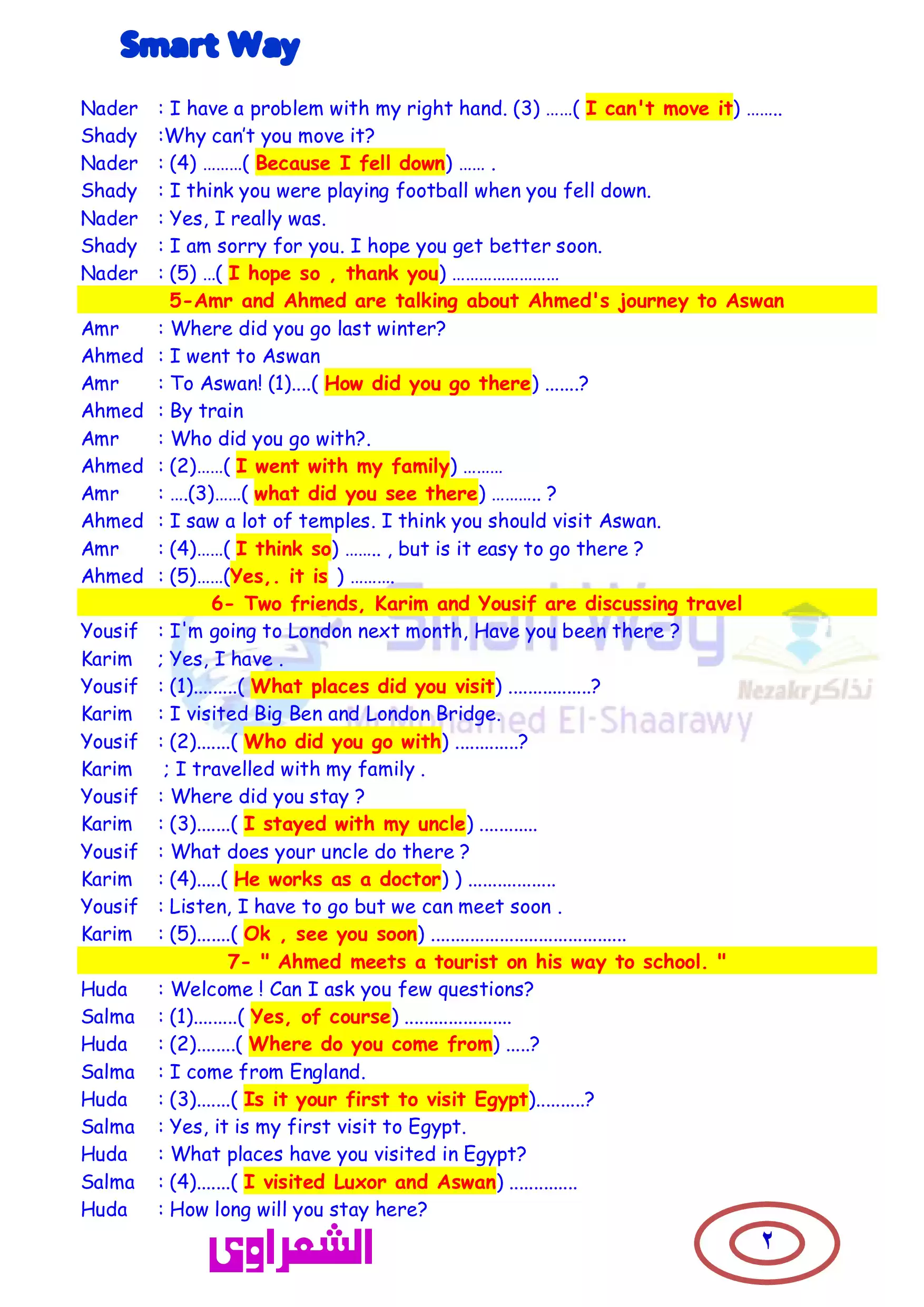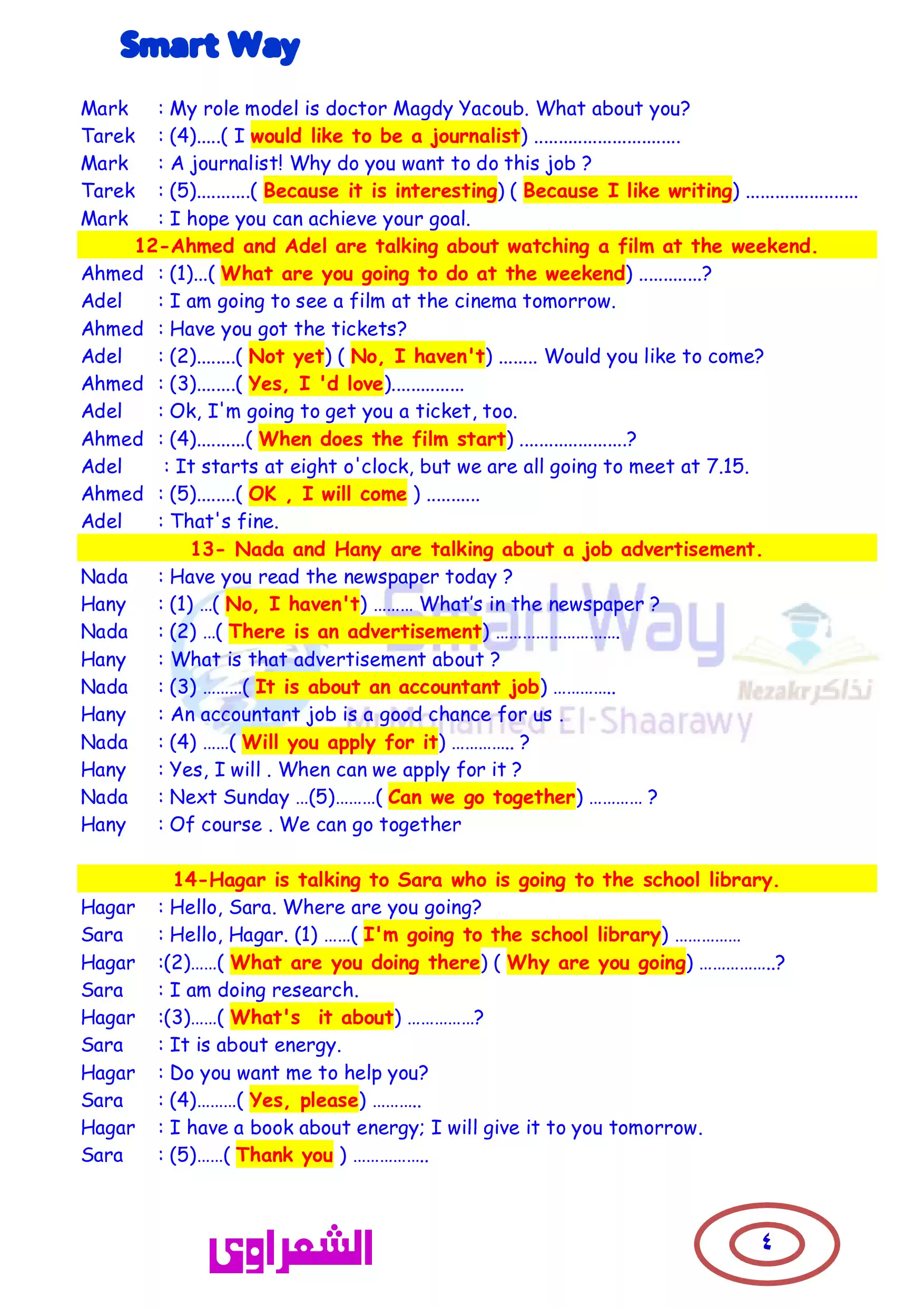 نقدم لكم مذكرة سمارت واي من أستاذ محمد الشعراوي في المراجعة النهائية لمادة الإنجليزي للشهادة الإعدادية الفصل الدراسي الثاني، والمذكرة عبارة عن أسئلة بإجاباتها النموذجية عامة وشاملة لكافة أجزاء منهج الانجليزي للصف الثالث الاعدادي ترم ثاني، فالمذكرة تمثل مراجعة ليلة الامتحان في مادة اللغة الانجليزية للصف الثالث الإعدادي، وهي مذكرة مميزة بصيغة PDF وبجودة عالية بحيث يمكنك تحميلها وتصفحها مجاناً عبر جهاز الكمبيوتر الخاص بك أو هاتفك المحمول، وكذلك يمكنك طباعتها واستخدامها ورقياً.