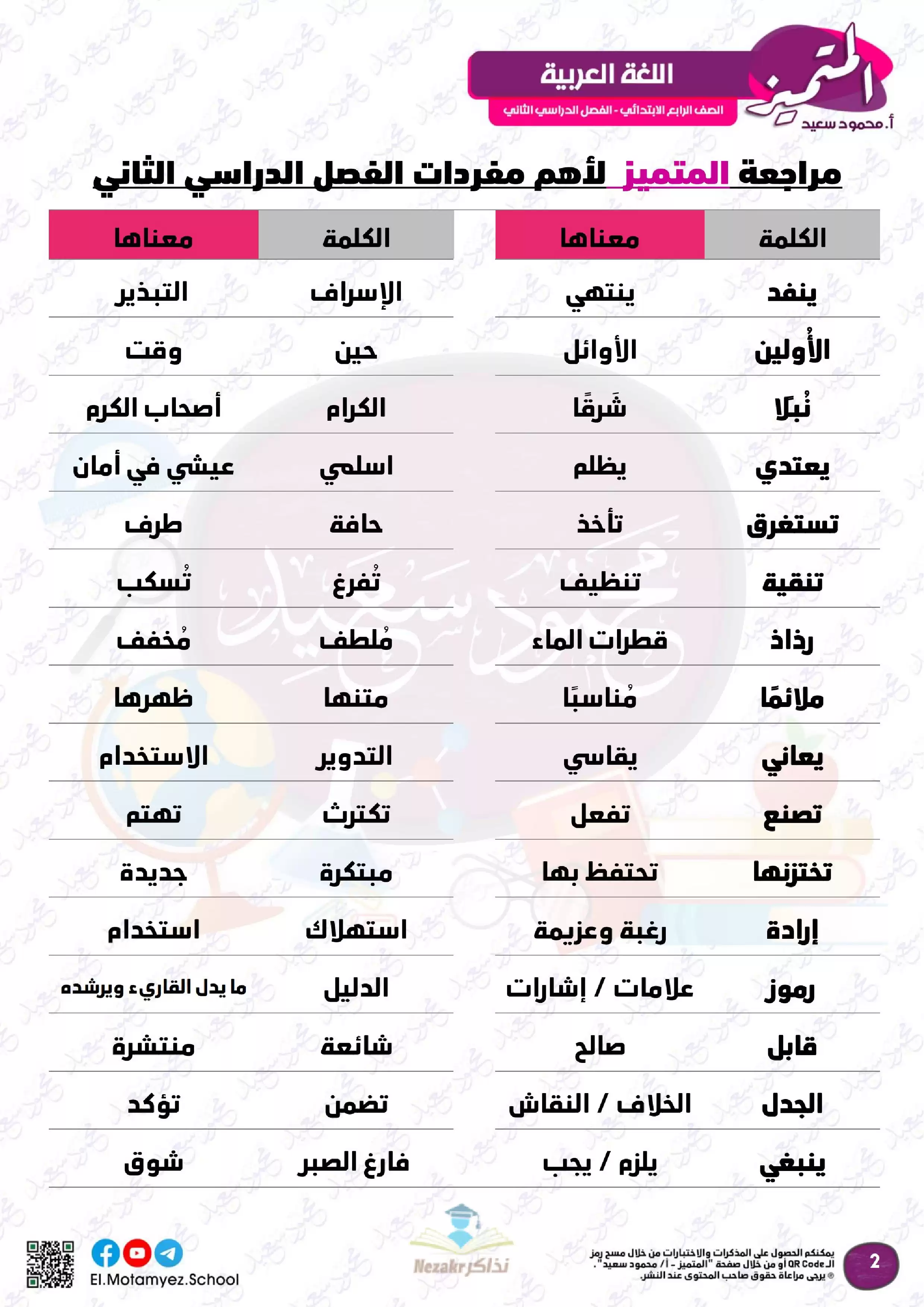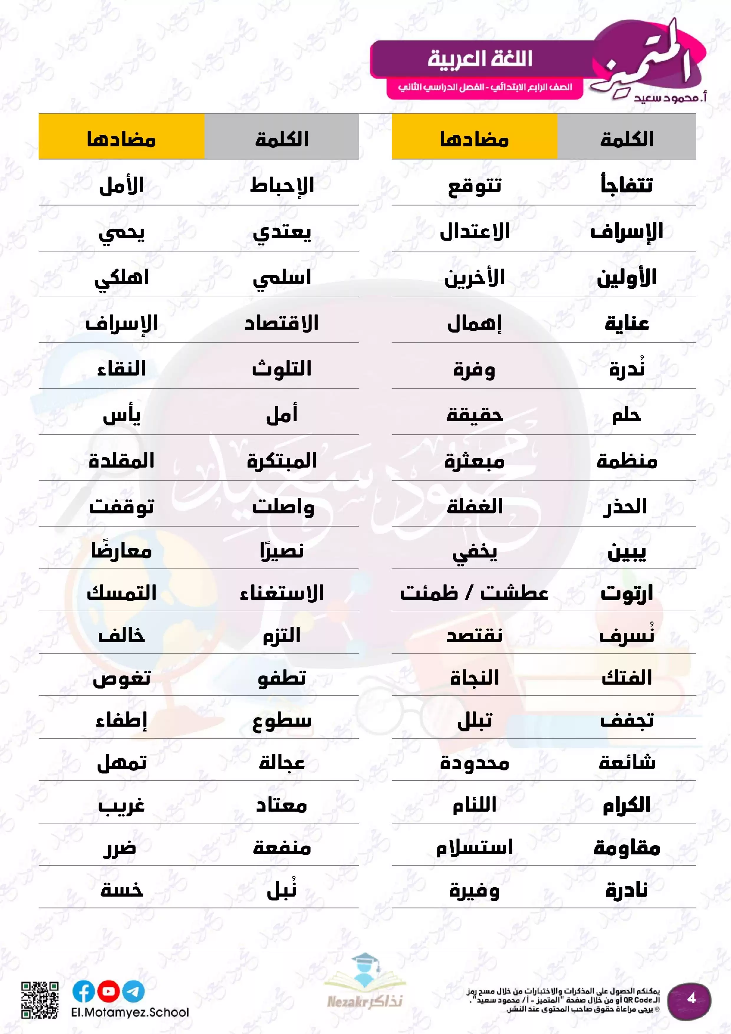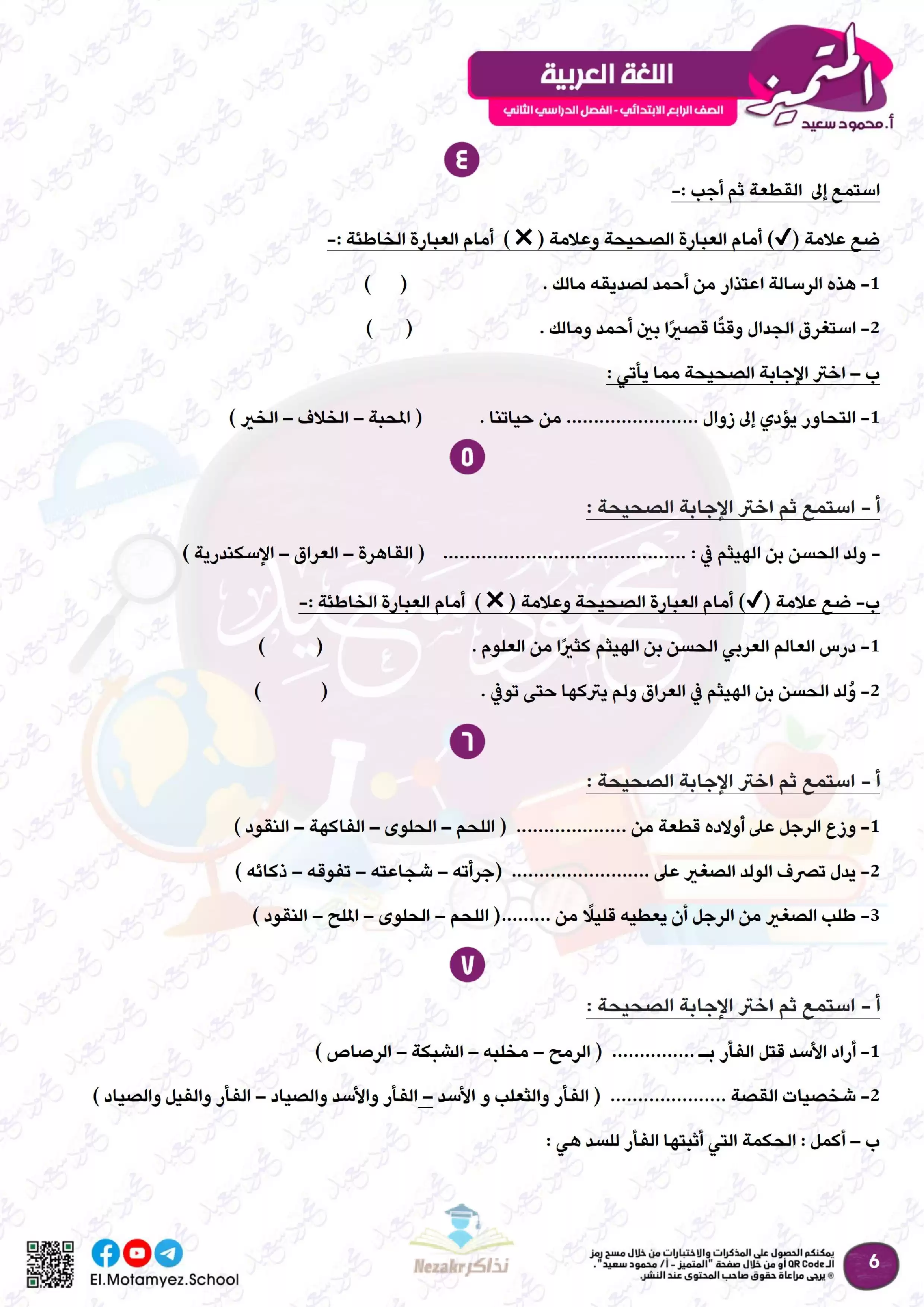| بيانات الملف: (مراجعة المتميز النهائية في مادة اللغة العربية للصف الرابع الابتدائي الترم الثاني - Nezakr) | |