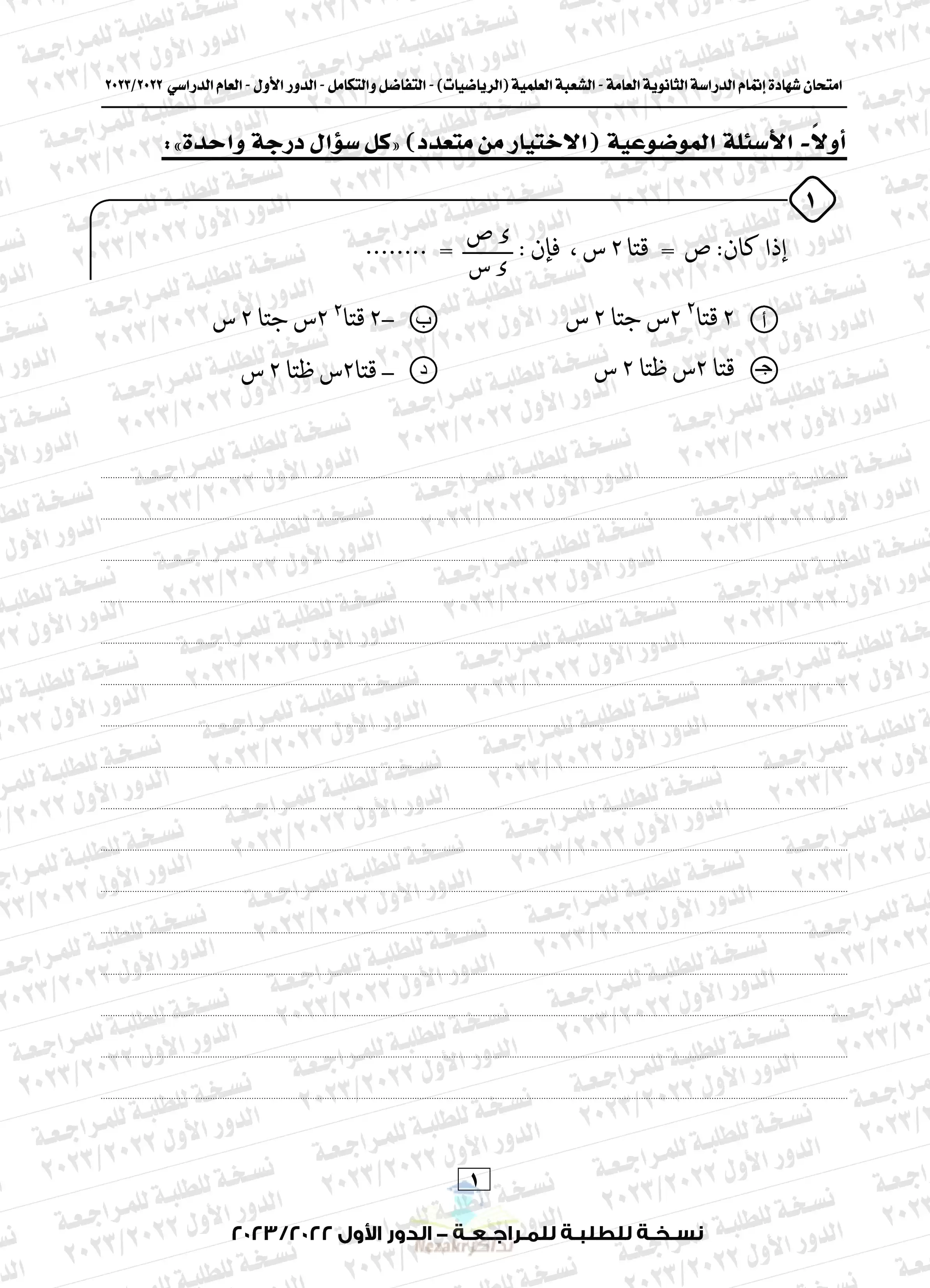 • امتحان التفاضل والتكامل ثانوية عامة 2023