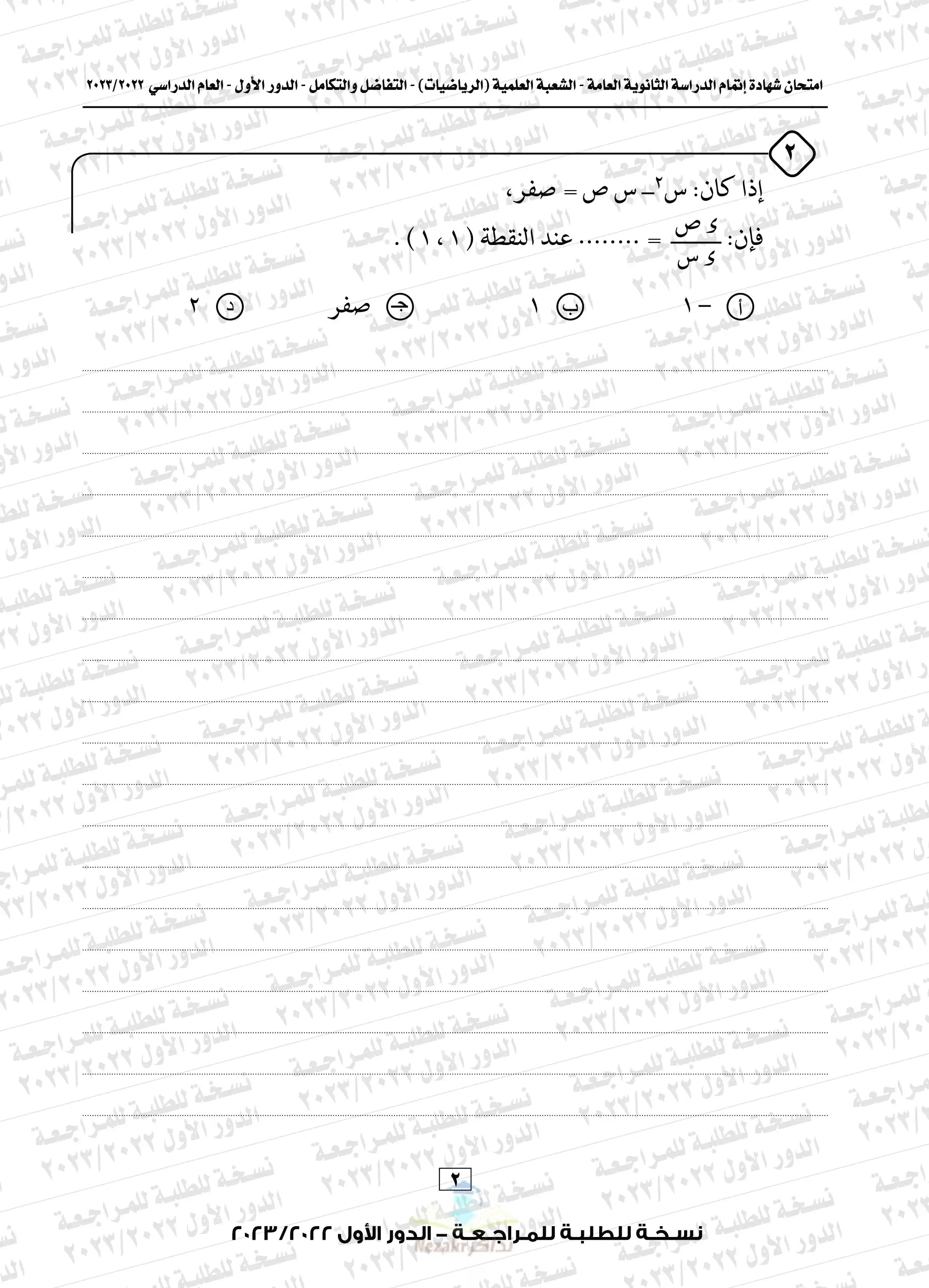 صفحة 2 من 28 صفحة من ملف: امتحان التفاضل والتكامل للصف الثالث الثانوي 2023 الدور الأول مع نموذج الإجابة الرسمي - Nezakr