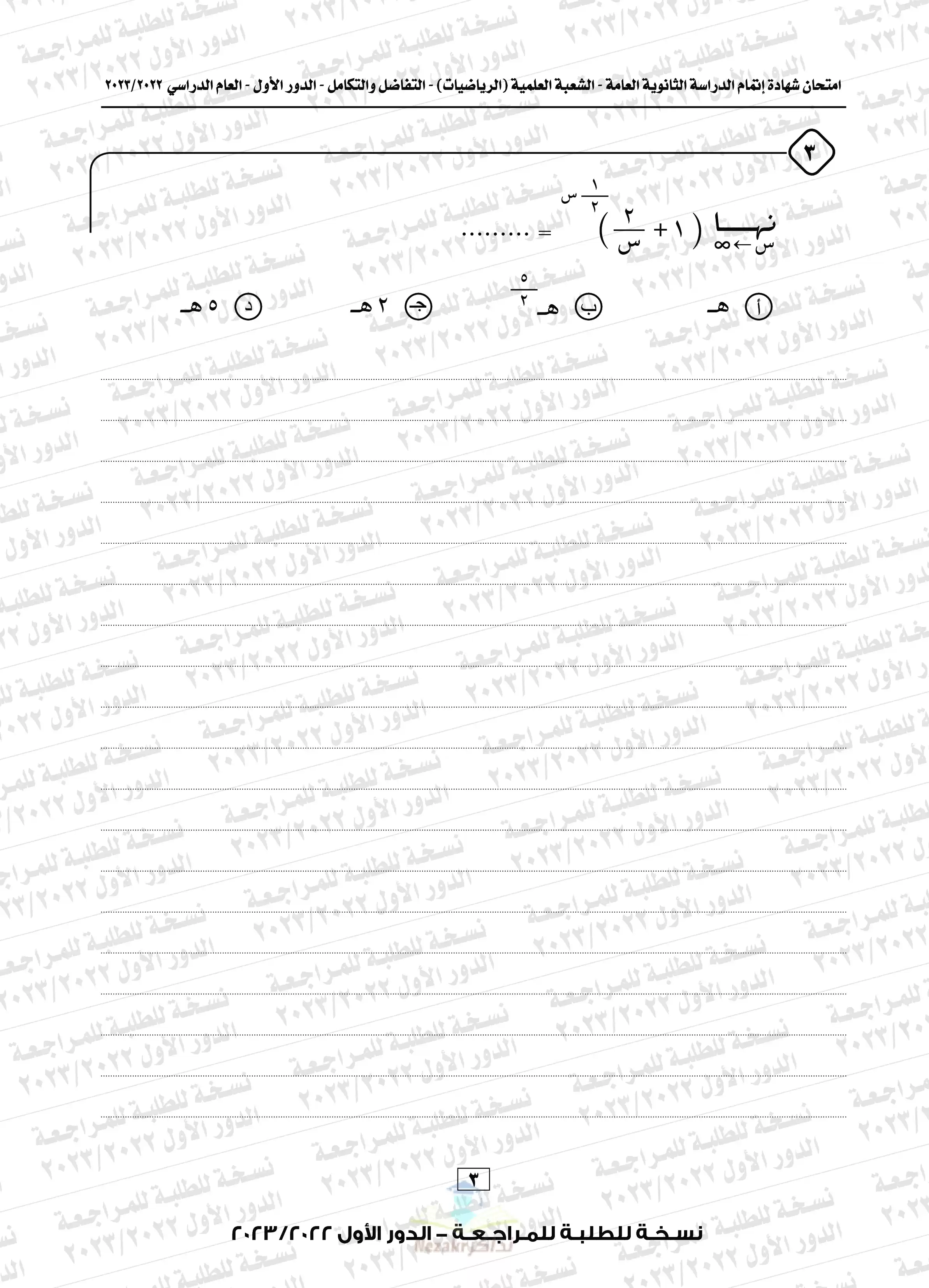 صفحة 3 من 28 صفحة من ملف: امتحان التفاضل والتكامل للصف الثالث الثانوي 2023 الدور الأول مع نموذج الإجابة الرسمي - Nezakr