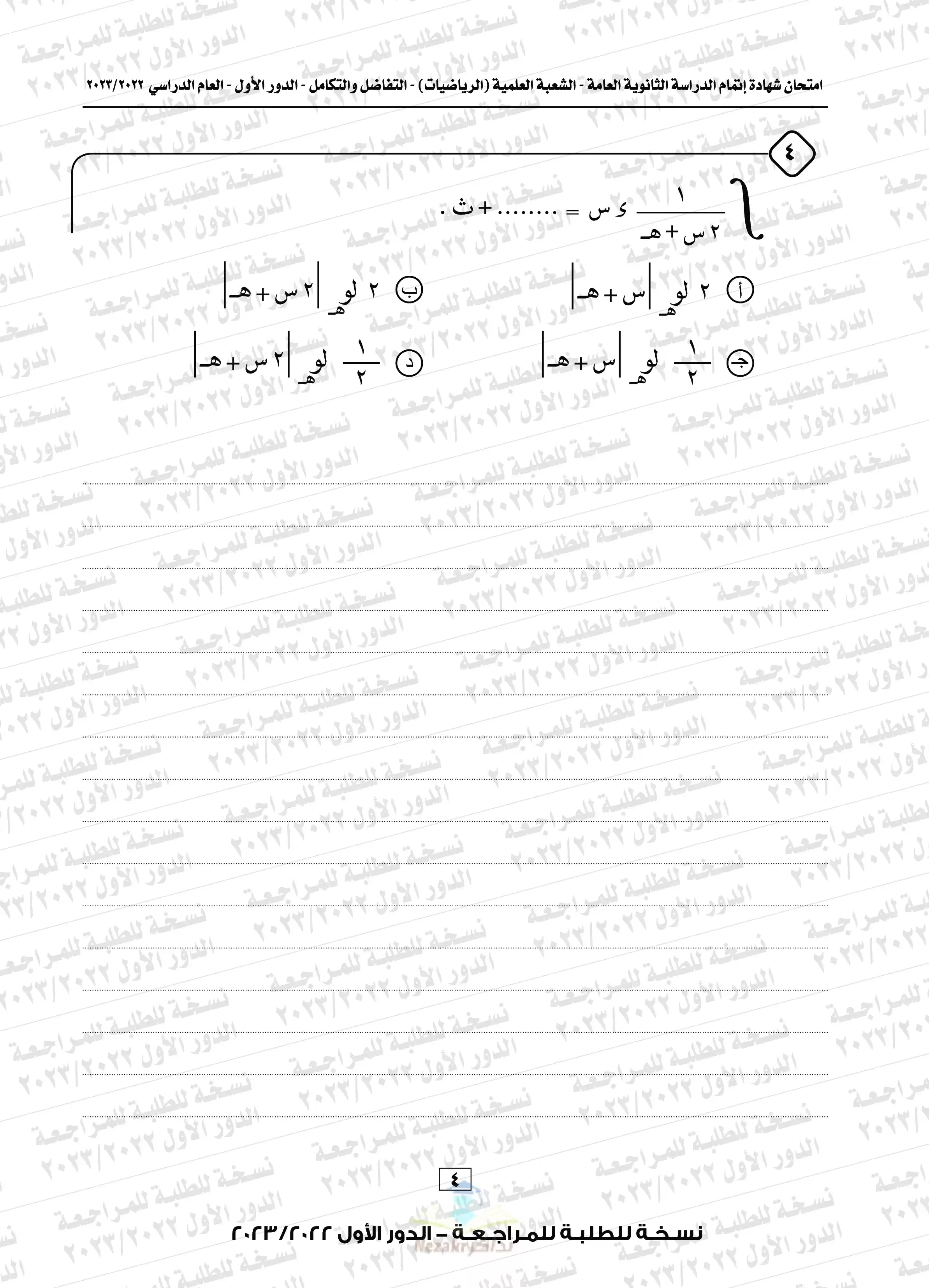 صفحة 4 من 28 صفحة من ملف: امتحان التفاضل والتكامل للصف الثالث الثانوي 2023 الدور الأول مع نموذج الإجابة الرسمي - Nezakr