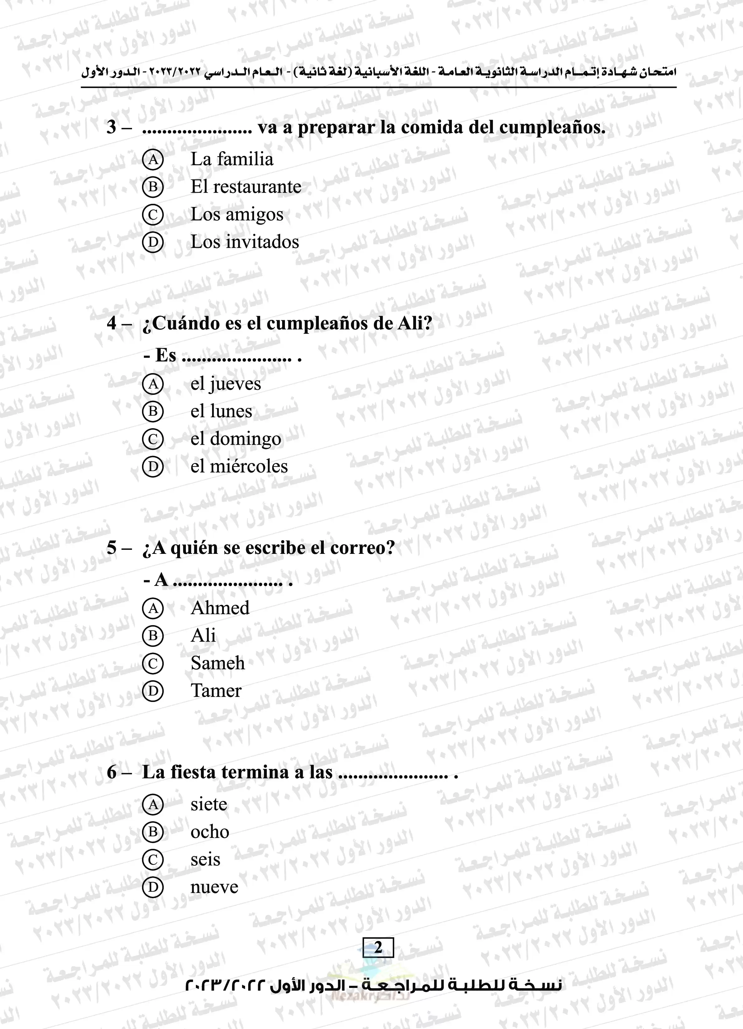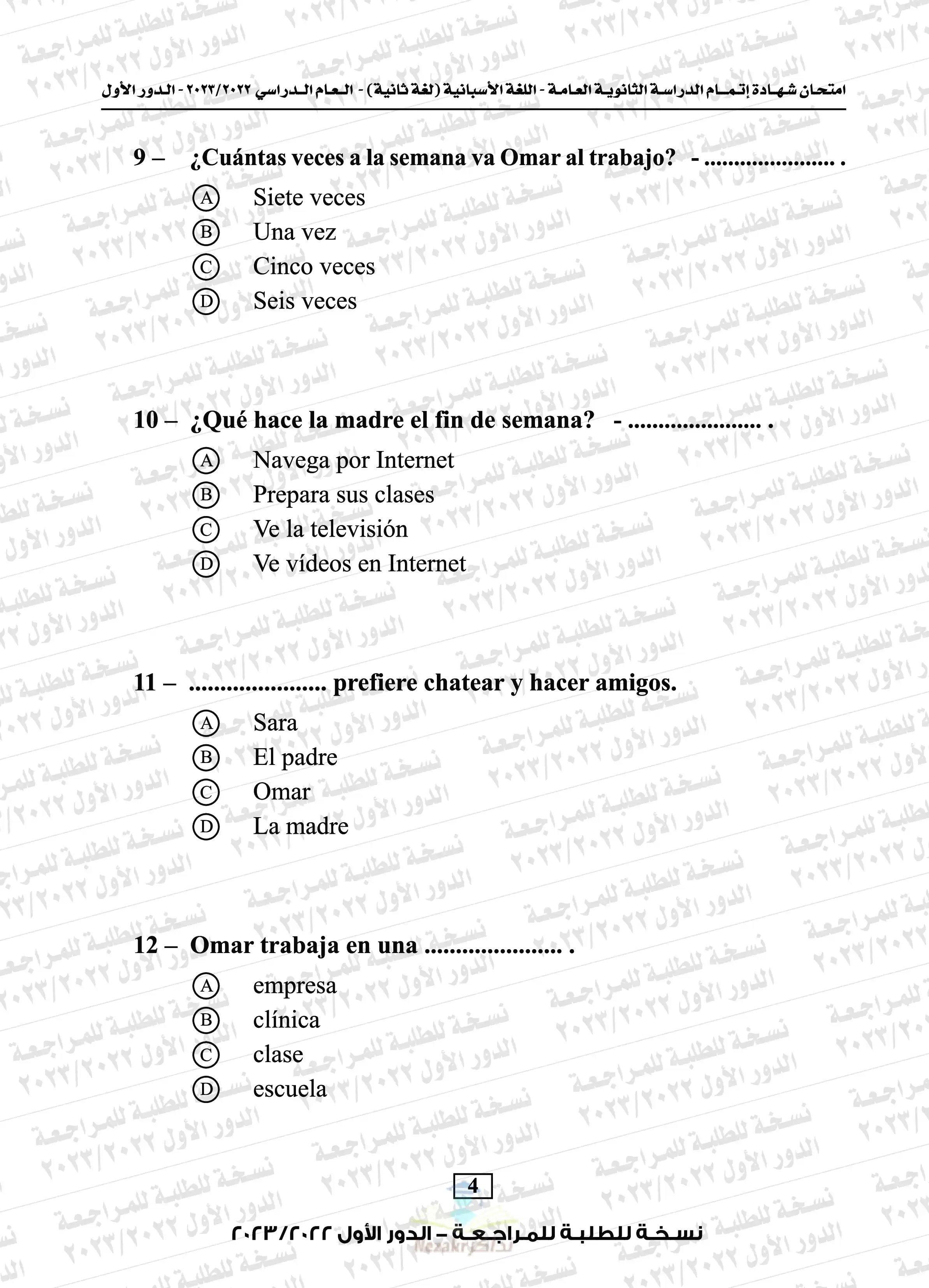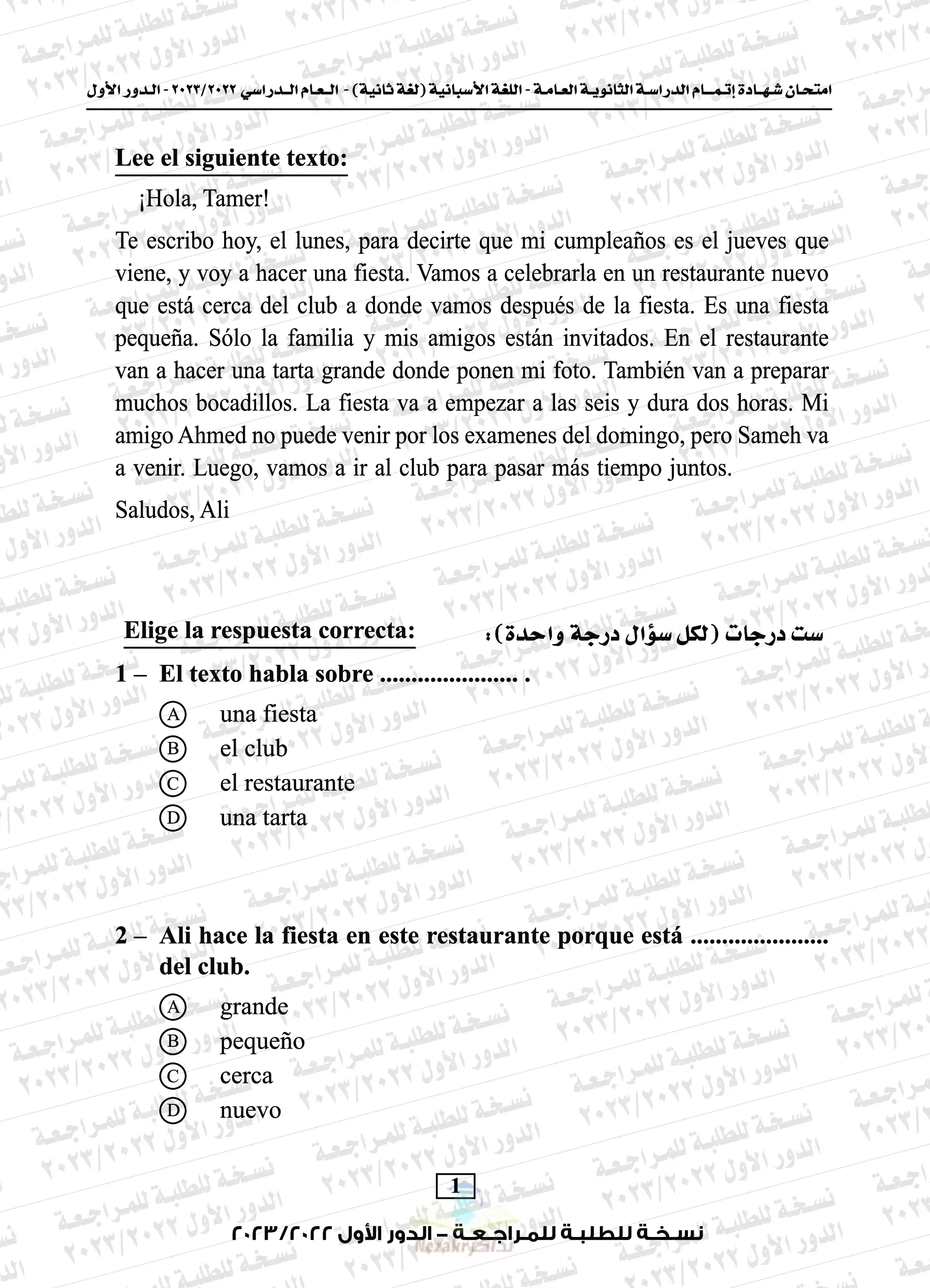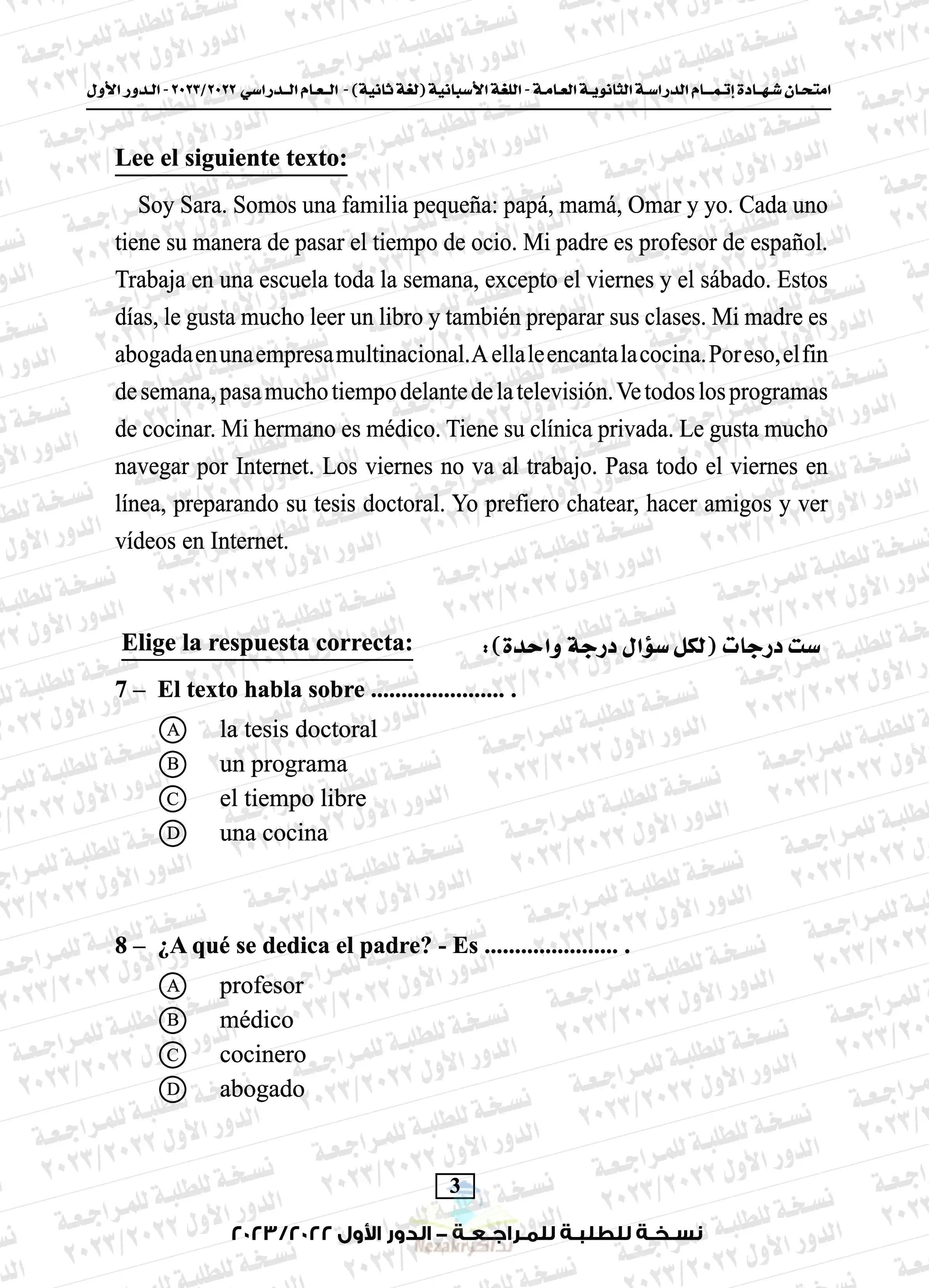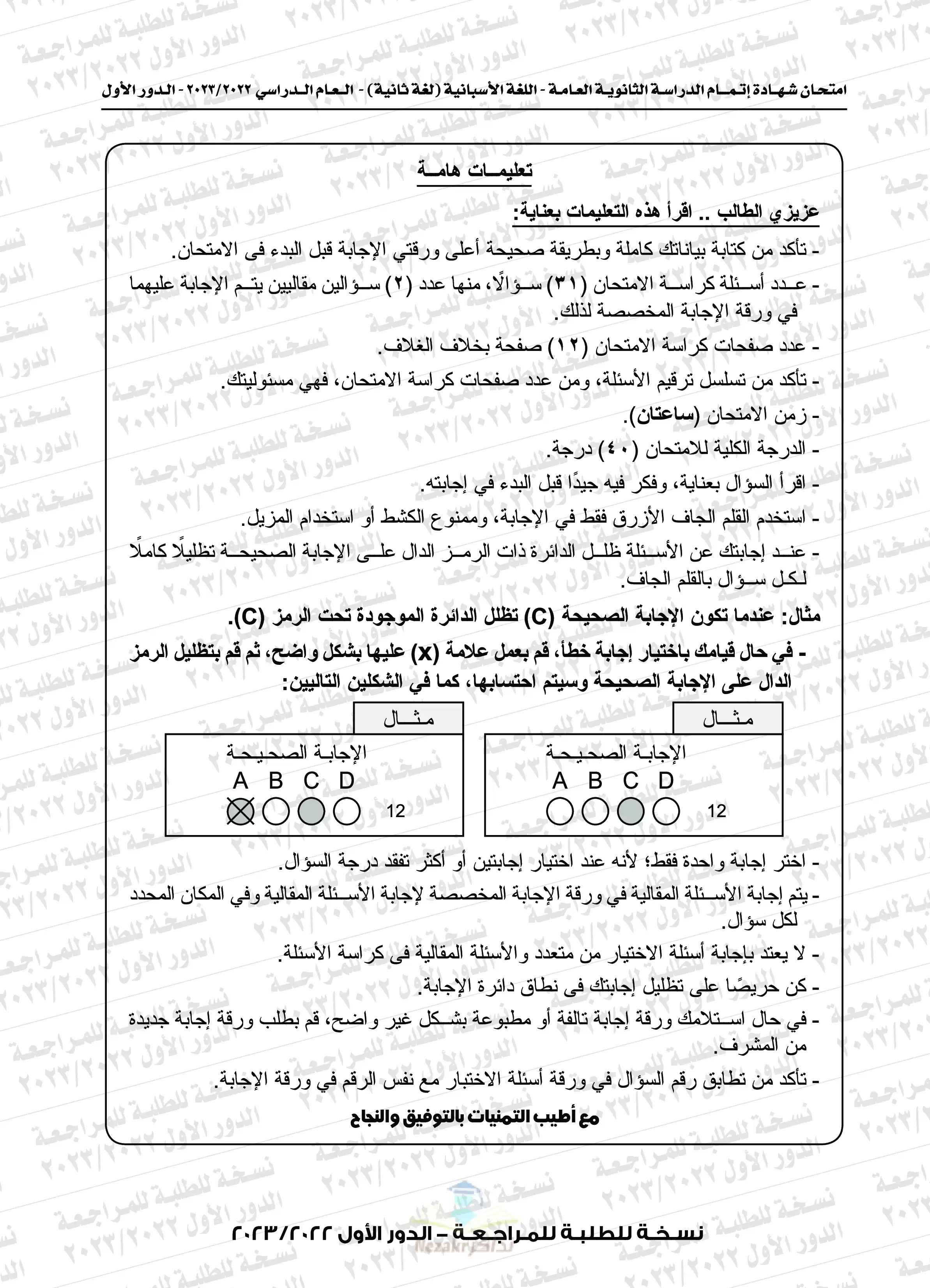 | بيانات الملف: (امتحان اللغة الإسبانية للصف الثالث الثانوي 2023 الدور الأول مع نموذج الإجابة الرسمي - Nezakr) | |