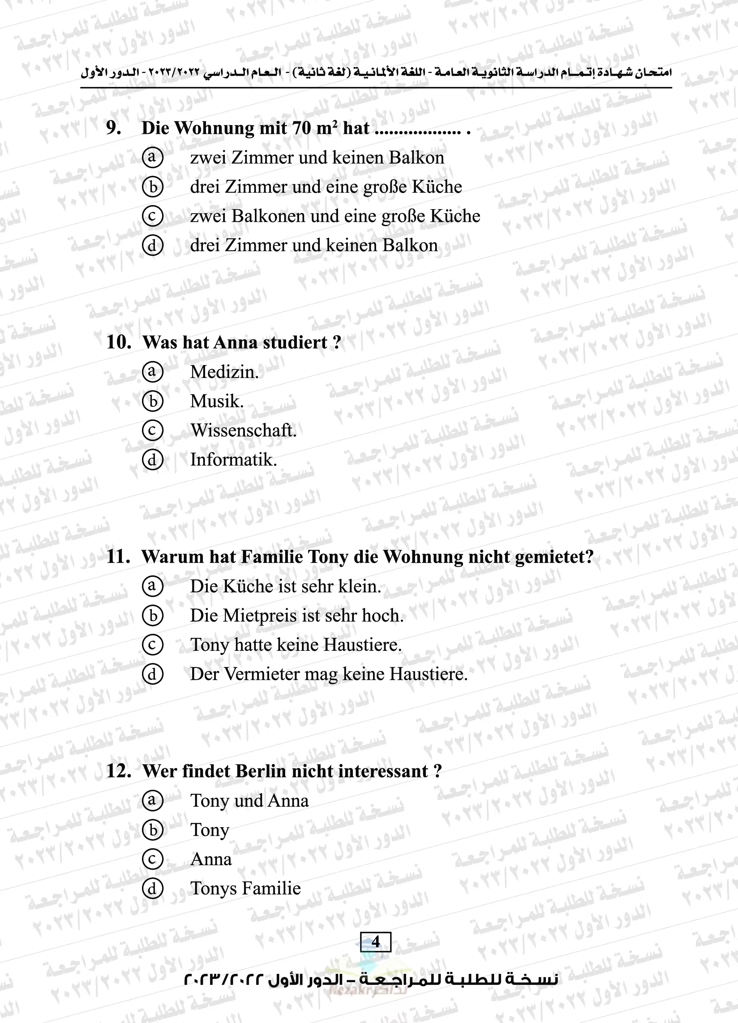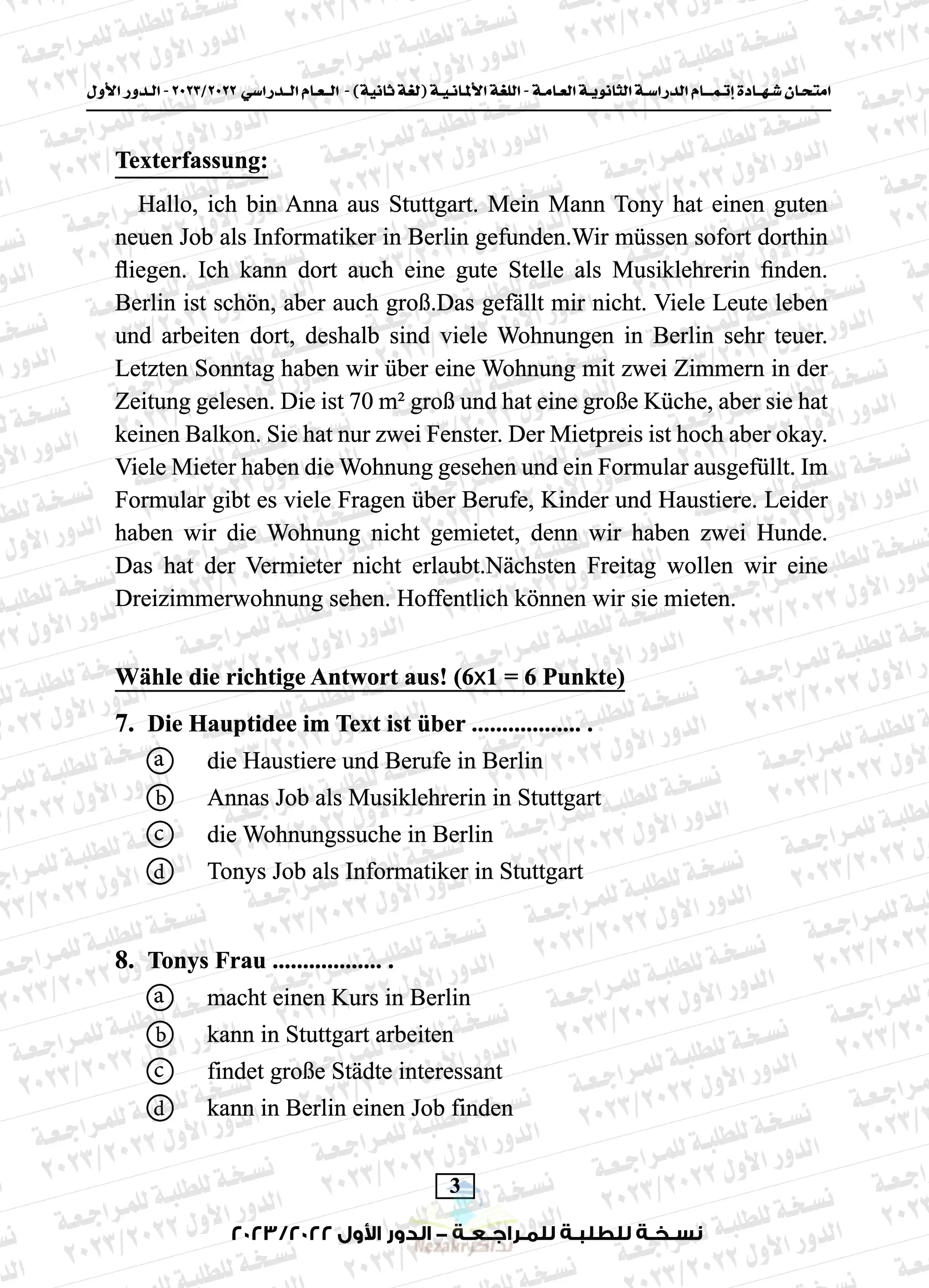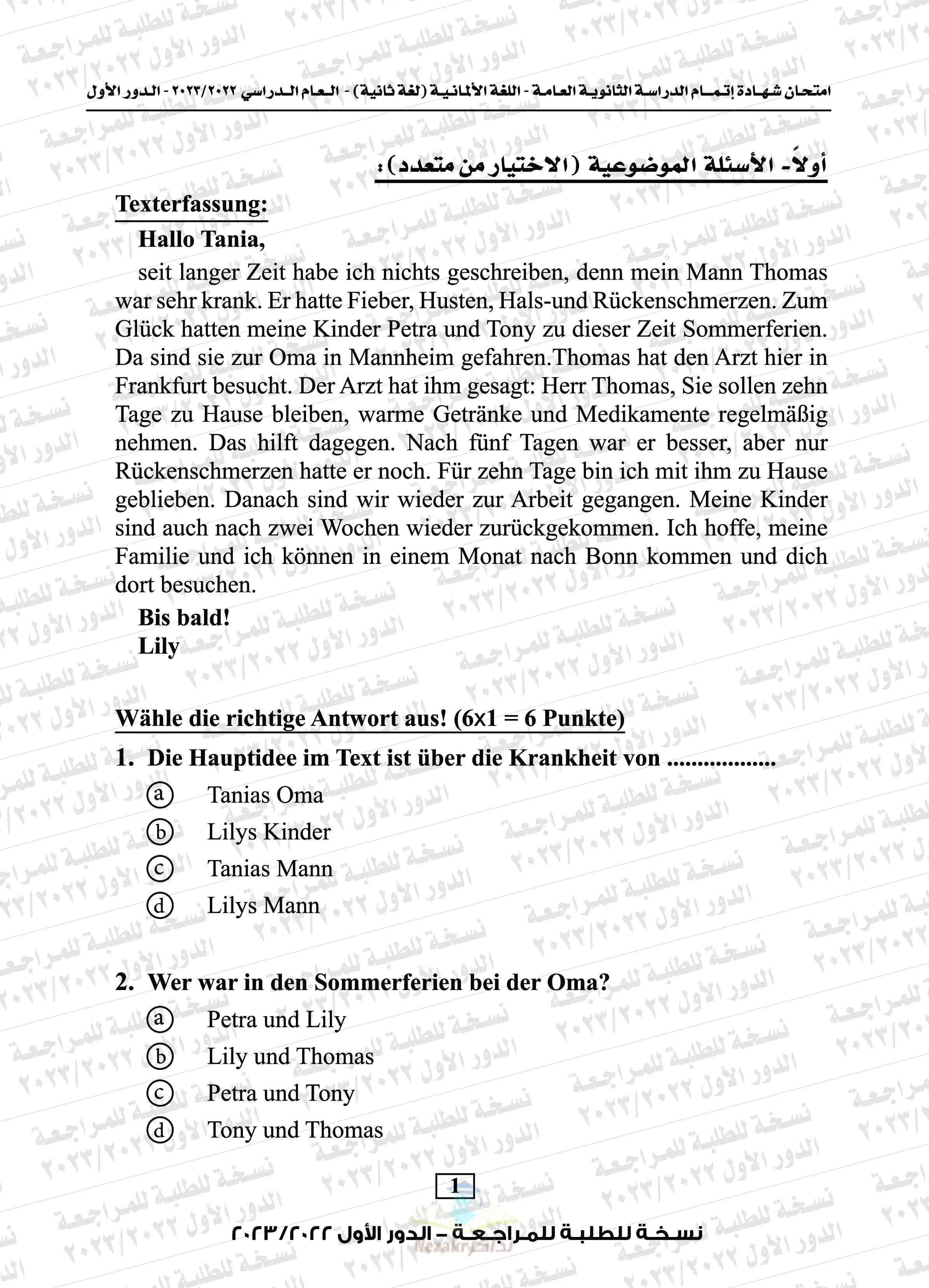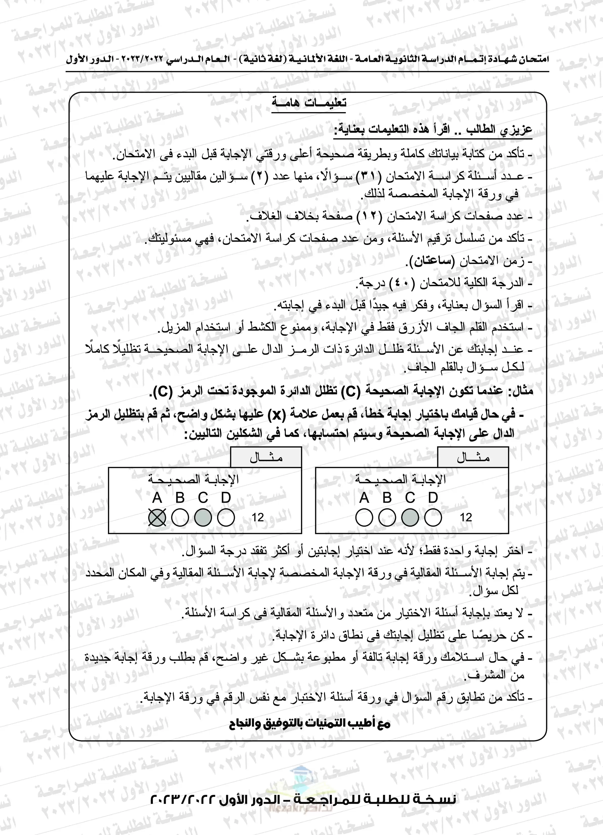 | بيانات الملف: (امتحان اللغة الألمانية للصف الثالث الثانوي 2023 الدور الأول مع نموذج الإجابة الرسمي - Nezakr) | |