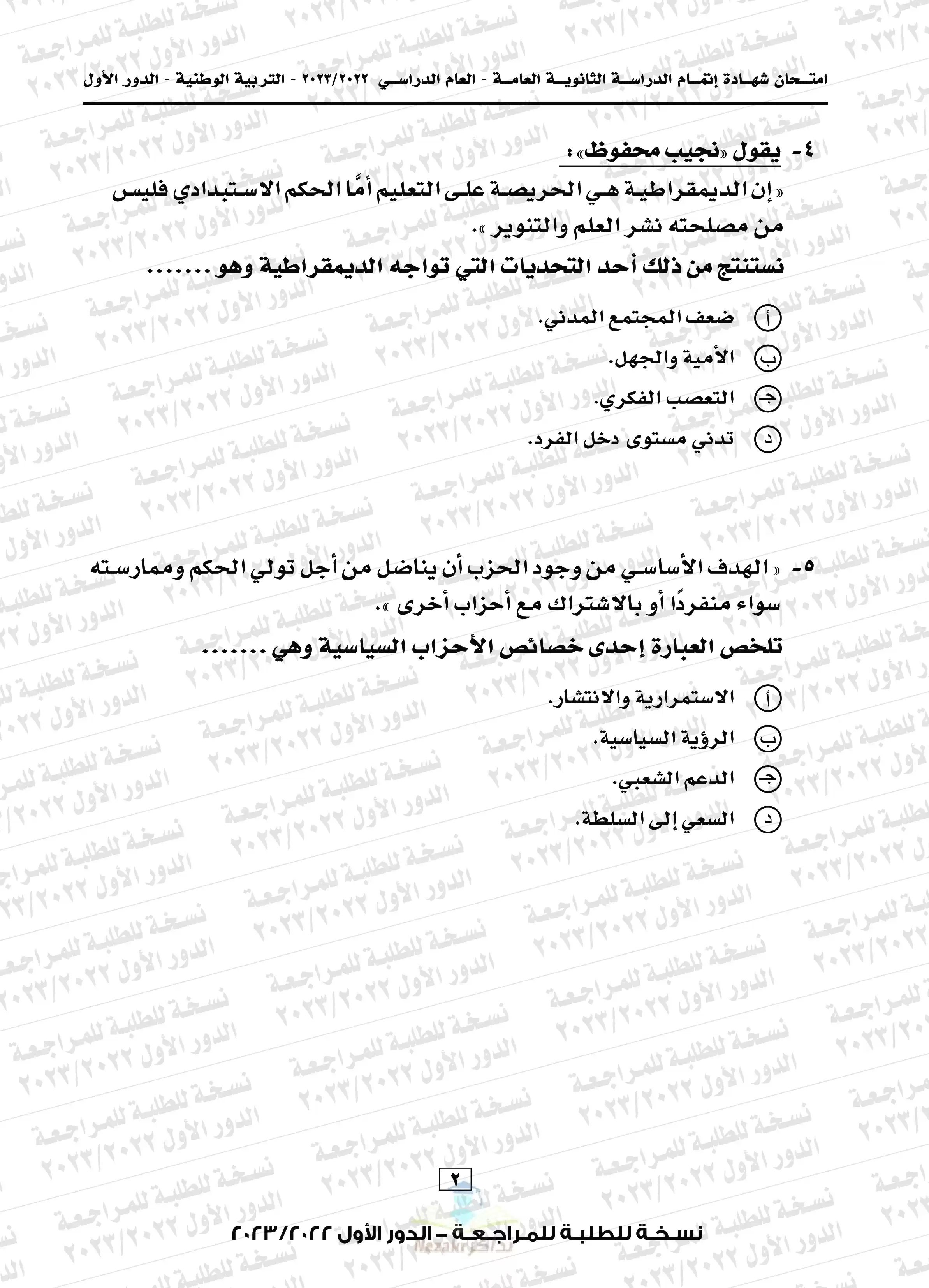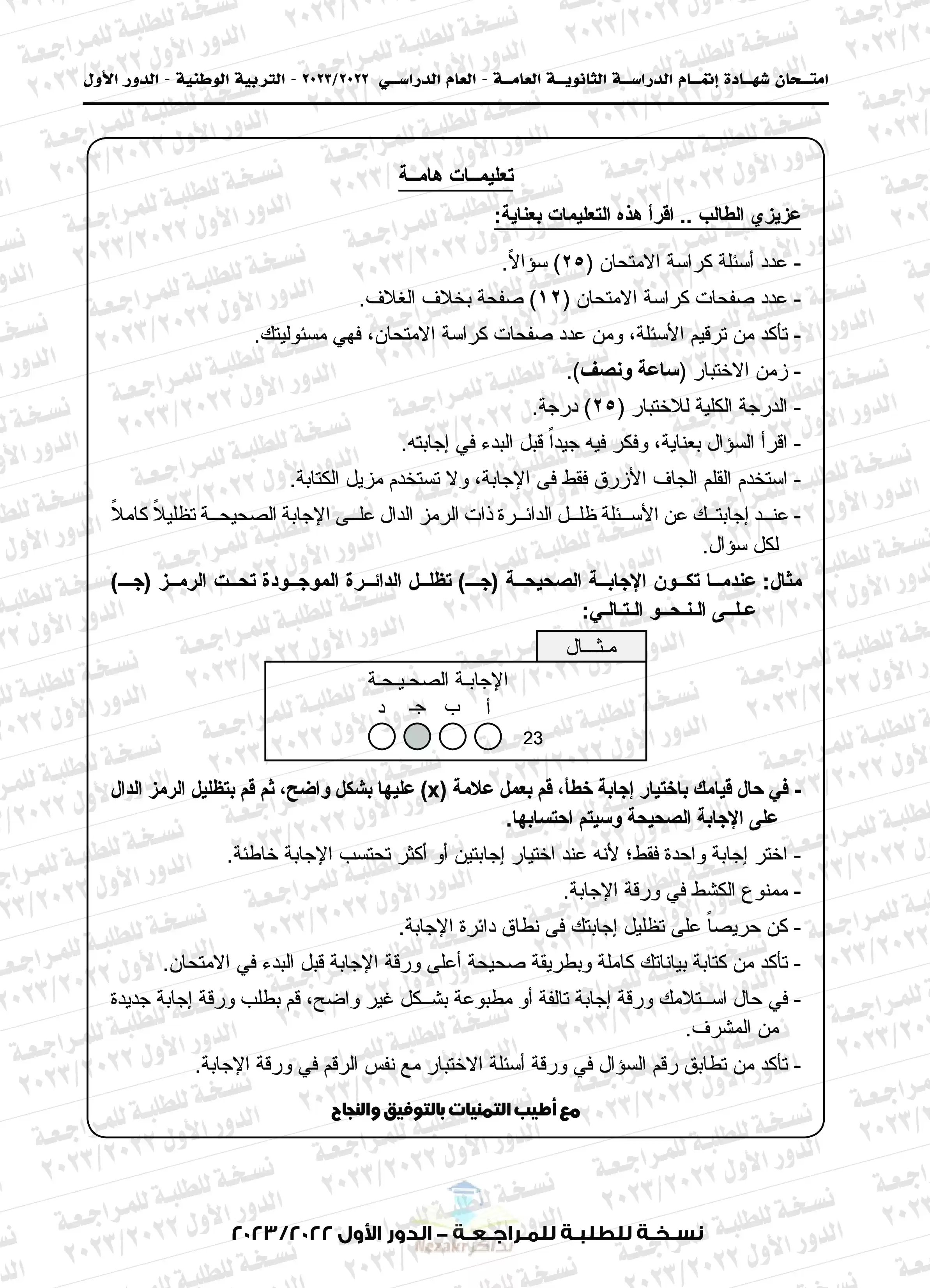 | بيانات الملف: (امتحان التربية الوطنية للثانوية العامة 2023 الدور الأول - Nezakr) | |
