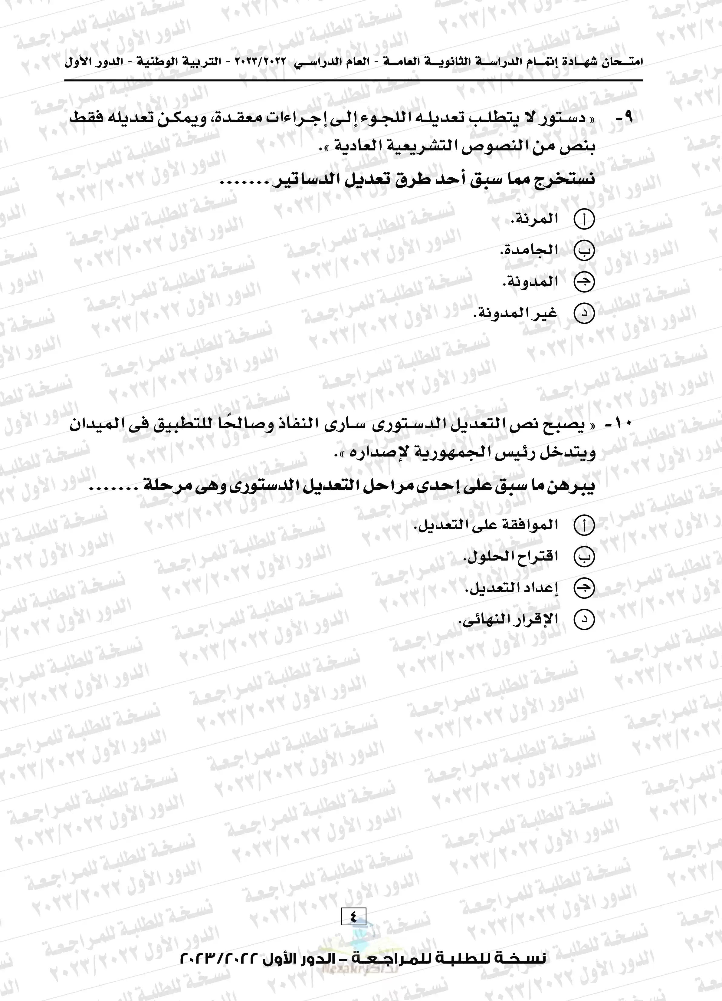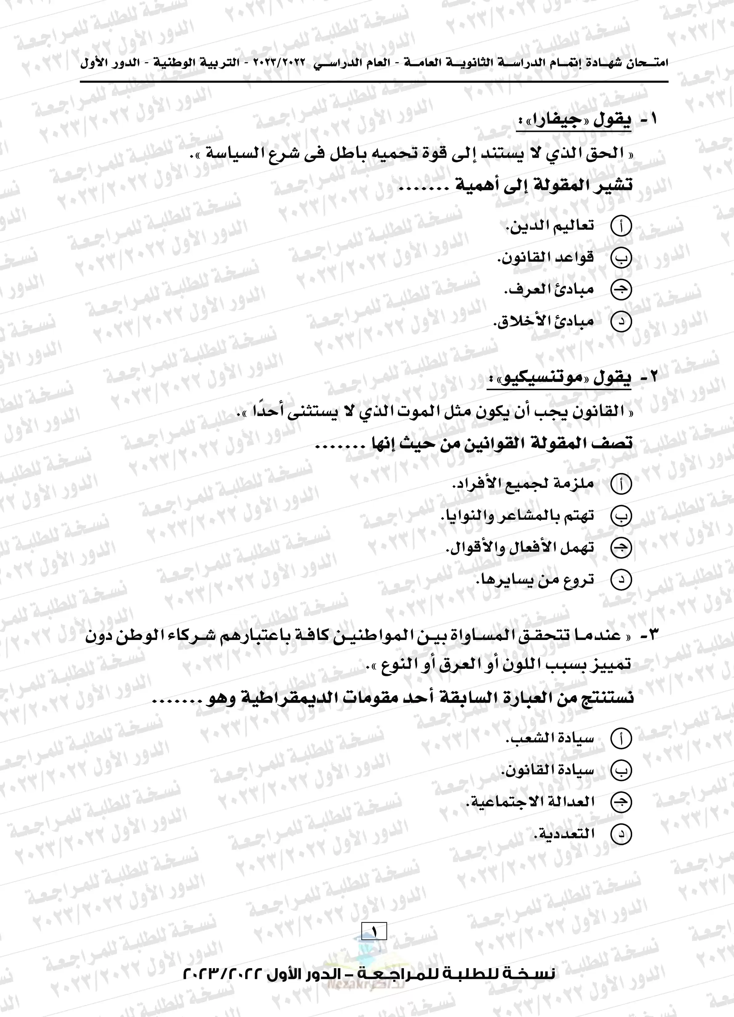 يتضمن المقال امتحان التربية الوطنية بالشهادة الثانوية العامة المصرية للدور الأول للعام الدراسي 2022-2023م، نضعه بين أيديكم بصيغة PDF وبجودة عالية ومميزة للتحميل مجاناً أو للتصفح أو الطباعة.