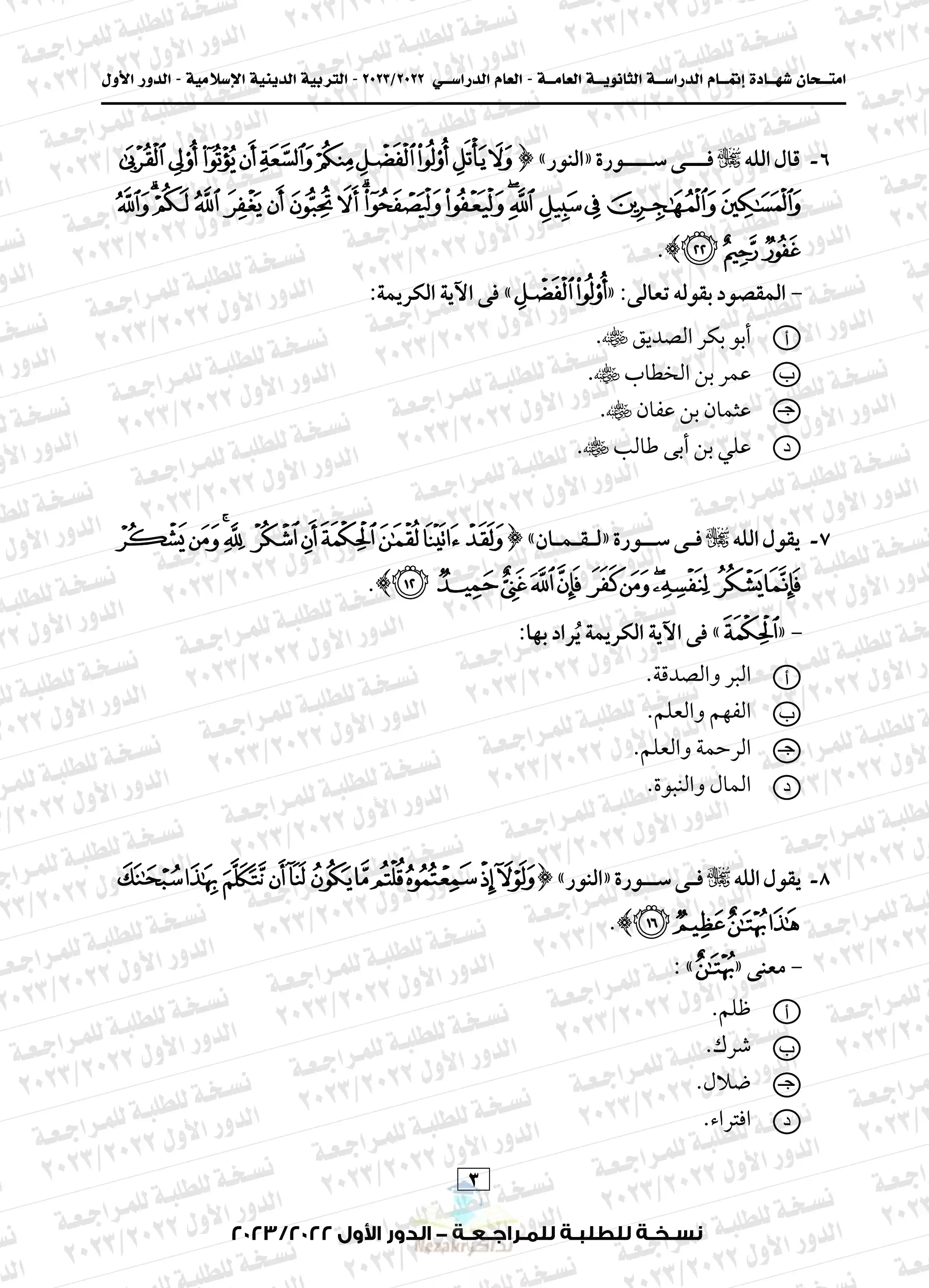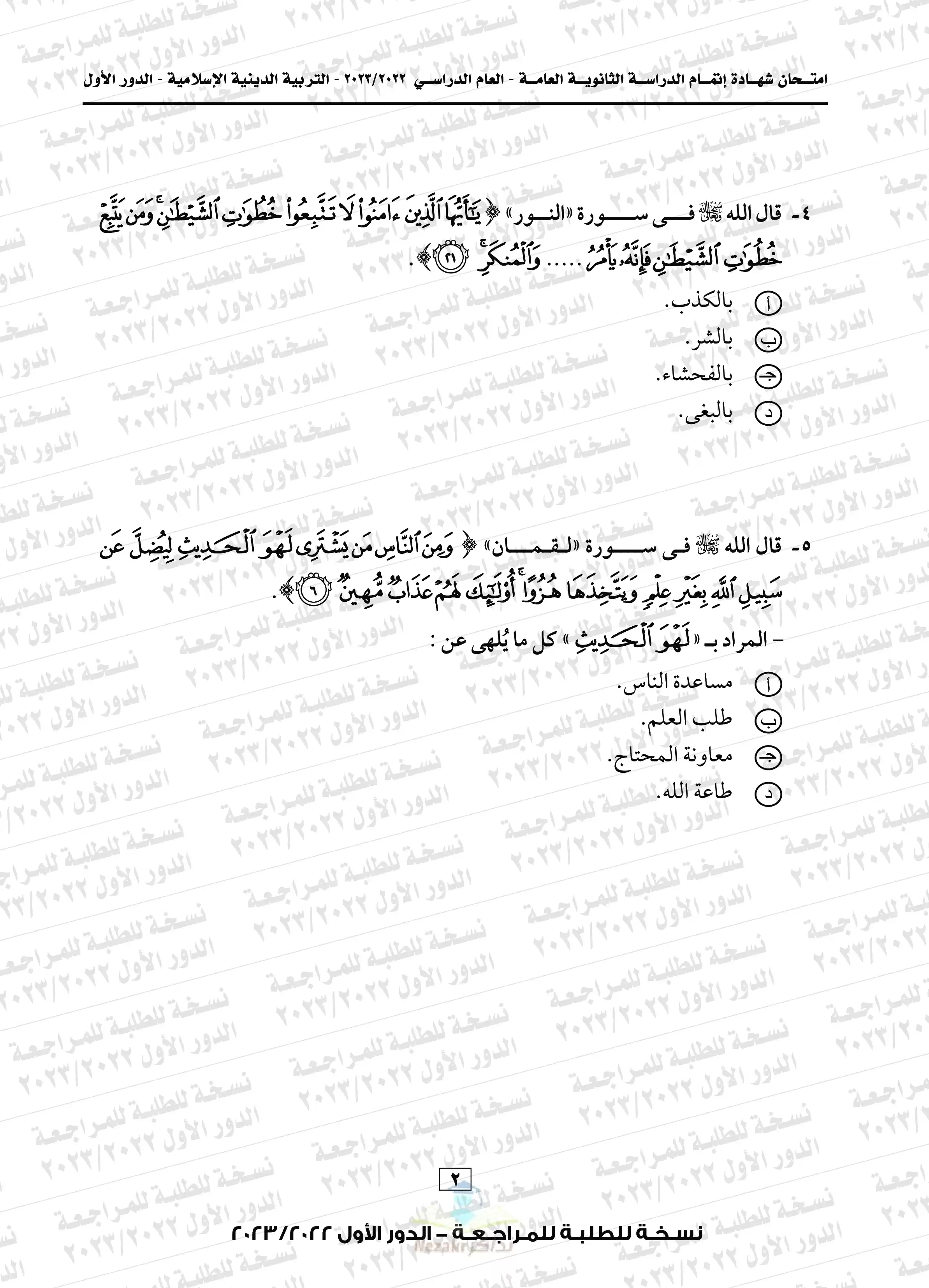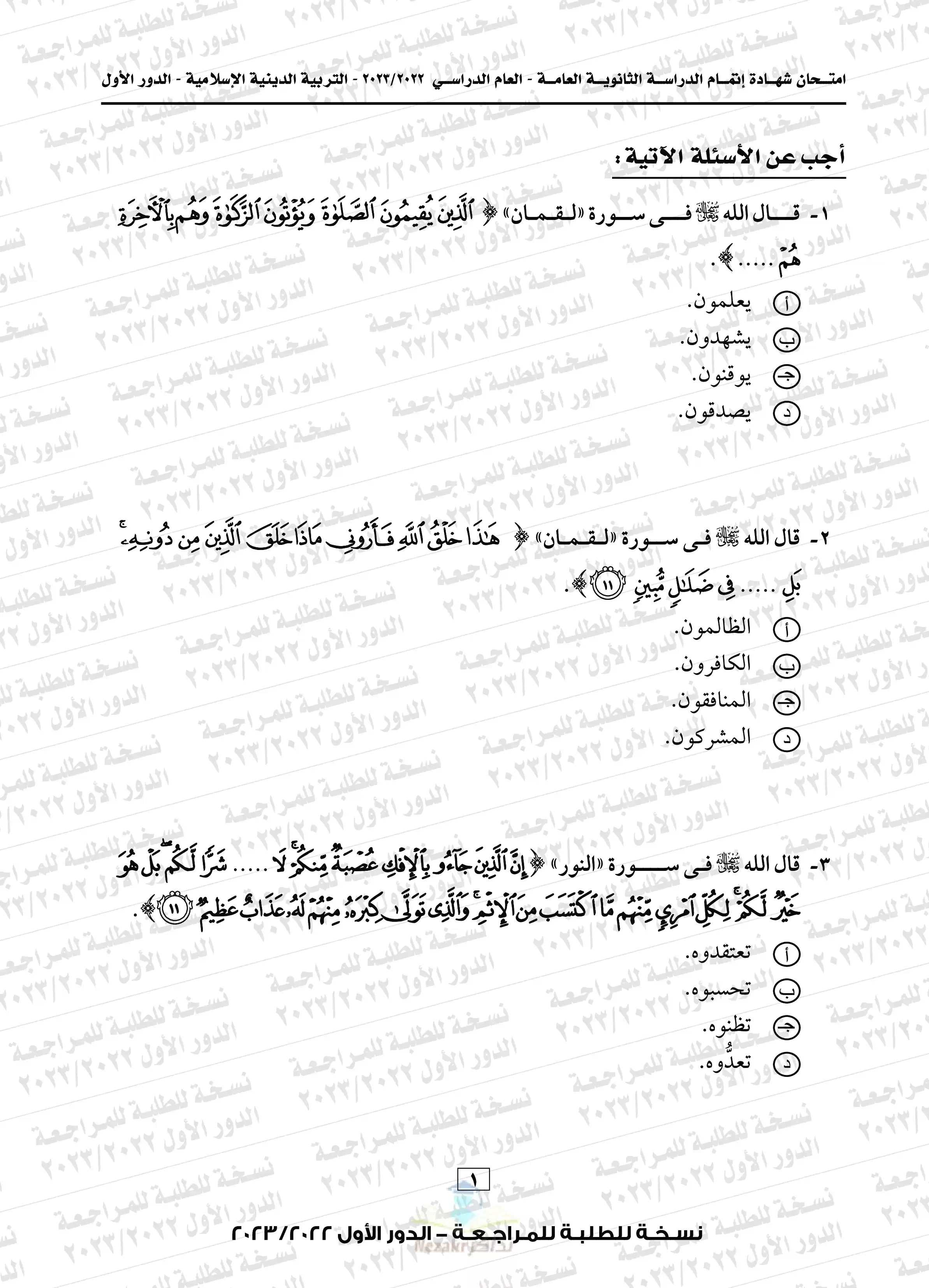 | بيانات الملف: (امتحان التربية الدينية الاسلامية للثانوية العامة 2023 الدور الأول - Nezakr) | |