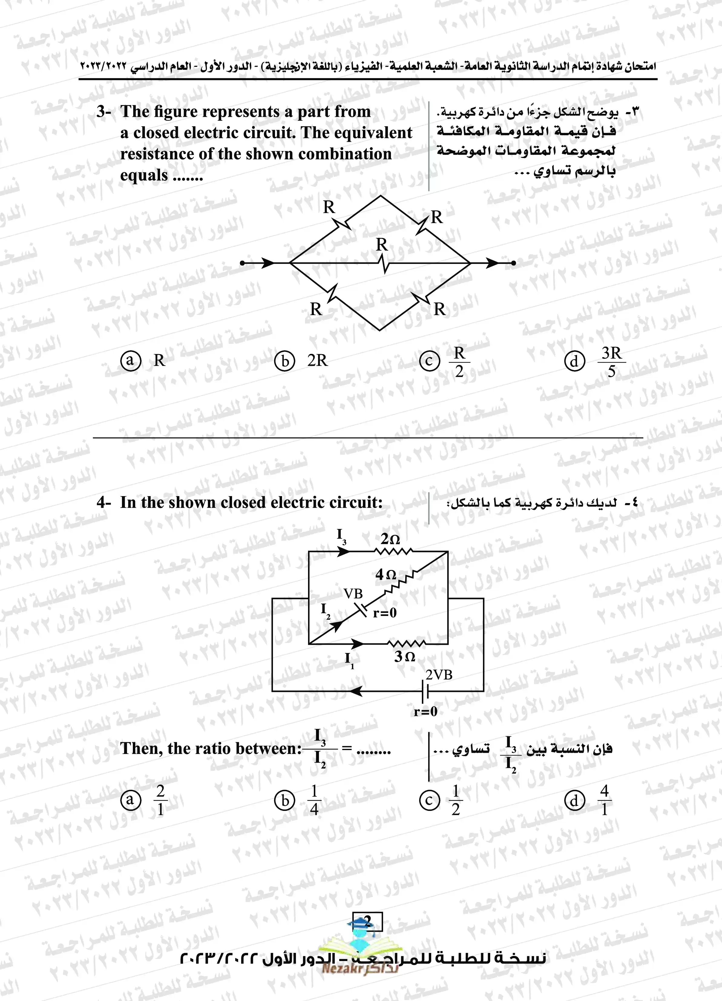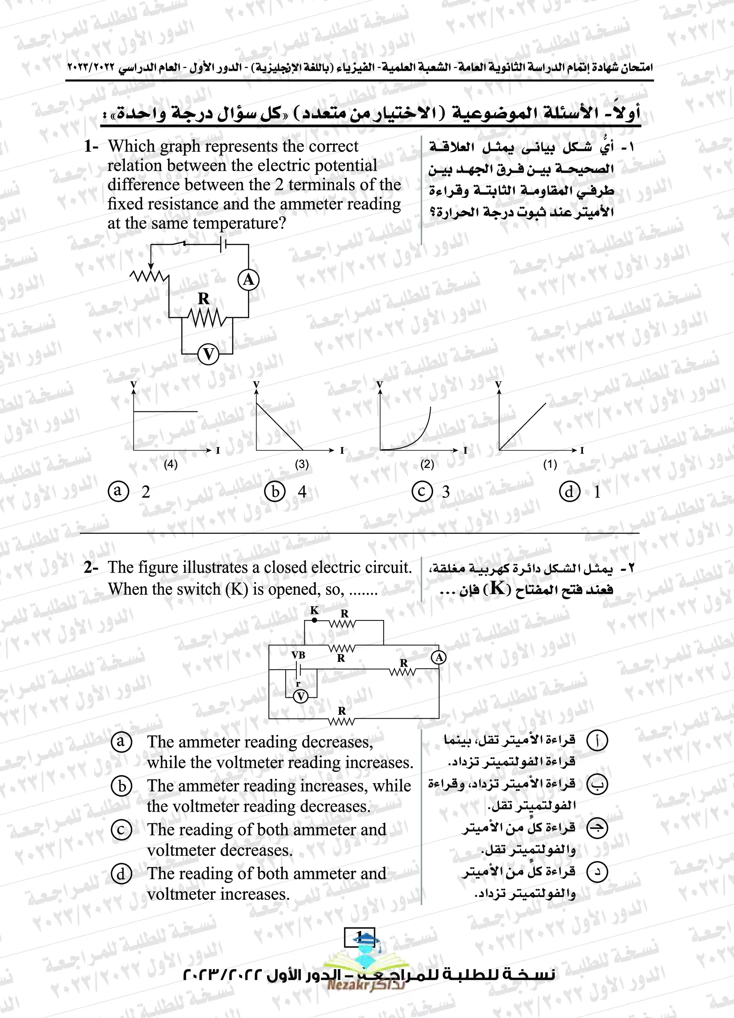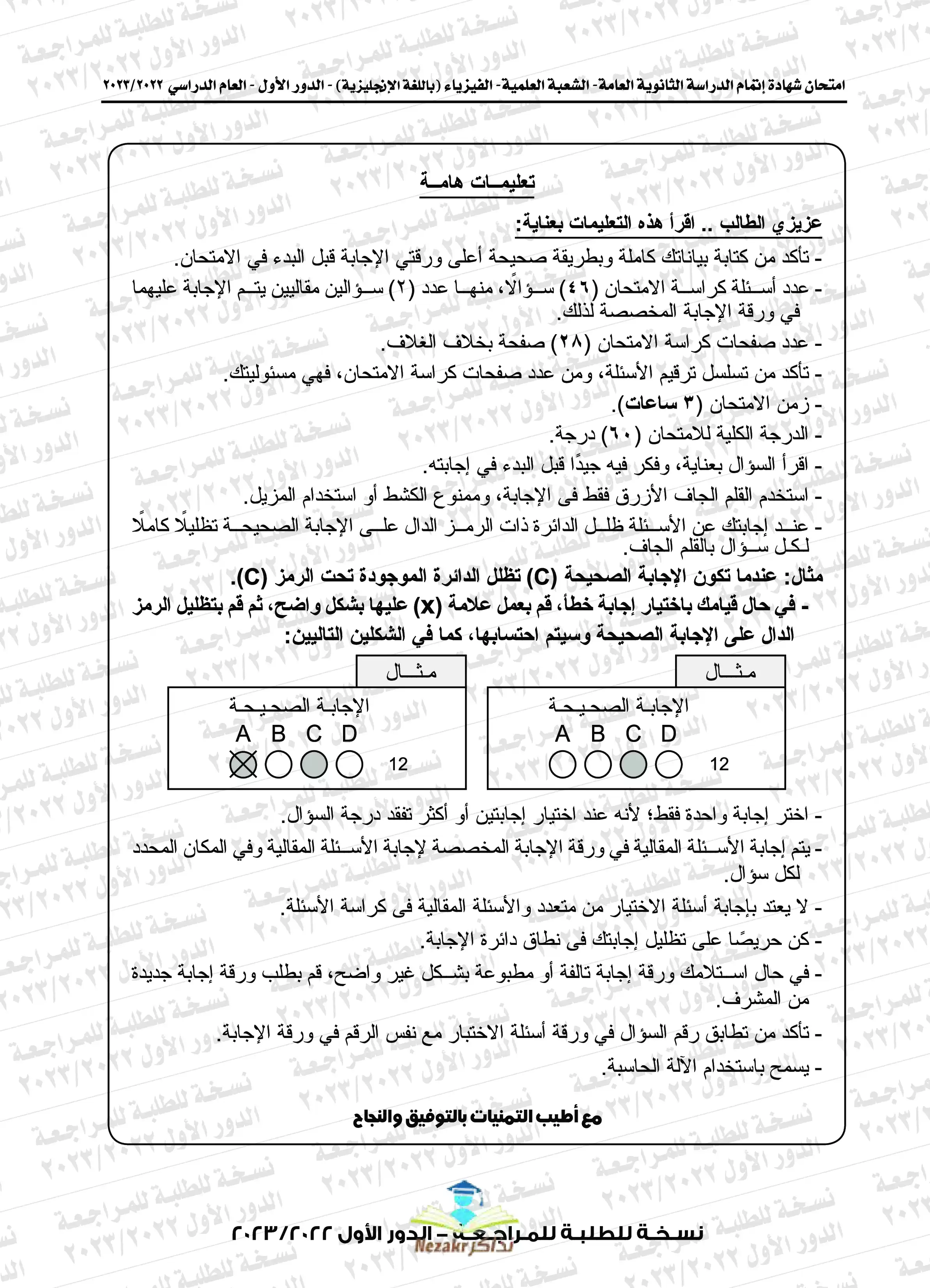 | بيانات الملف: (امتحان الفيزياء باللغة الإنجليزية Physics للثانوية العامة الدور الأول 2023 مع نموذج الإجابة الرسمي - Nezakr) | |