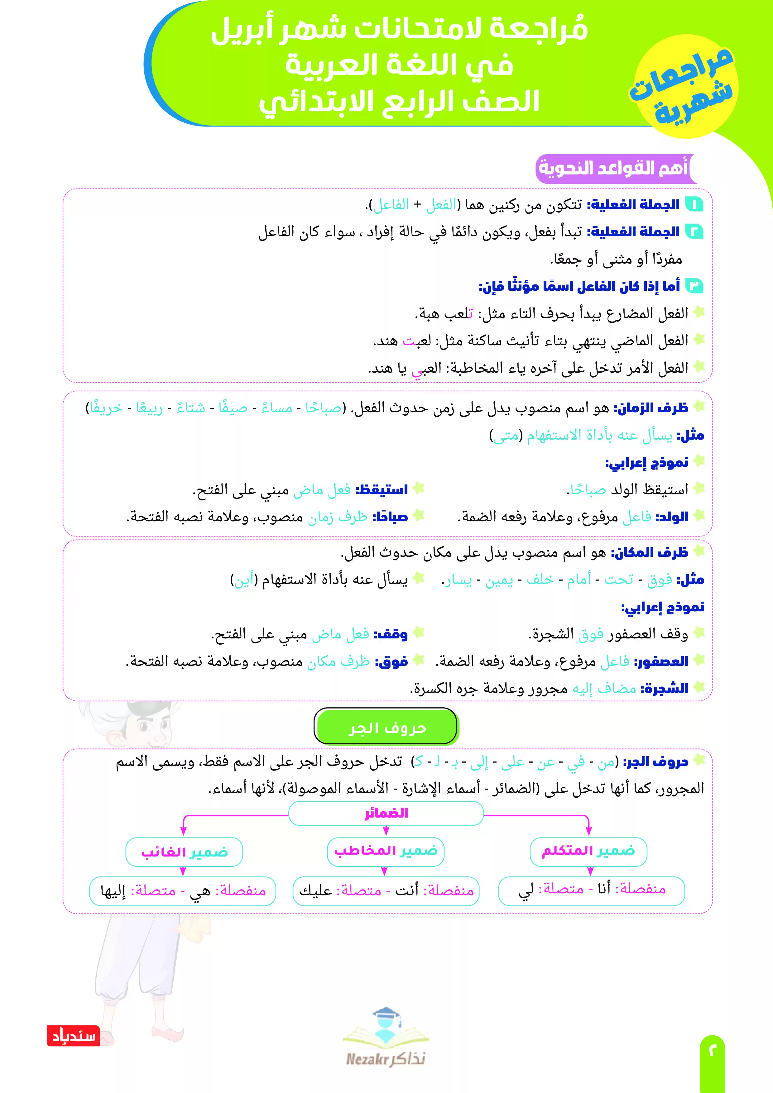 صفحة 2 من 33 صفحة من ملف: مراجعة لغة عربية من كتاب السندباد للصف الرابع الابتدائي على مقرر شهر ابريل 2025 - Nezakr
