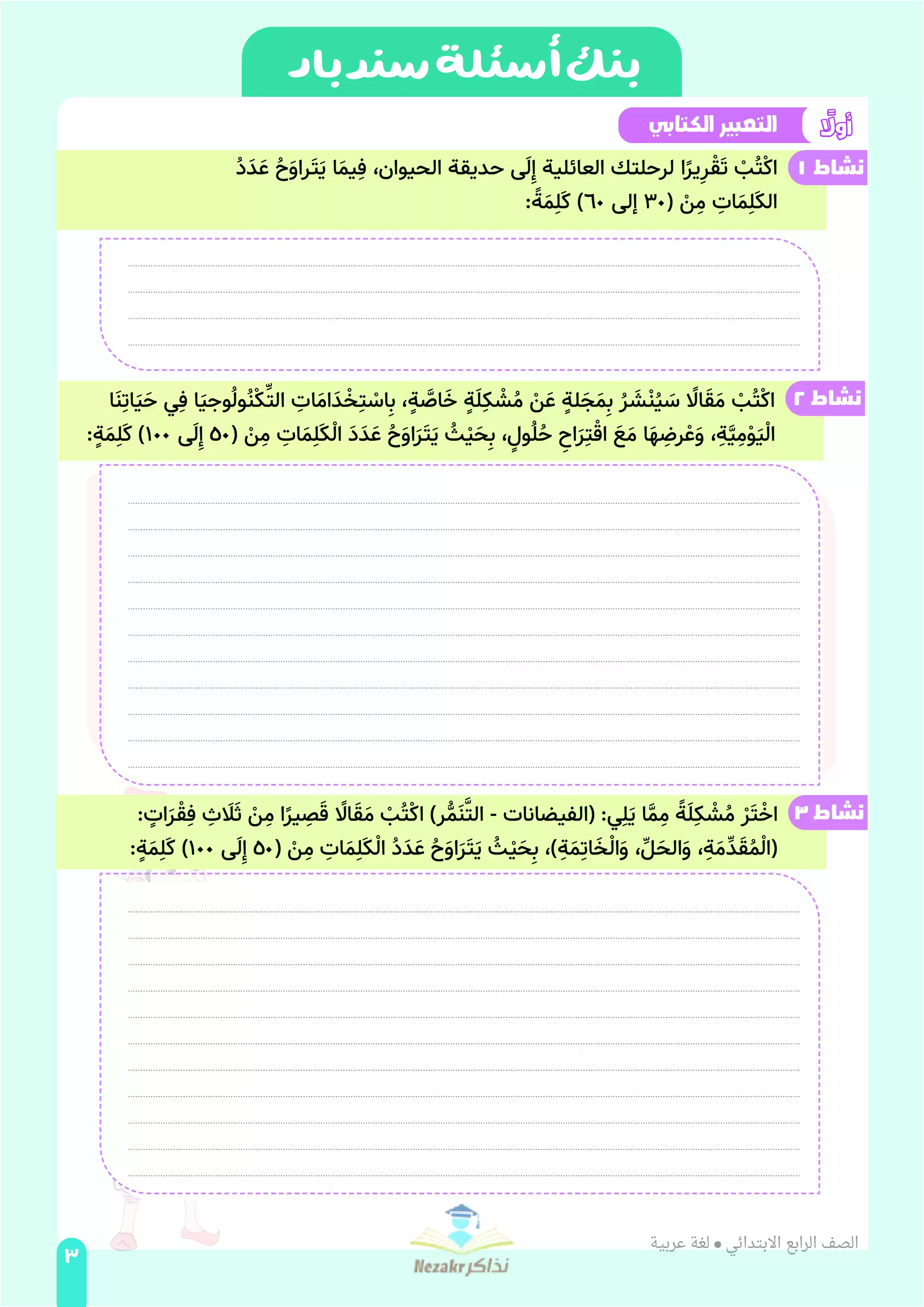صفحة 3 من 33 صفحة من ملف: مراجعة لغة عربية من كتاب السندباد للصف الرابع الابتدائي على مقرر شهر ابريل 2025 - Nezakr