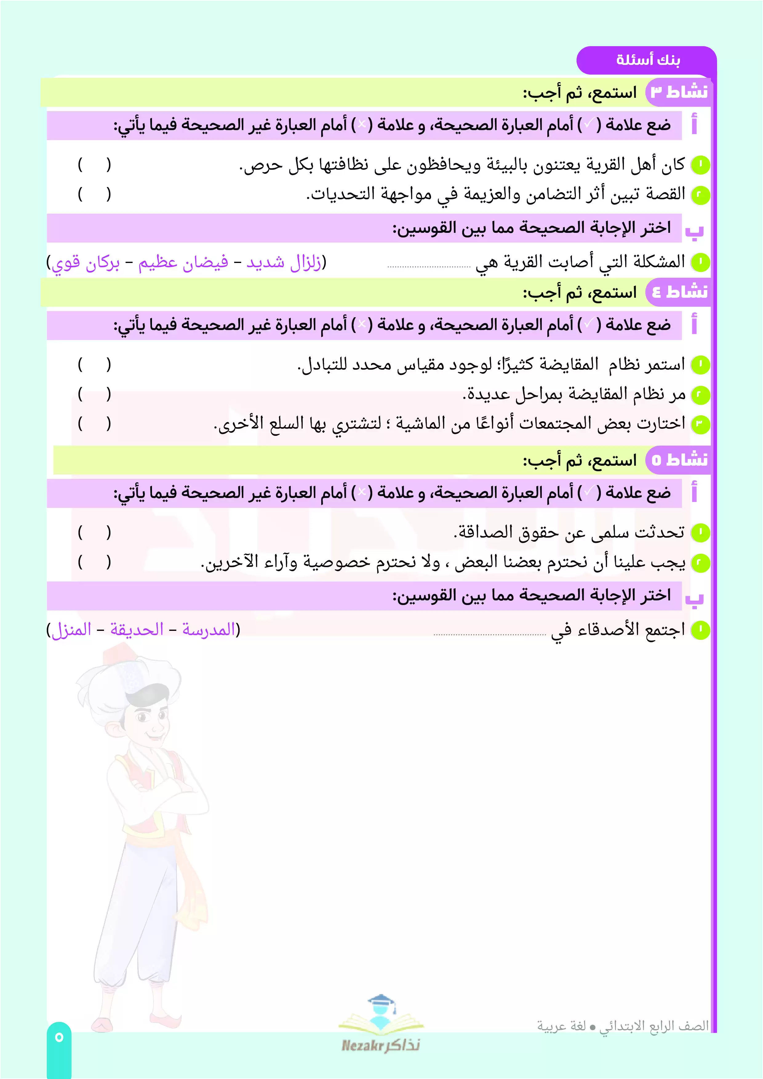 صفحة 5 من 33 صفحة من ملف: مراجعة لغة عربية من كتاب السندباد للصف الرابع الابتدائي على مقرر شهر ابريل 2025 - Nezakr
