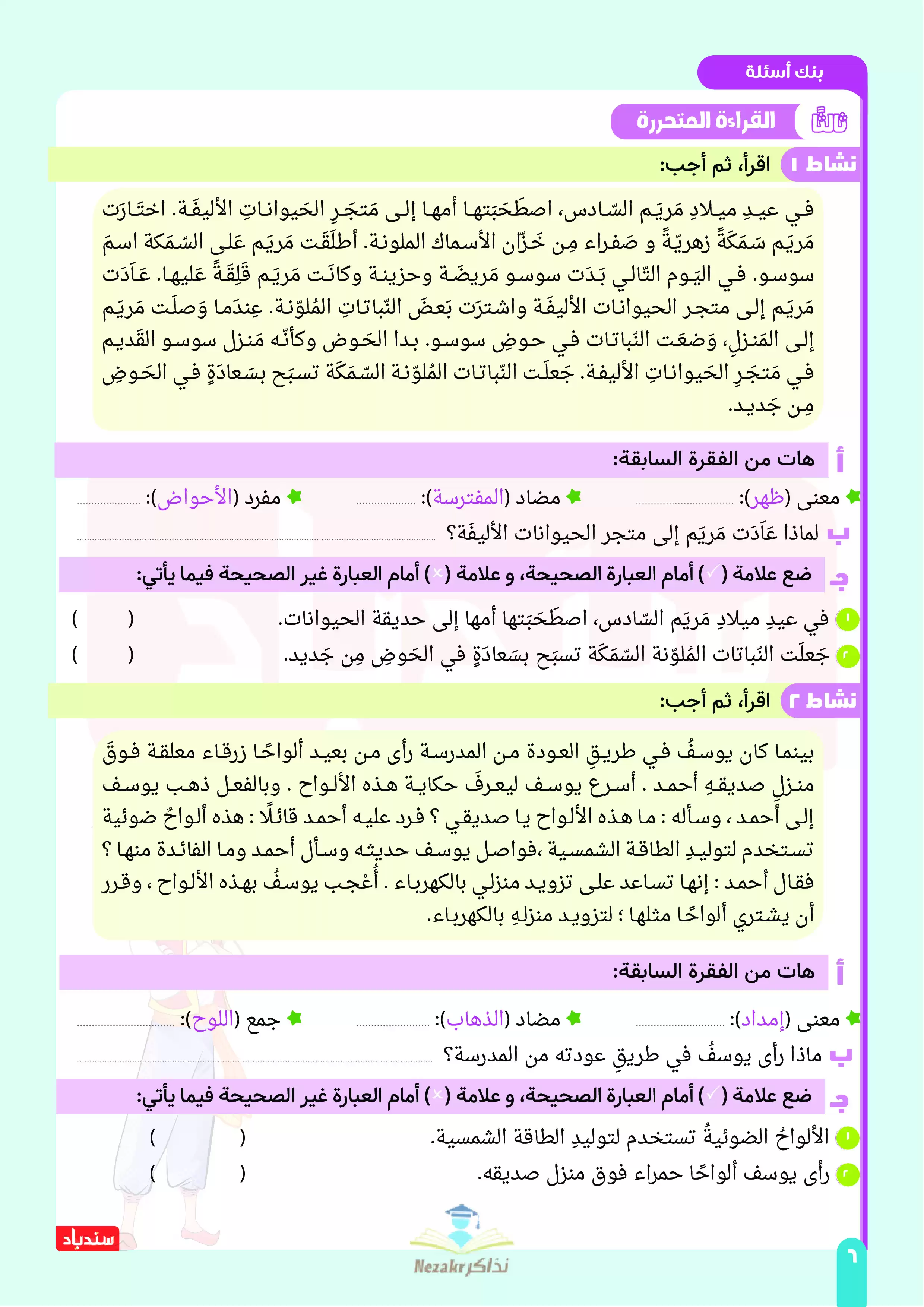 صفحة 6 من 33 صفحة من ملف: مراجعة لغة عربية من كتاب السندباد للصف الرابع الابتدائي على مقرر شهر ابريل 2025 - Nezakr