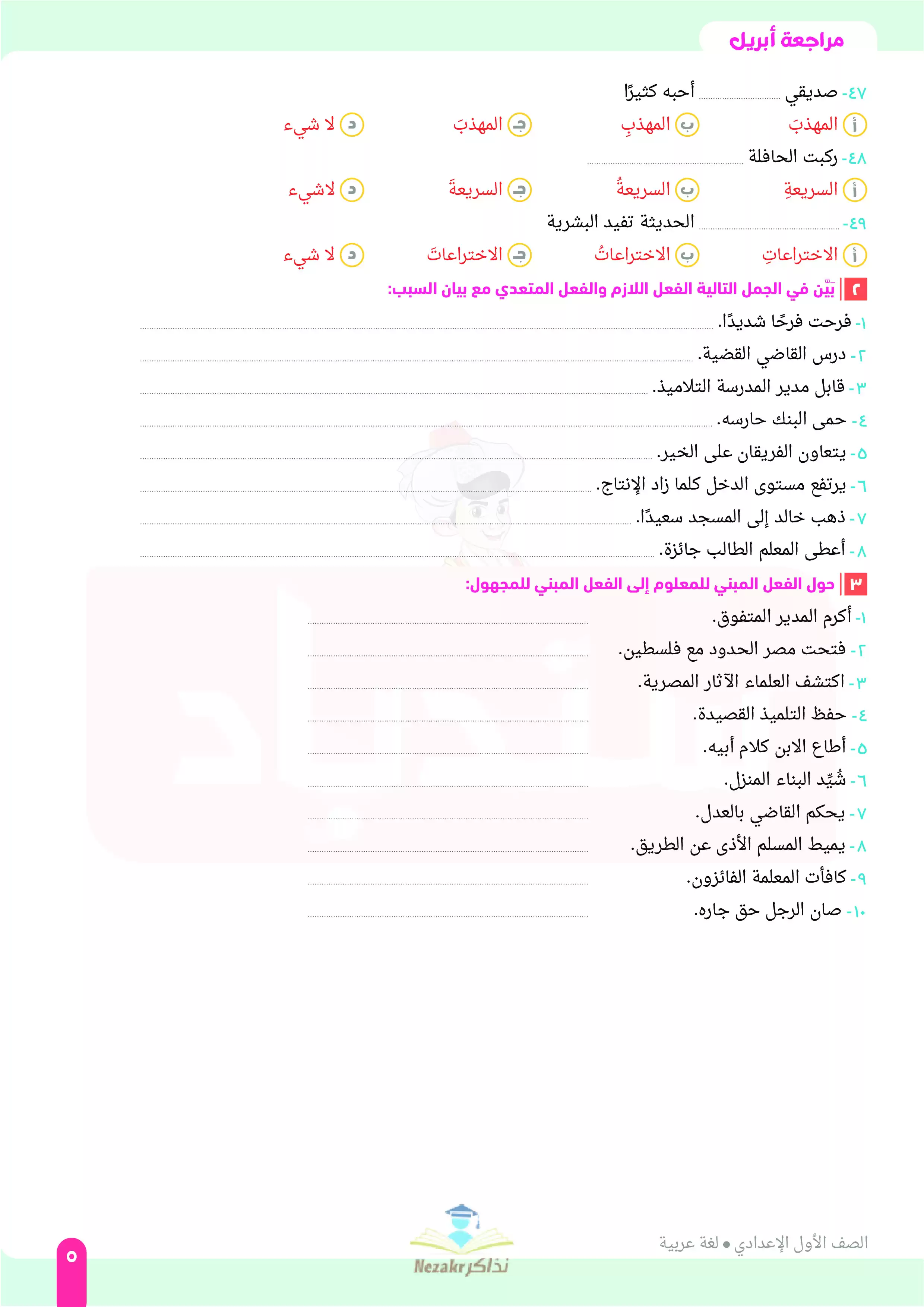 | بيانات الملف: (مراجعة لغة عربية من كتاب السندباد للصف الأول الإعدادي على مقرر شهر ابريل 2025 - Nezakr) | |