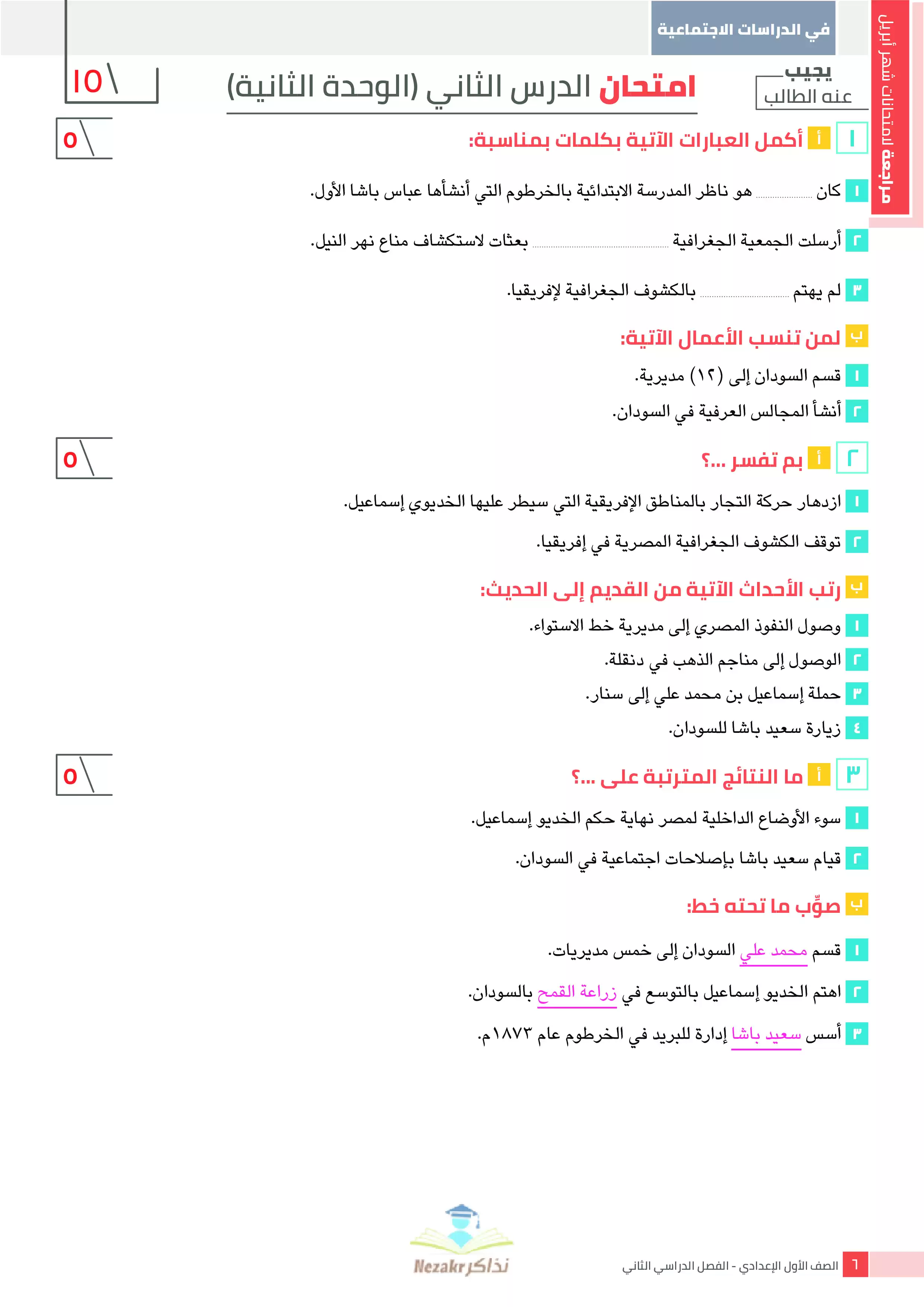 | بيانات الملف: (مراجعة دراسات اجتماعية من كتاب السندباد للصف الأول الإعدادي على مقرر شهري مارس وابريل 2025 - Nezakr) | |