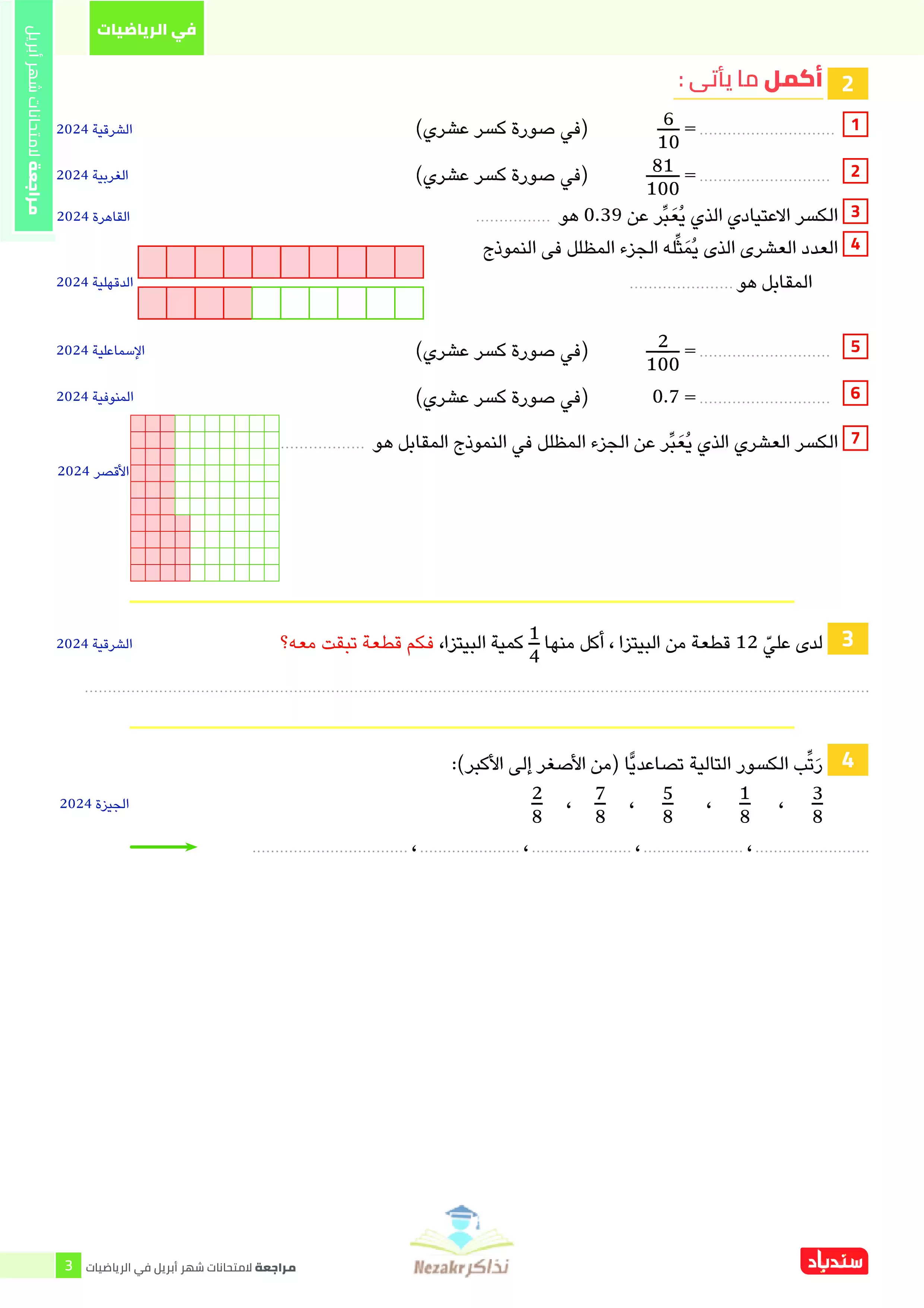 صفحة 3 من 38 صفحة من ملف: مراجعة الرياضيات من كتاب السندباد للصف الرابع الابتدائي على مقرر شهر ابريل 2025 - Nezakr