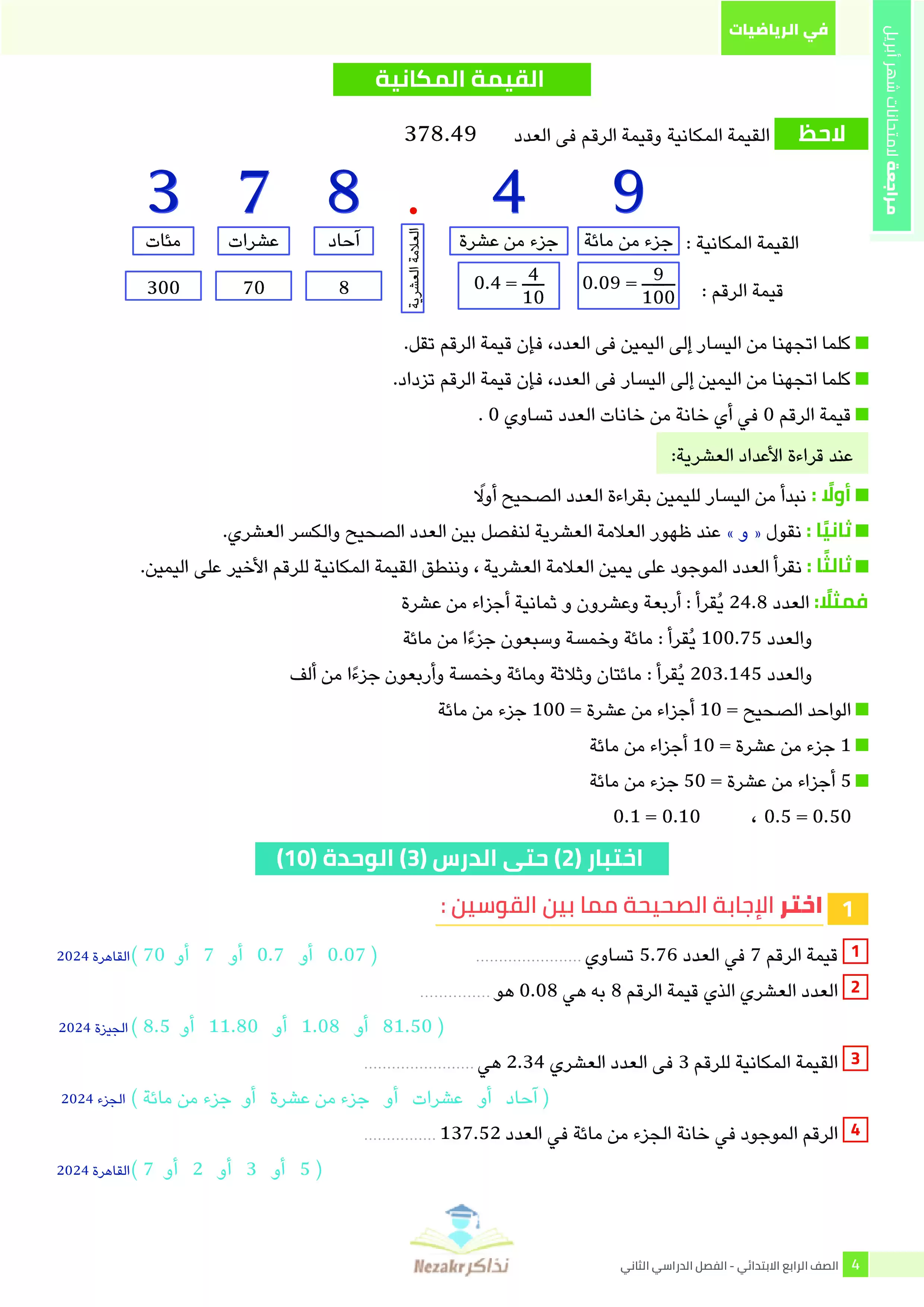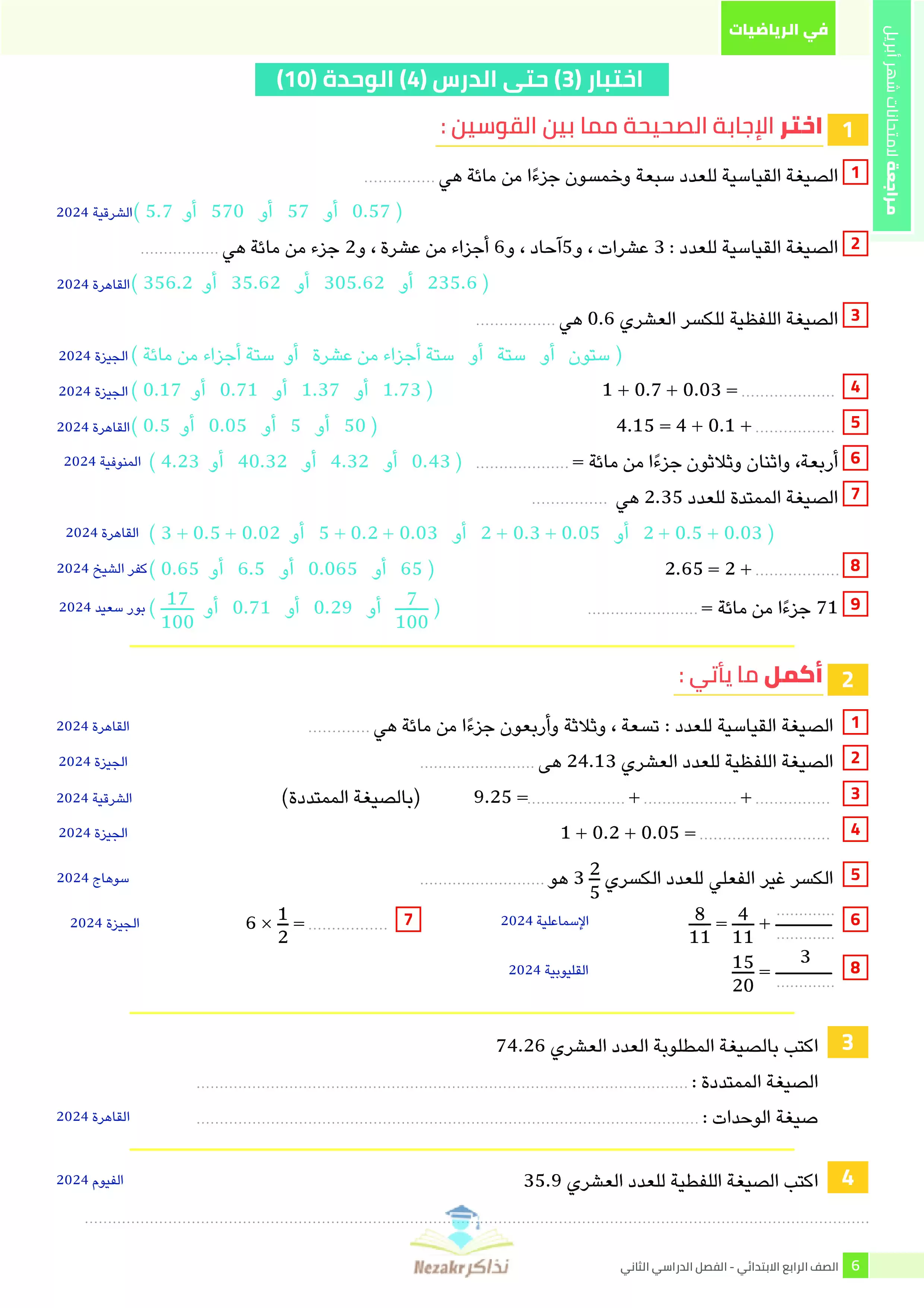 صفحة 4 من 38 صفحة من ملف: مراجعة الرياضيات من كتاب السندباد للصف الرابع الابتدائي على مقرر شهر ابريل 2025 - Nezakr