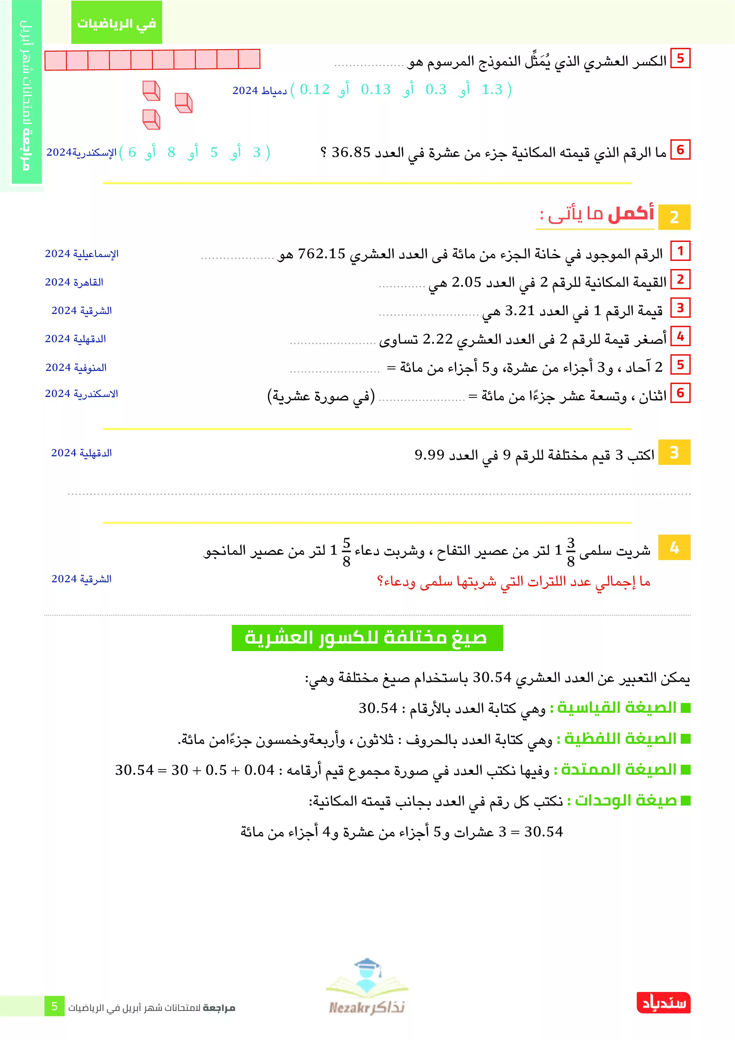 صفحة 5 من 38 صفحة من ملف: مراجعة الرياضيات من كتاب السندباد للصف الرابع الابتدائي على مقرر شهر ابريل 2025 - Nezakr