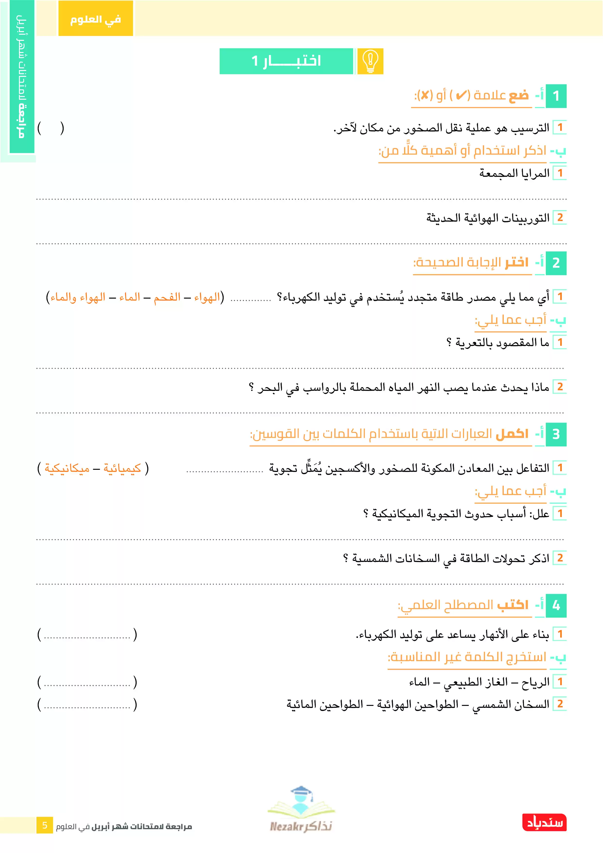 مرحباً بكم أولياء أمور وتلاميذ الصف الرابع الابتدائي، ننشر لكم اليوم مراجعة واختبارات شهر أبريل في العلوم للصف الرابع الابتدائي من كتاب السندباد، وهي تتميز بأنها مراجعة مميزة تأتي إليكم في إطار جهود كتاب السندباد للتيسير على التلاميذ وأولياء الأمور حيث ينشر مراجعات الشهور للطلاب بشكل مجاني في صورة ملفات يمكن طباعتها والمذاكره منها بكل سهولة، وهي مراجعة معدة بدقة وبجودة عالية وتتضمن: