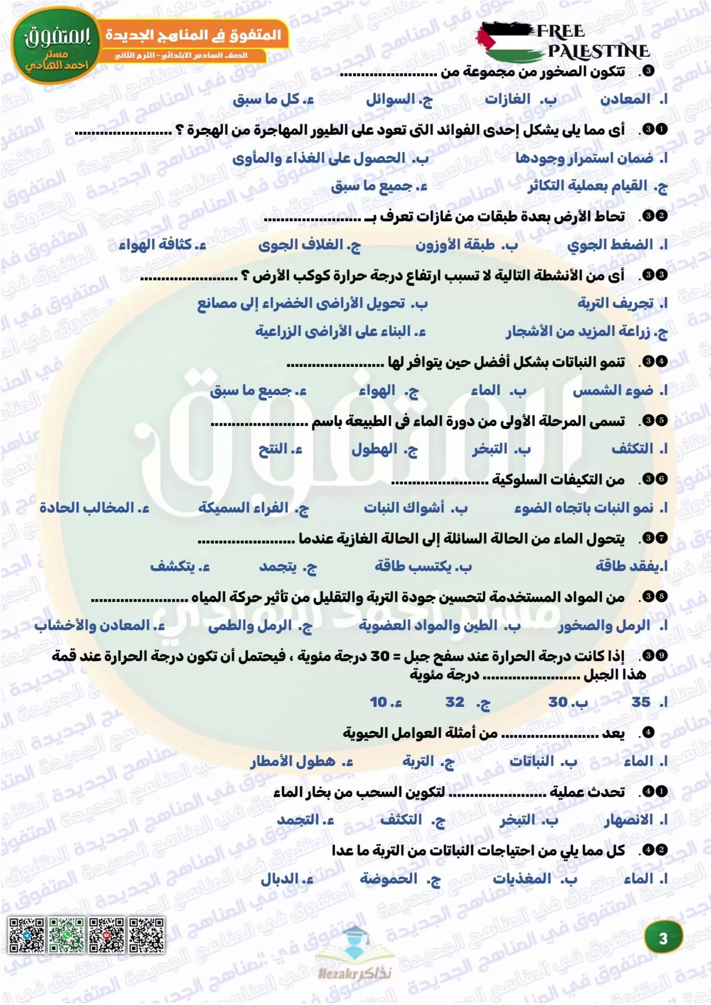 صفحة 3 من 40 صفحة من ملف: مراجعة المتفوق النهائية في العلوم للصف السادس الابتدائي الترم الثاني - Nezakr