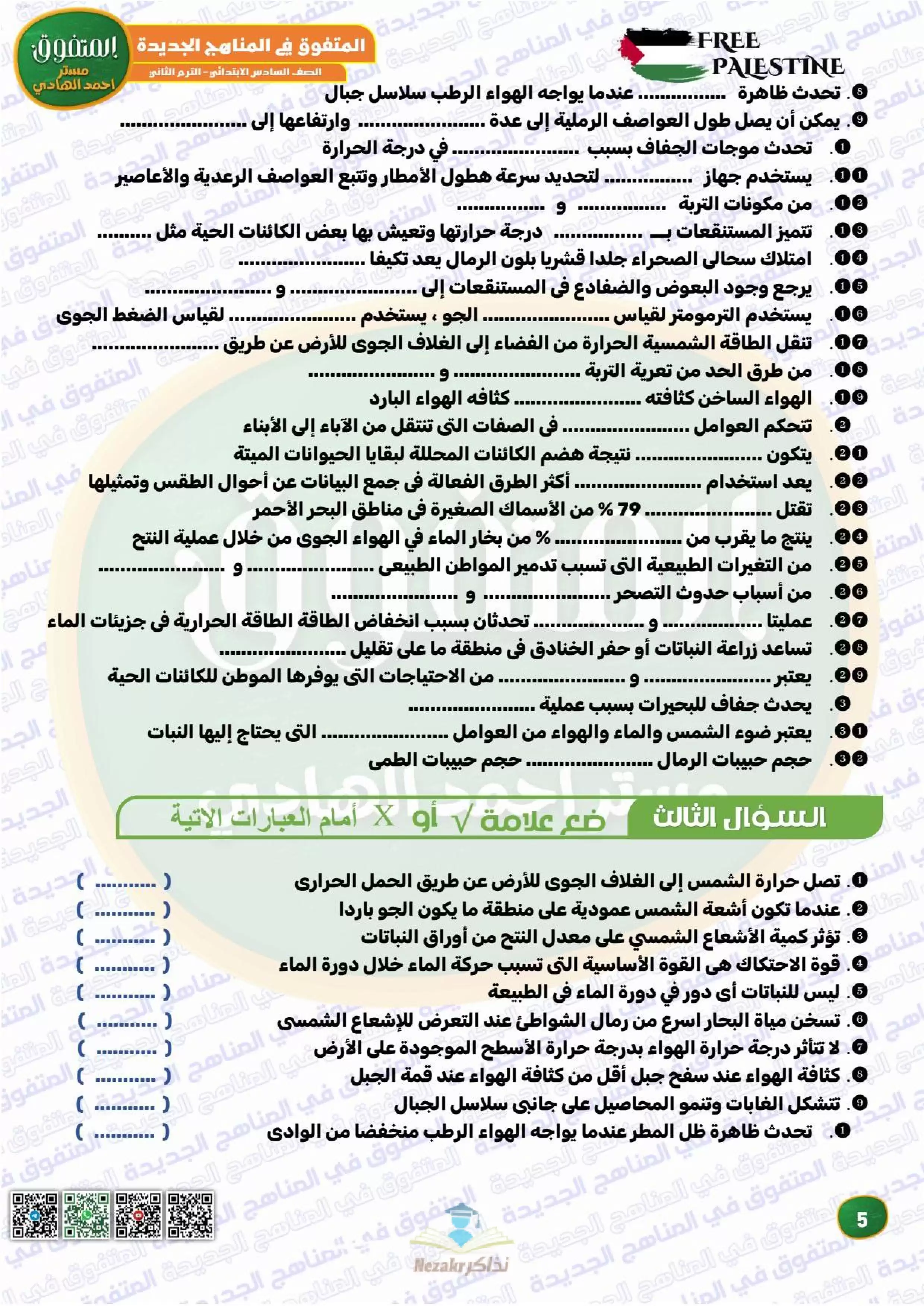 صفحة 5 من 40 صفحة من ملف: مراجعة المتفوق النهائية في العلوم للصف السادس الابتدائي الترم الثاني - Nezakr